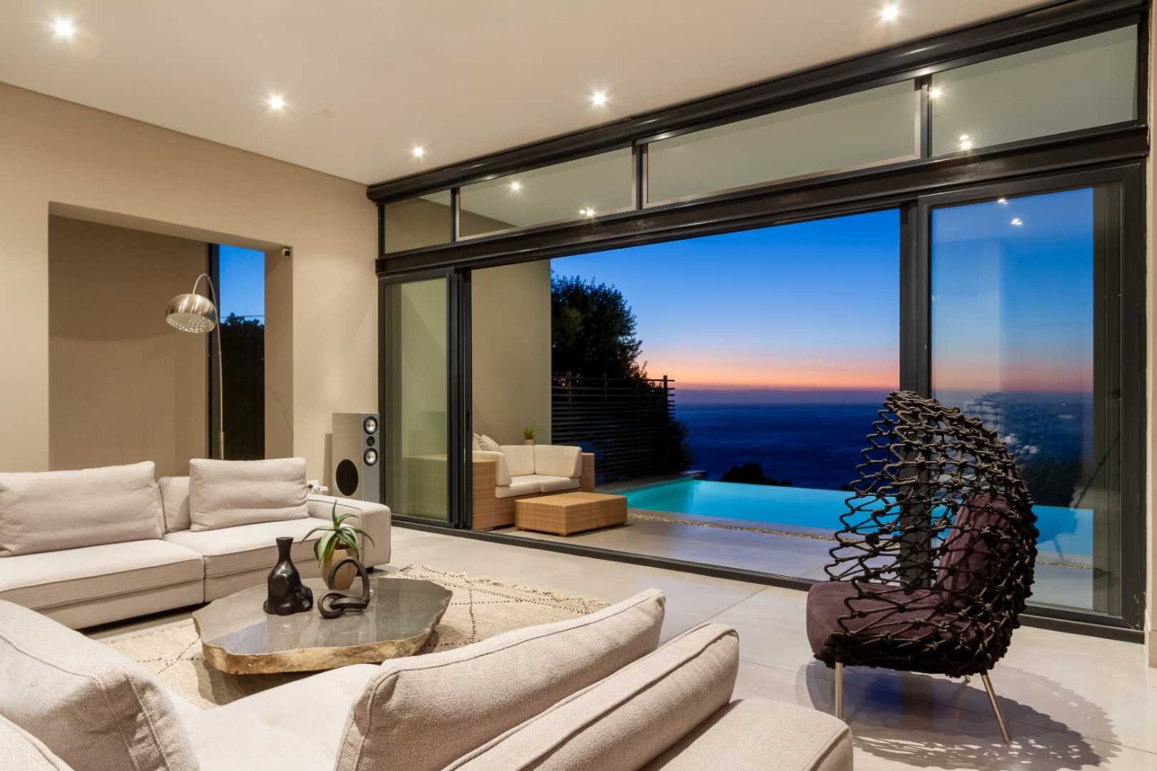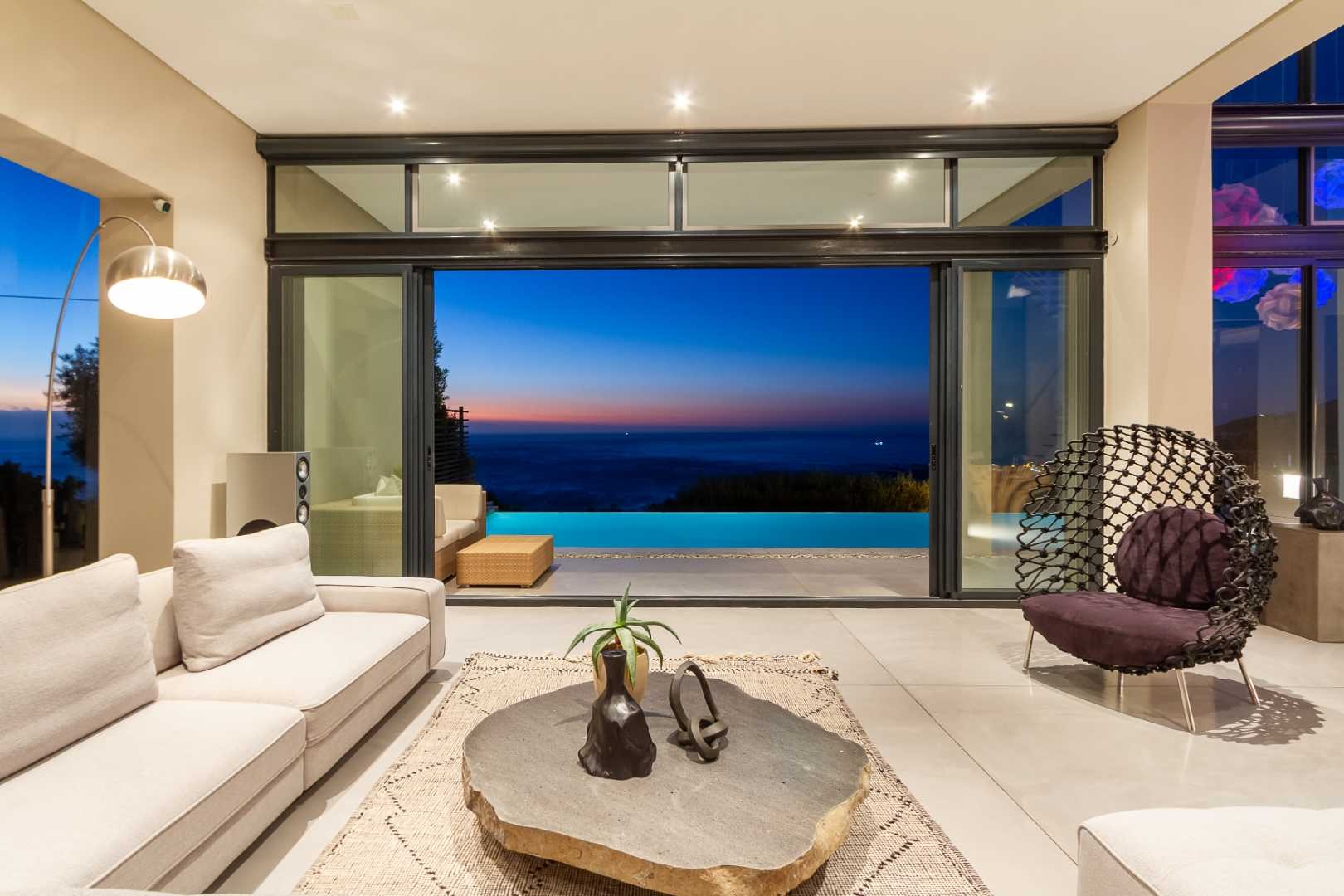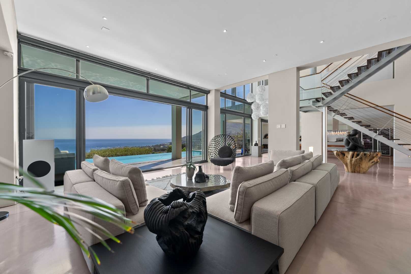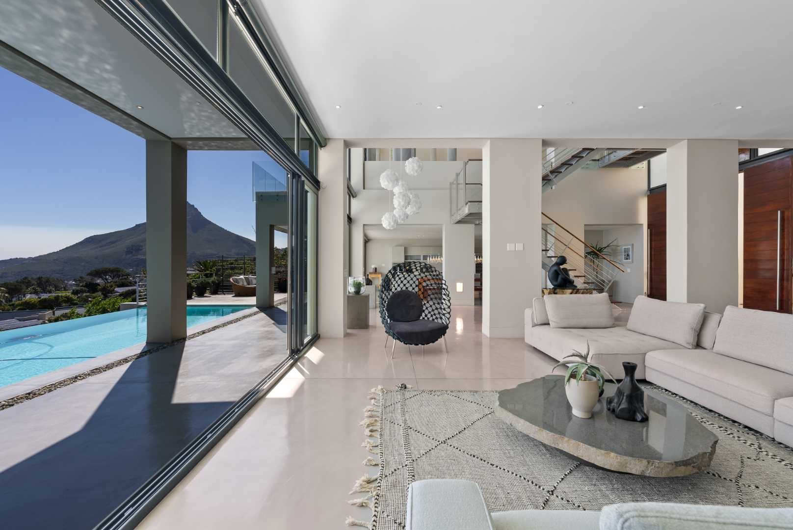 Crafted by internationally acclaimed London and Hong Kong–based architect Pedro Roos, the home is a masterclass in contemporary elegance. Soaring ceilings, expansive walls of glass, and clean, refined lines create a seamless dialogue between interior and exterior, framing the ocean, the dramatic Twelve Apostles, and the iconic Lion’s Head in every direction. Natural light flows effortlessly, bathing each space in a gallery-like serenity that is both grand and profoundly tranquil.