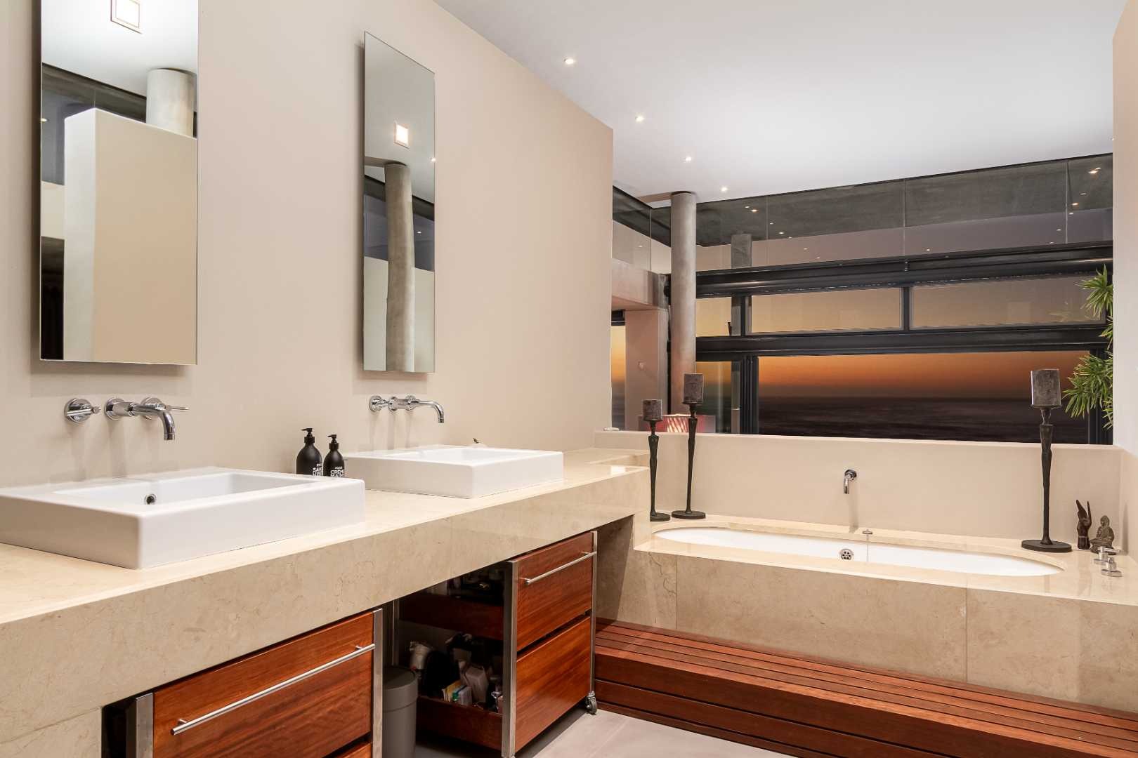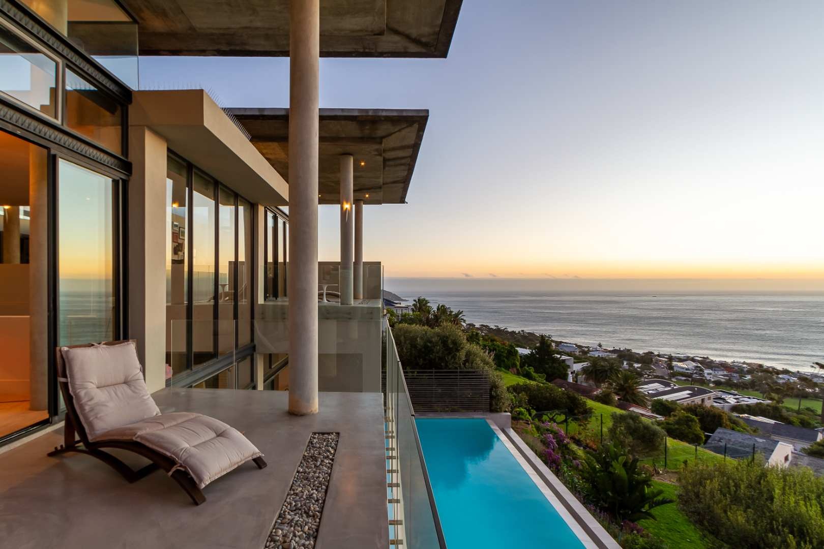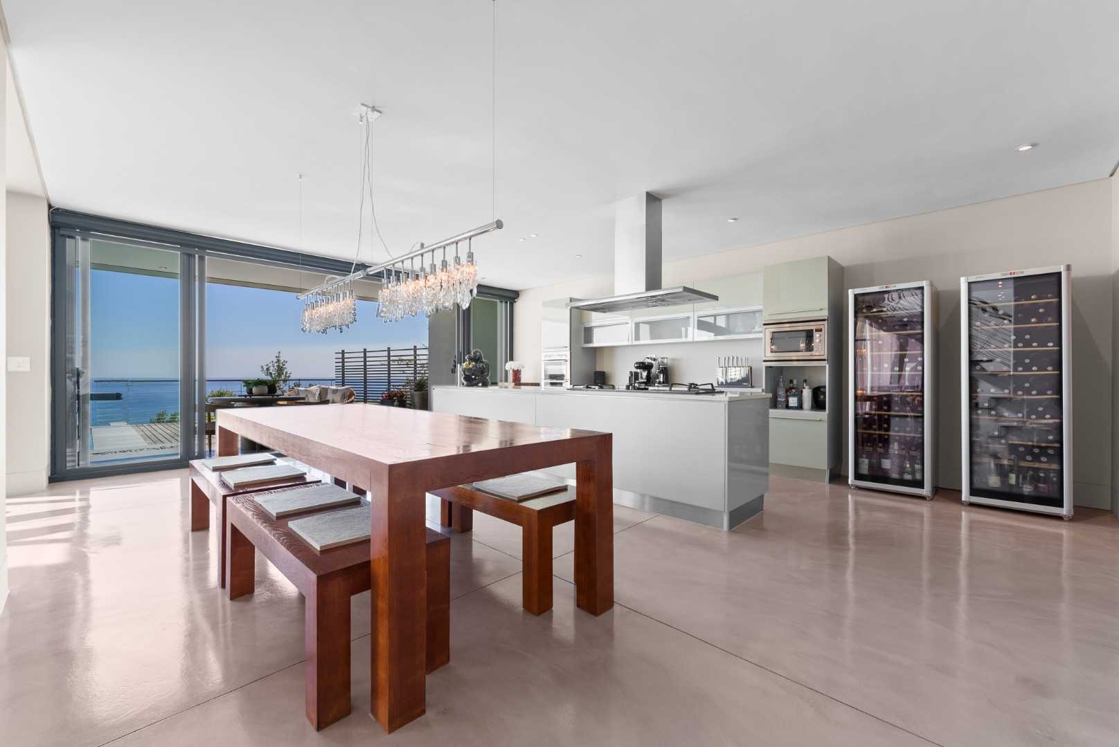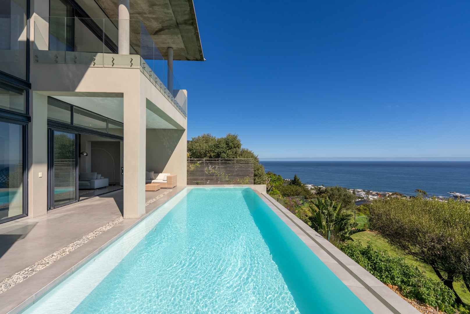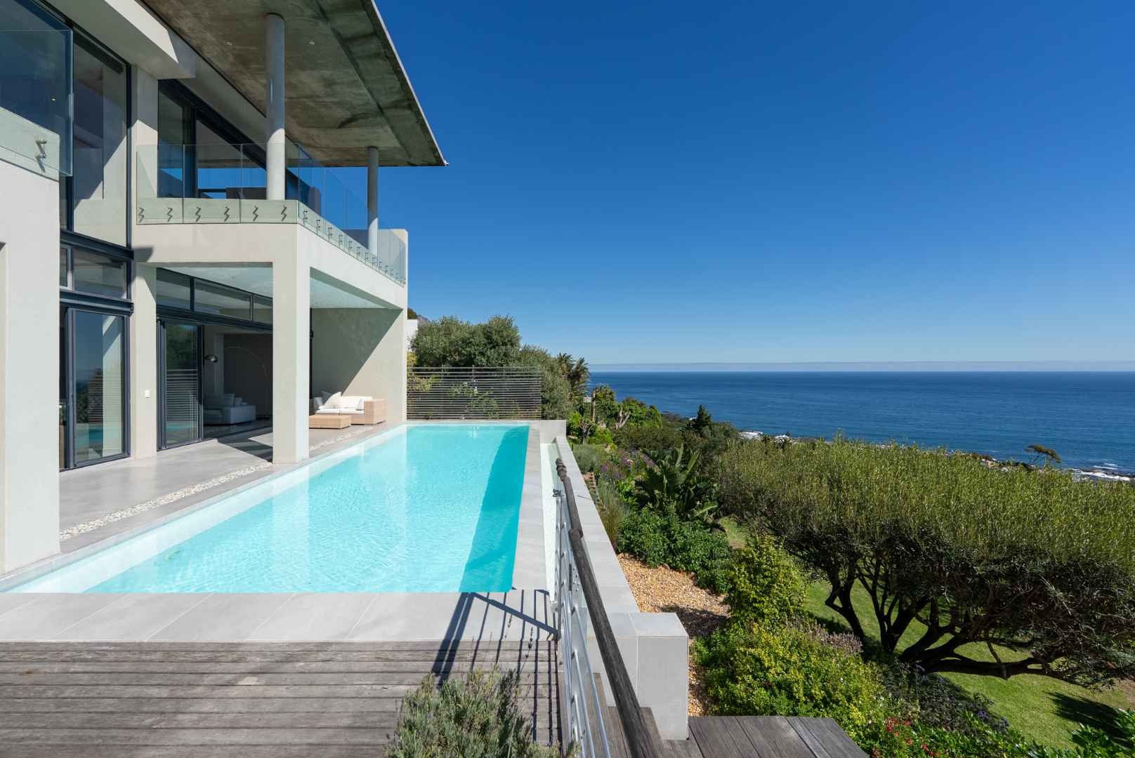 Crafted by internationally acclaimed London and Hong Kong–based architect Pedro Roos, the home is a masterclass in contemporary elegance. Soaring ceilings, expansive walls of glass, and clean, refined lines create a seamless dialogue between interior and exterior, framing the ocean, the dramatic Twelve Apostles, and the iconic Lion’s Head in every direction. Natural light flows effortlessly, bathing each space in a gallery-like serenity that is both grand and profoundly tranquil.