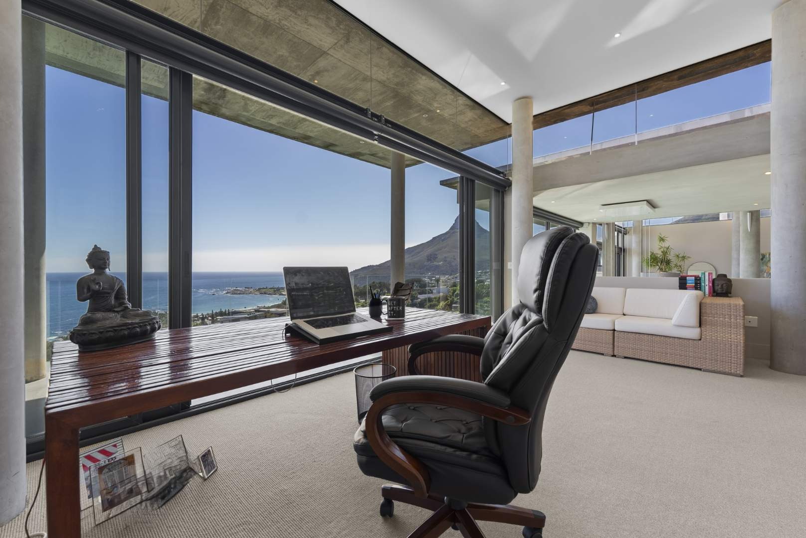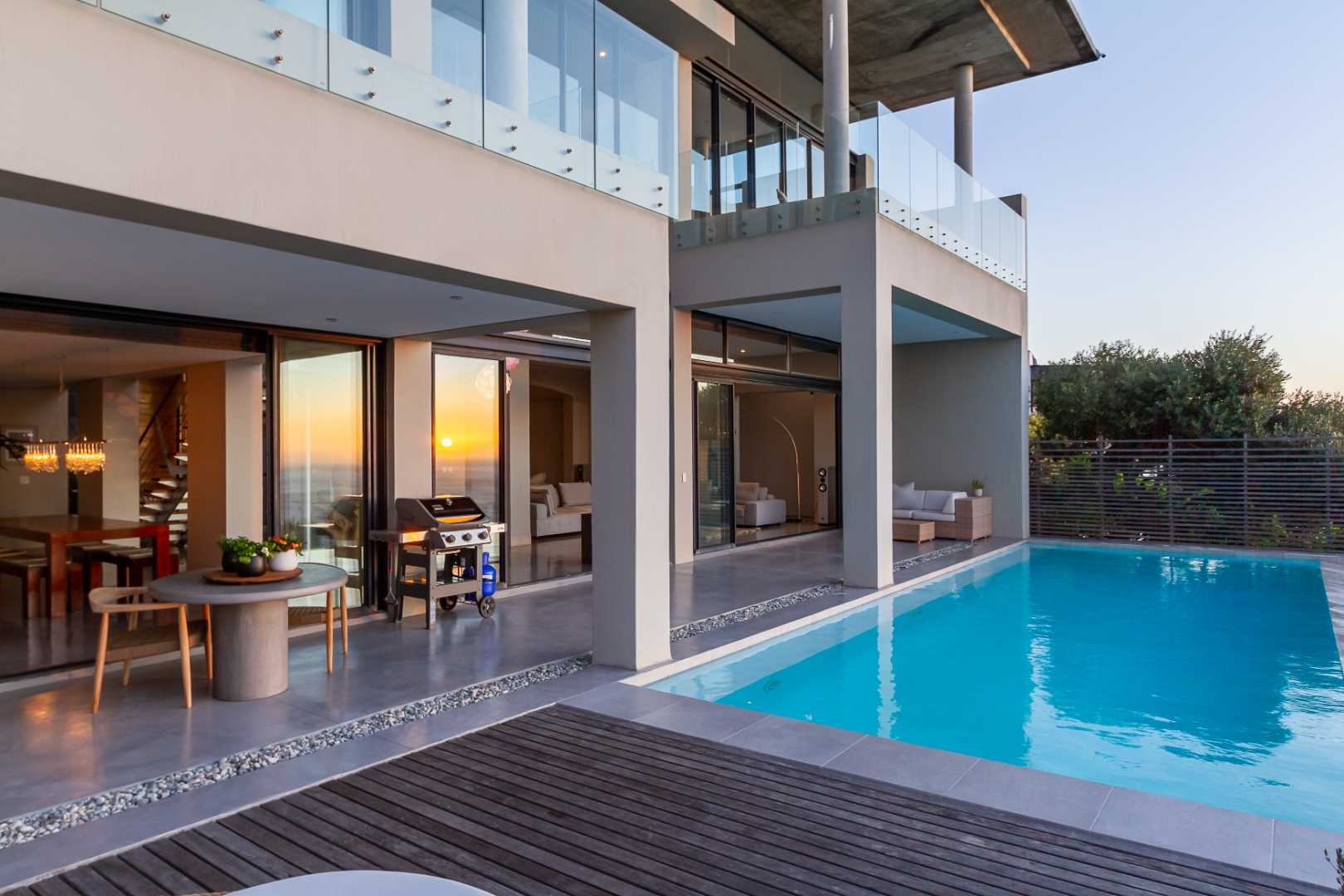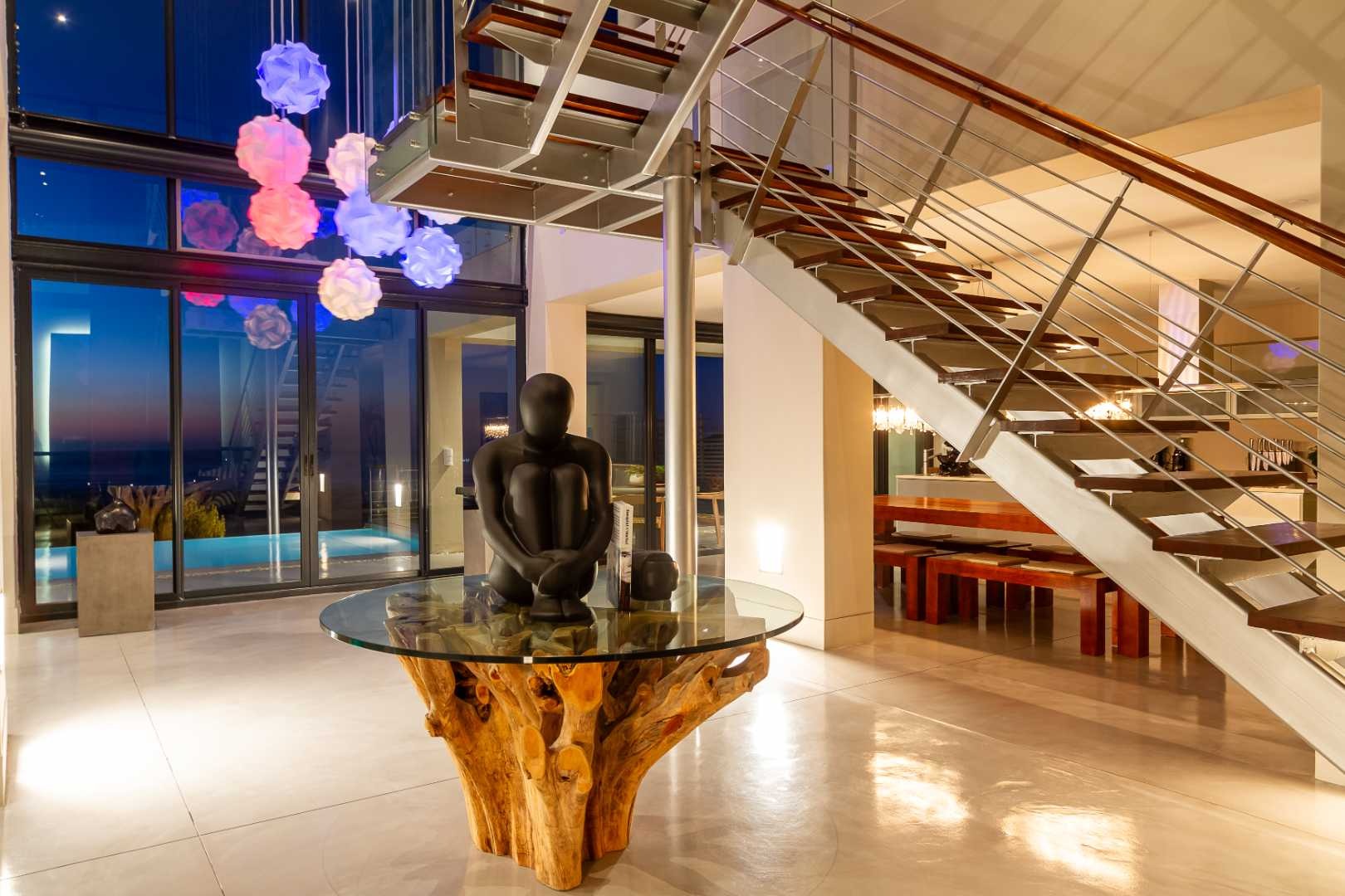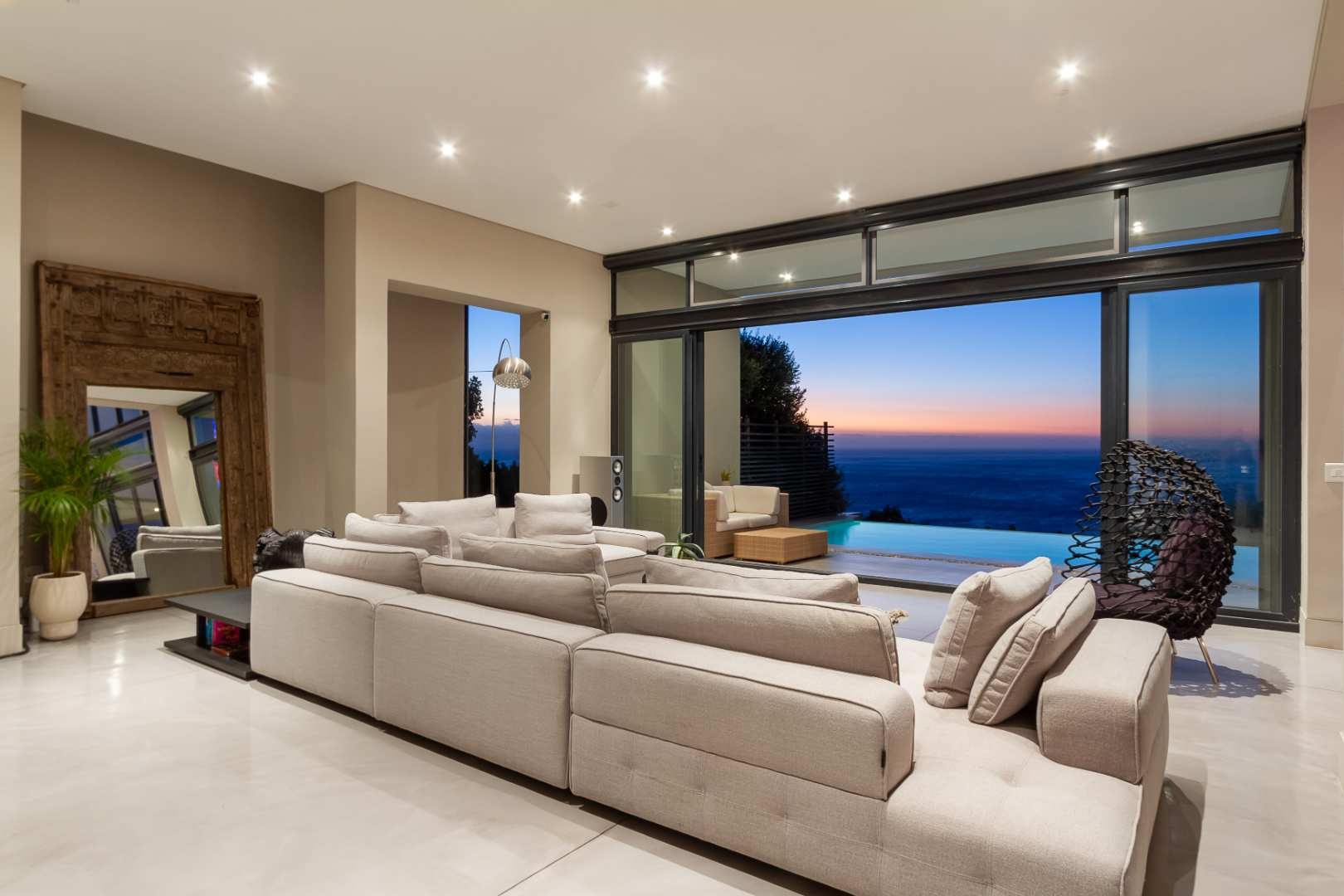 Crafted by internationally acclaimed London and Hong Kong–based architect Pedro Roos, the home is a masterclass in contemporary elegance. Soaring ceilings, expansive walls of glass, and clean, refined lines create a seamless dialogue between interior and exterior, framing the ocean, the dramatic Twelve Apostles, and the iconic Lion’s Head in every direction. Natural light flows effortlessly, bathing each space in a gallery-like serenity that is both grand and profoundly tranquil.