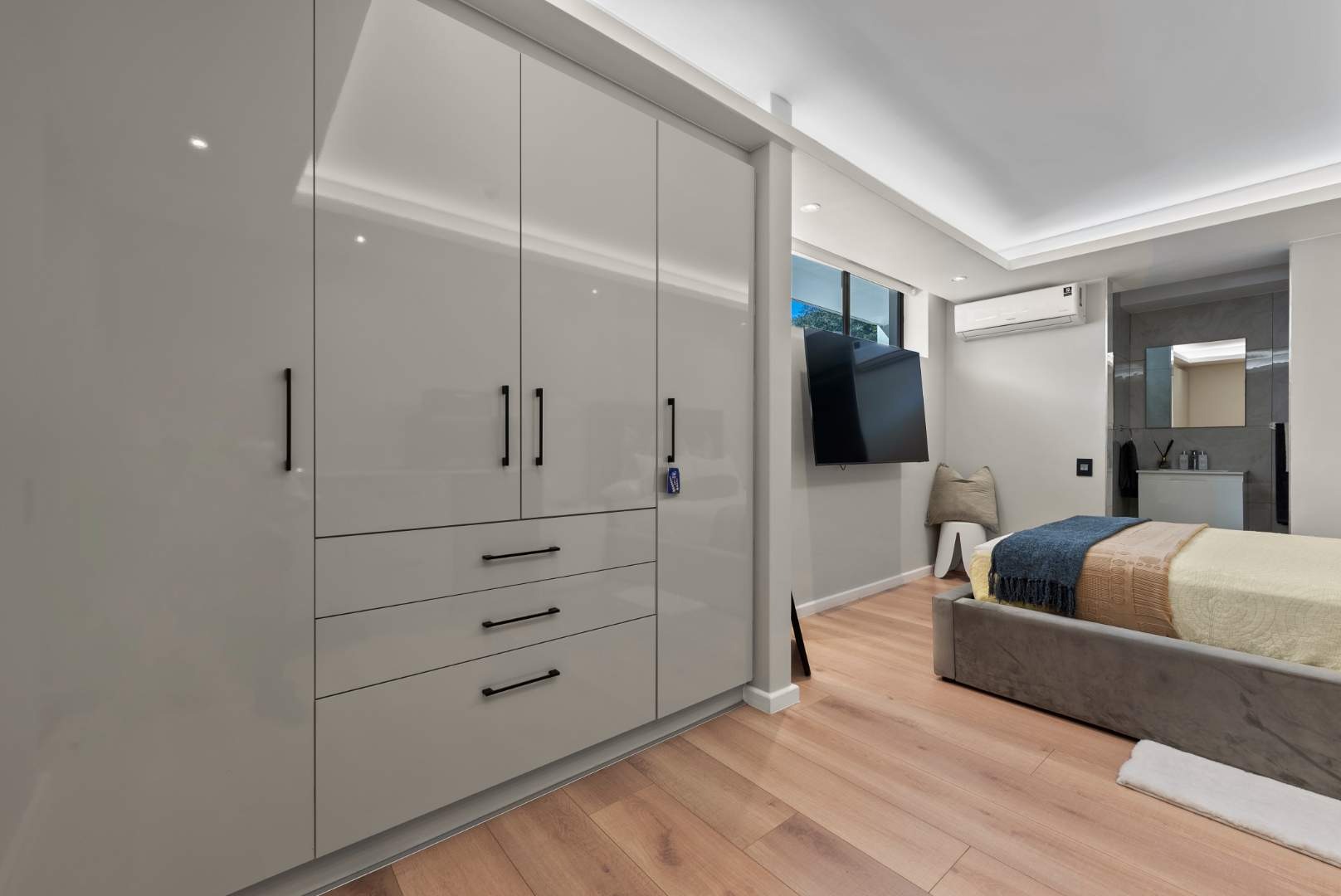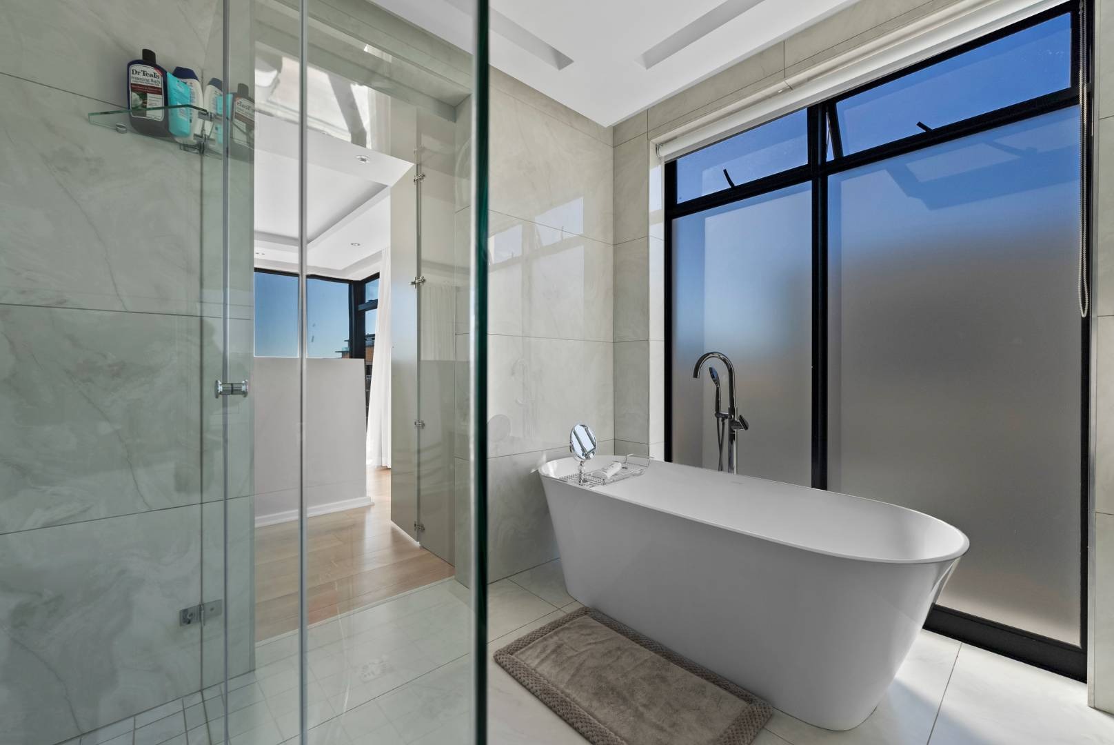 Additional features include a secure four-car garage, a separate en-suite bedroom ideal for staff accommodation or short-term rental, air-conditioning throughout, solar panels, excellent security and premium fixtures and finishes at every turn.