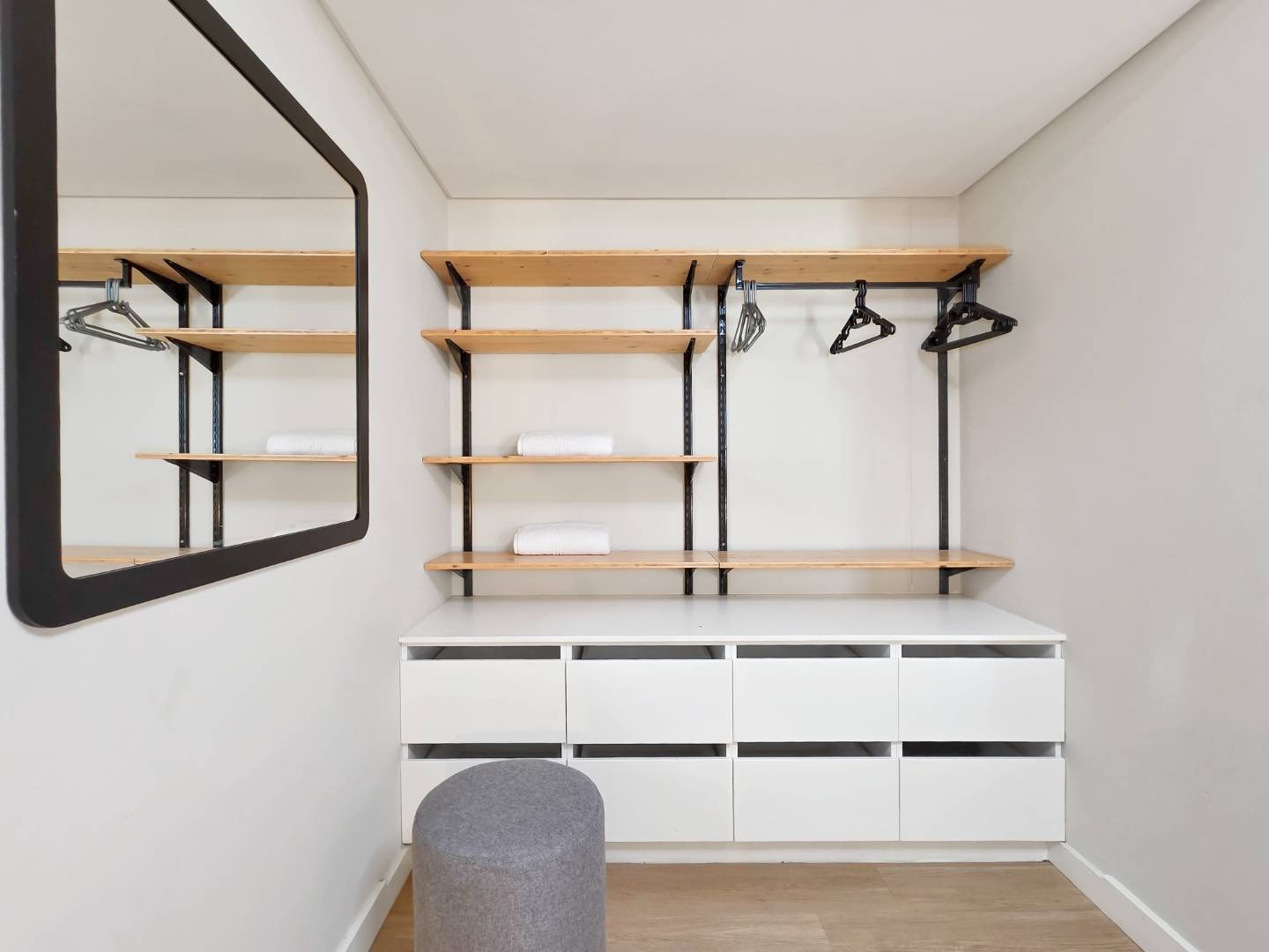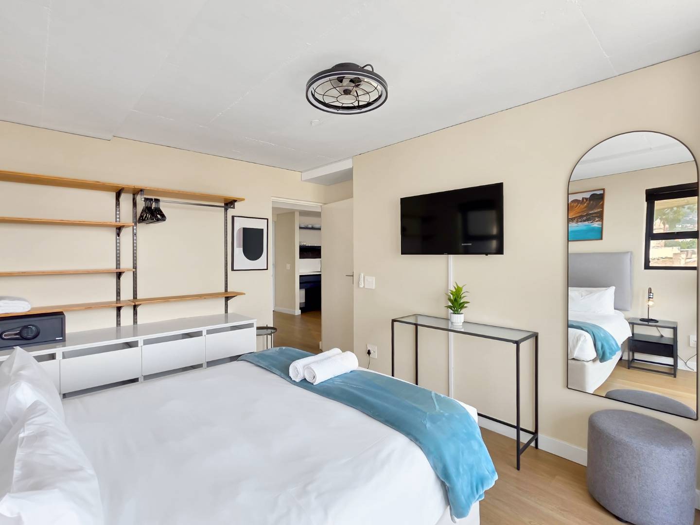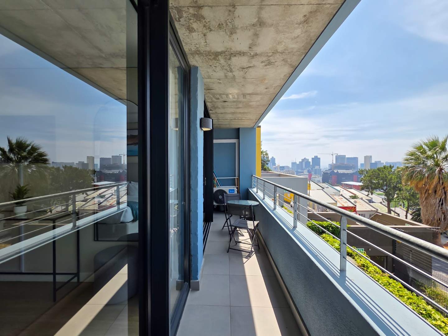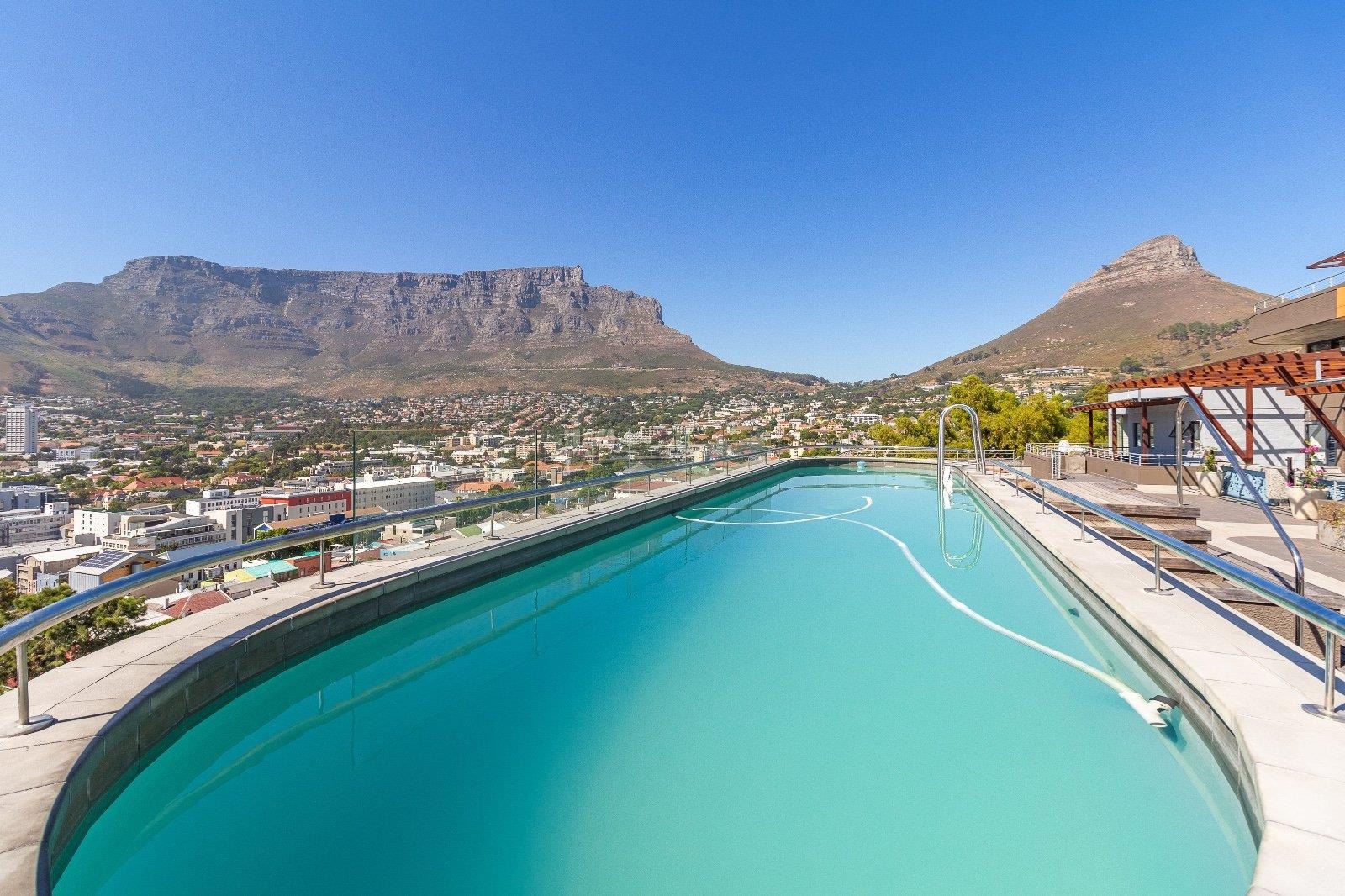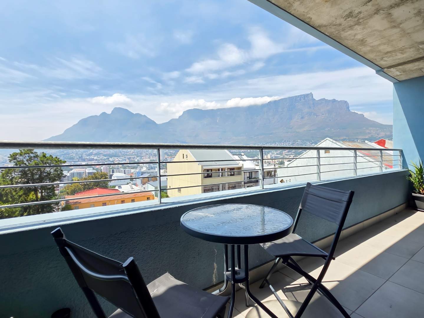 The living area, outdoor balcony and main bedroom both look out onto exceptional views of Table Mountain.