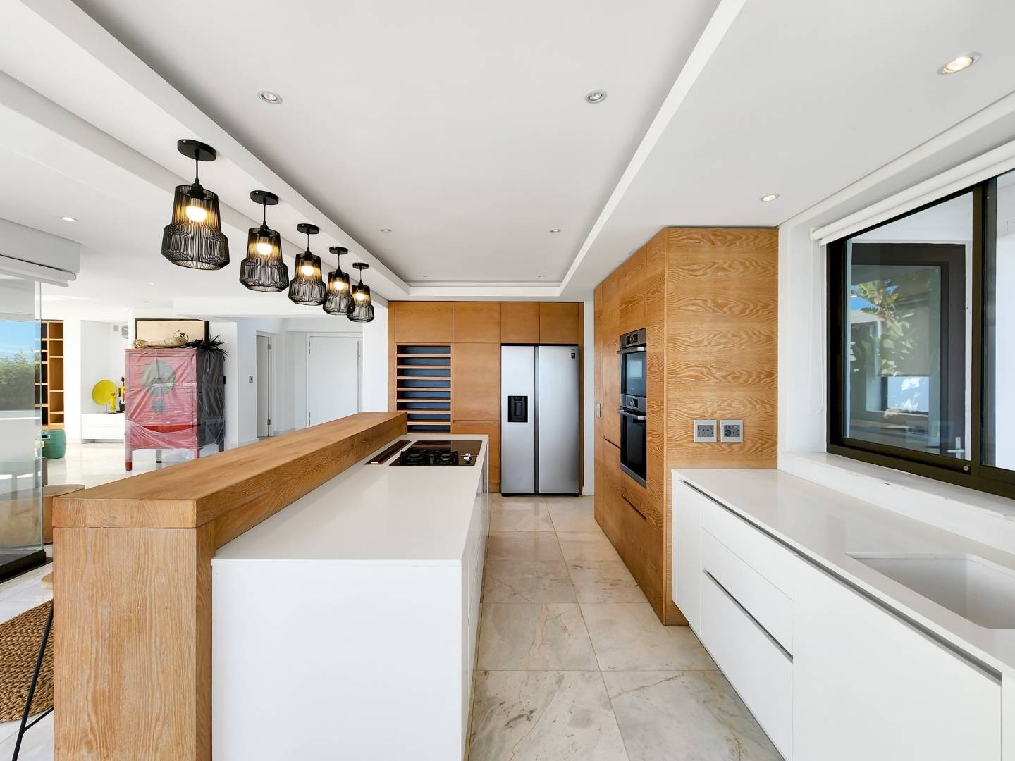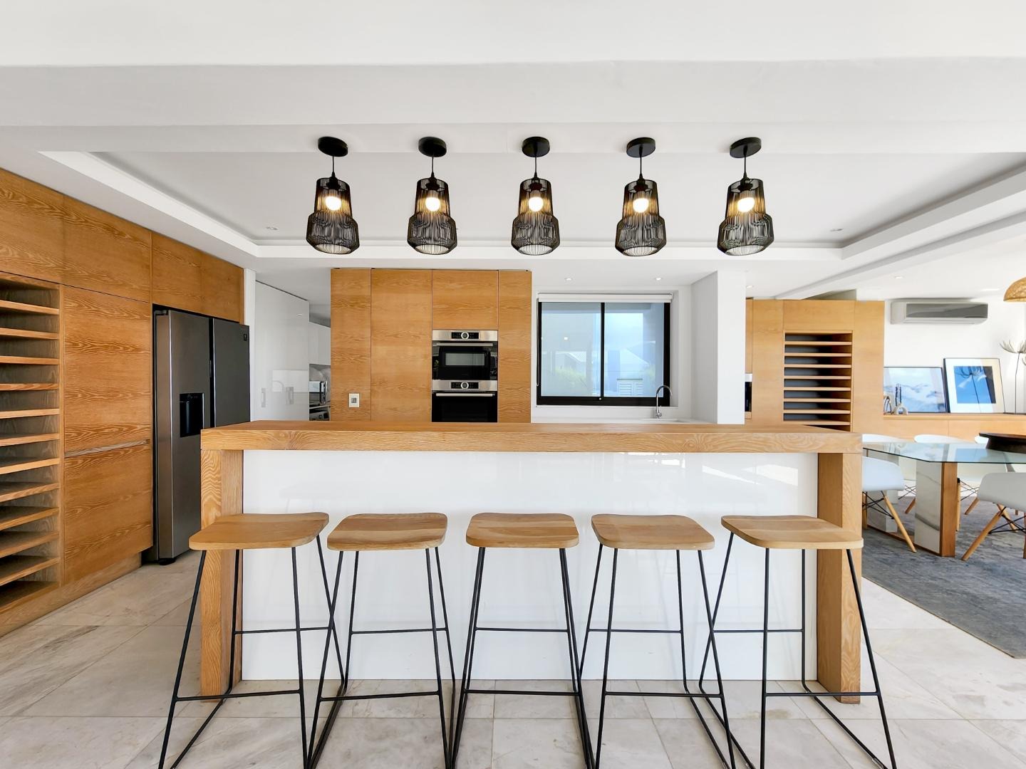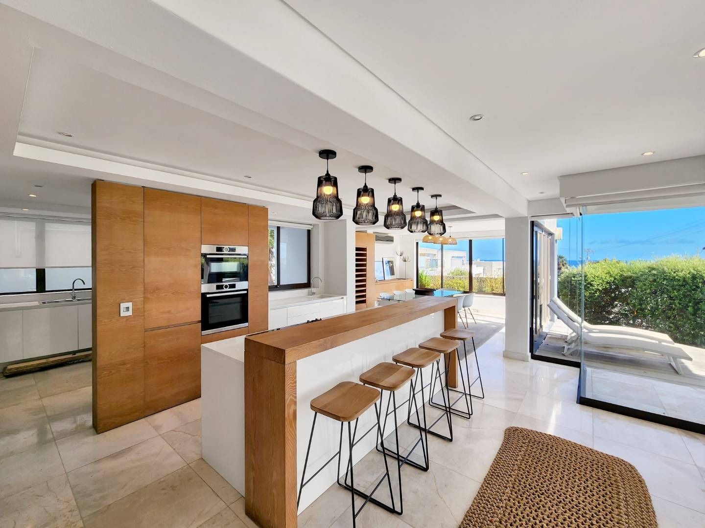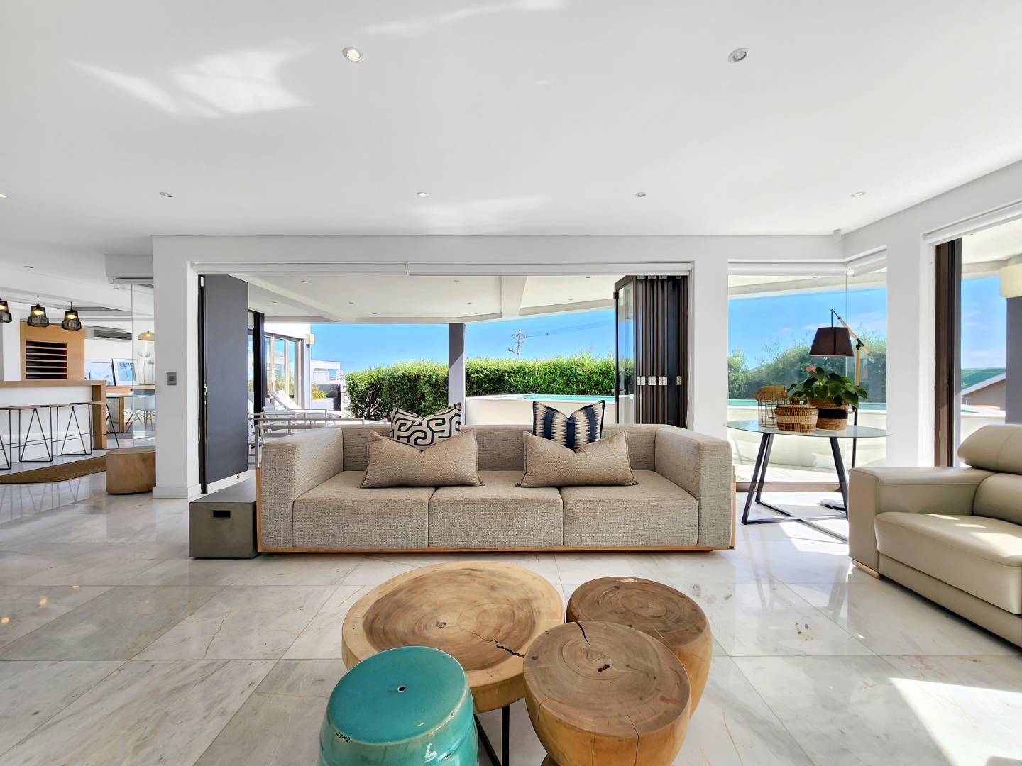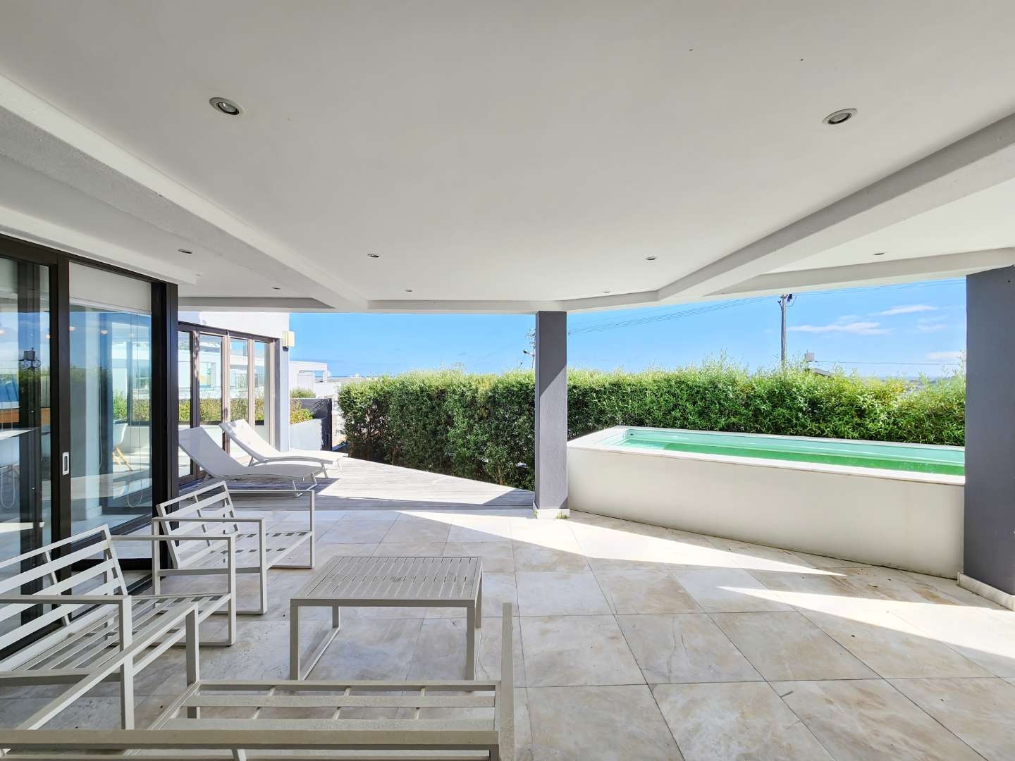 The open-plan kitchen and lounge flow seamlessly onto a generous entertainment terrace with a sparkling pool—perfect for soaking up the African sun or hosting unforgettable gatherings against the backdrop of the Atlantic Ocean.