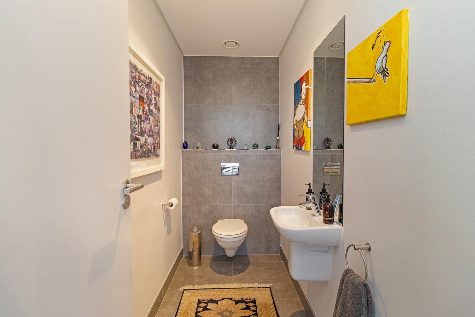 The lower level of the apartment welcomes you with an impressive double-volume dining space which forms the heart of the open-plan reception. Here you can comfortably seat ten guests for dinner while they enjoy city lights, framed by gorgeous floor-to-ceiling glass windows. With its integrated appliances, entertaining is made super convenient with the sleek built-in kitchen which also makes for a striking minimalist aesthetic. Currently used as a private office, the first bedroom with en-suite bathroom is found on this level too, while a separate guest loo completes the spaces.