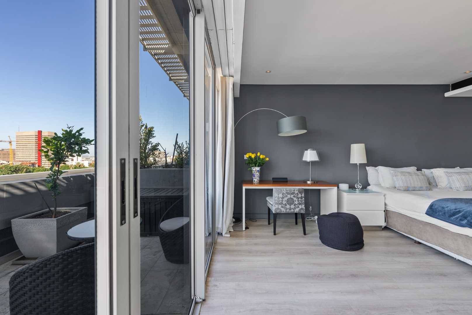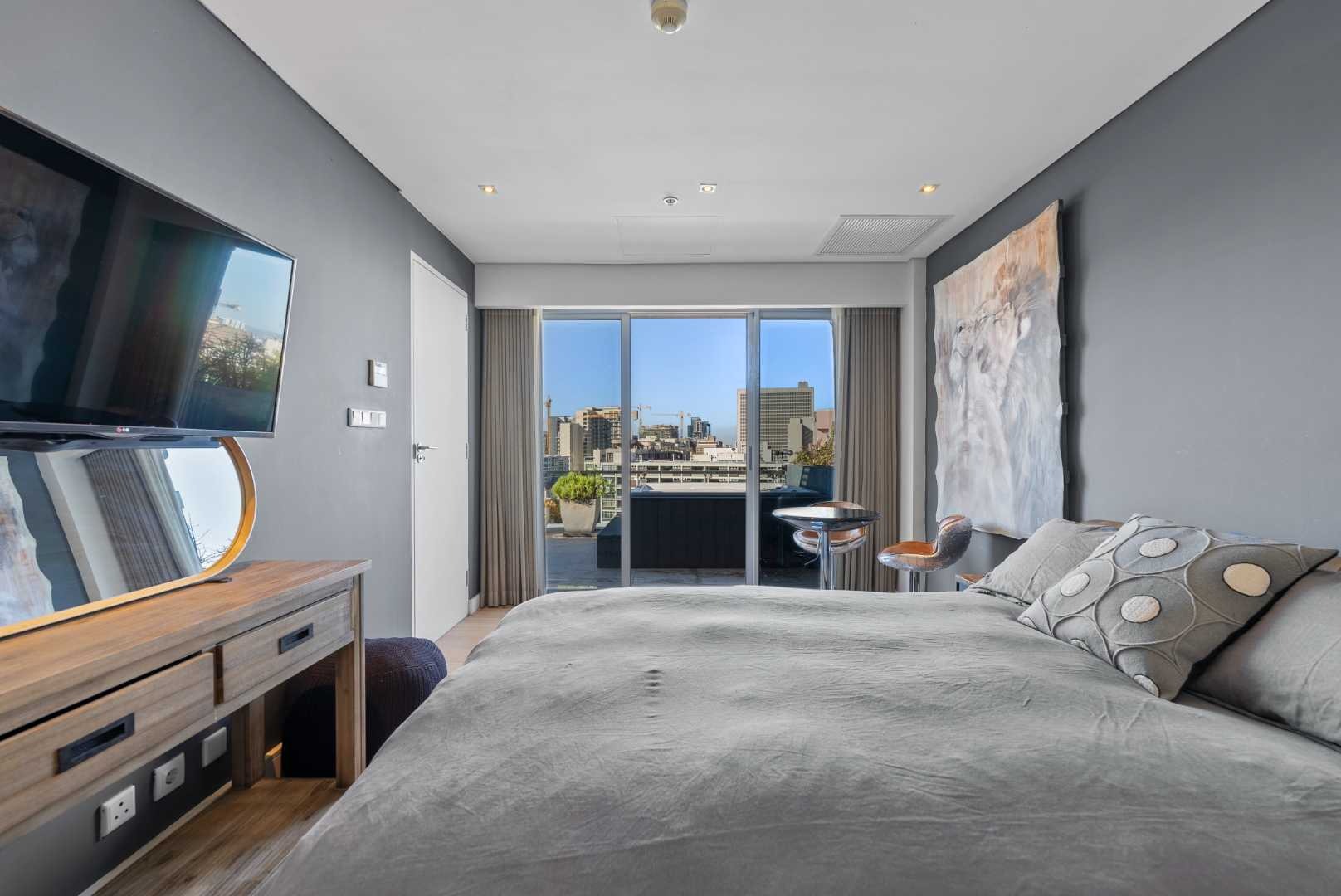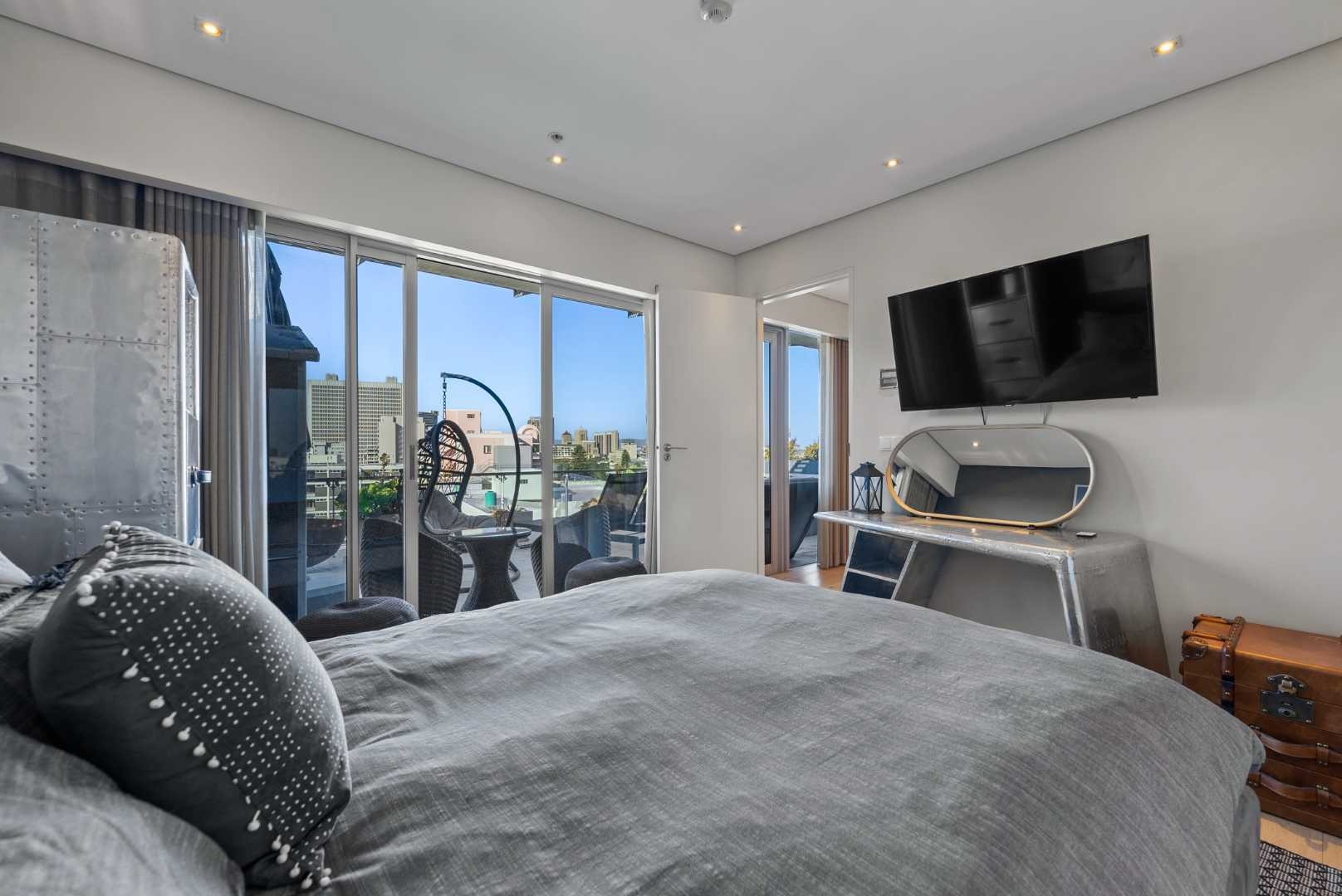 The penthouse features three spacious en-suite bedrooms with built-in cupboards, a guest cloakroom, and expansive open-plan living areas that seamlessly connect the kitchen, dining, and lounge. The modern kitchen, complete with a separate scullery, is both functional and beautiful — ideal for entertaining or relaxed daily living.