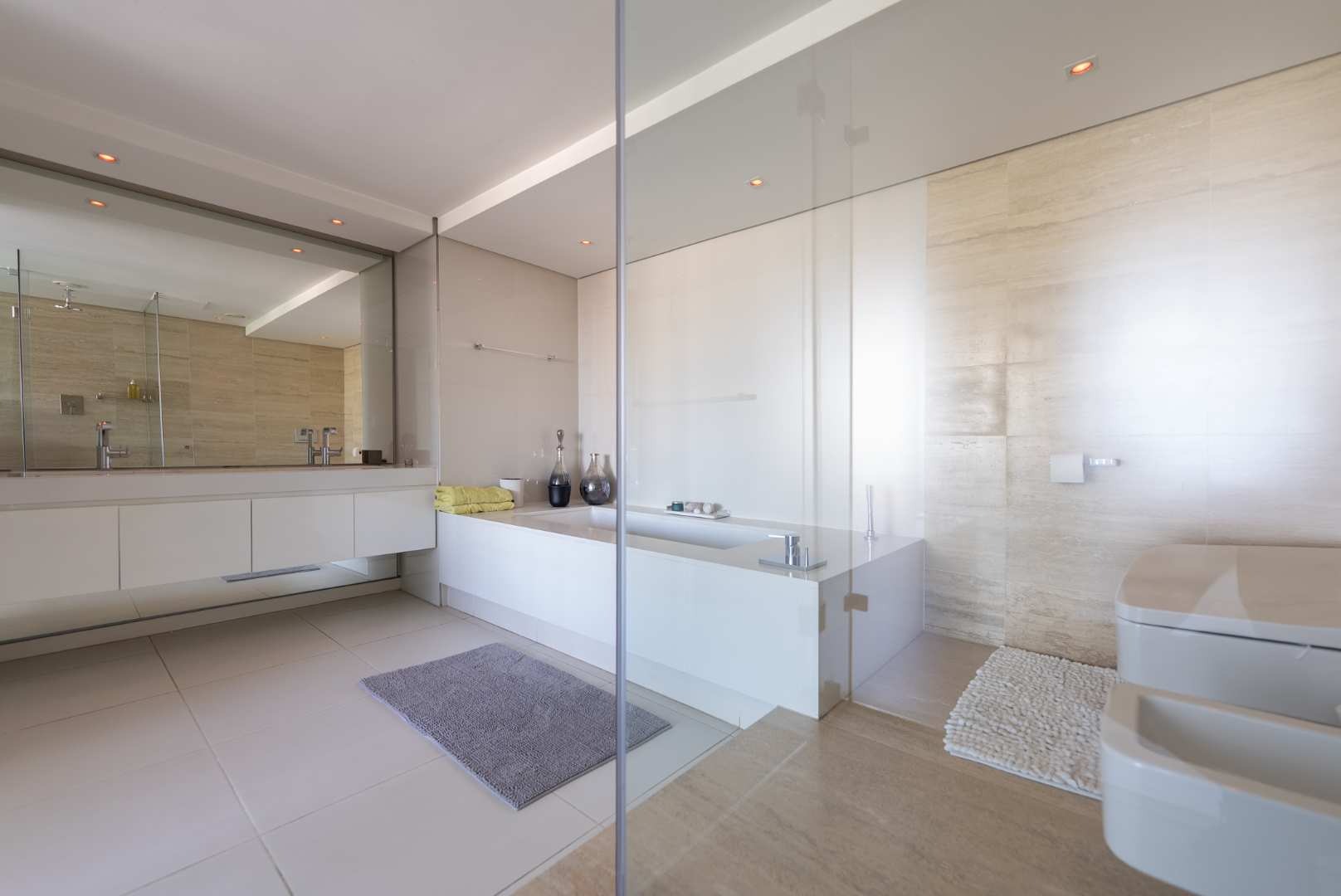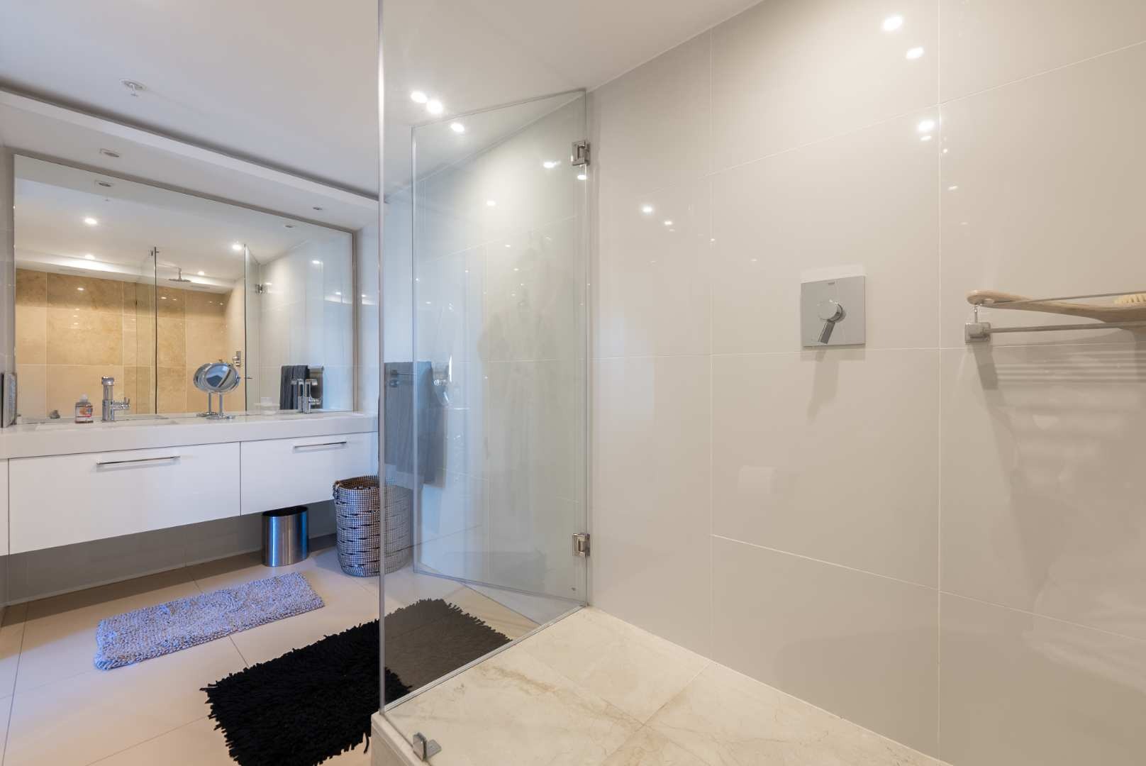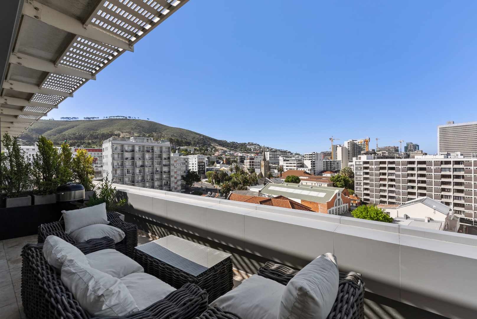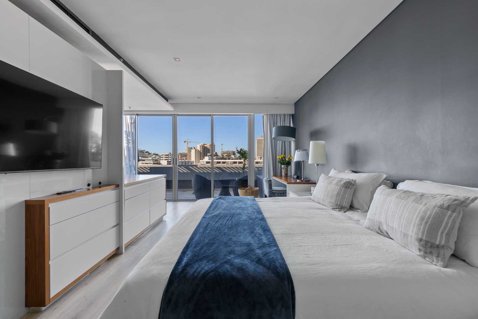 The penthouse features three spacious en-suite bedrooms with built-in cupboards, a guest cloakroom, and expansive open-plan living areas that seamlessly connect the kitchen, dining, and lounge. The modern kitchen, complete with a separate scullery, is both functional and beautiful — ideal for entertaining or relaxed daily living.