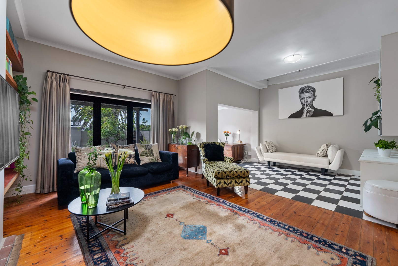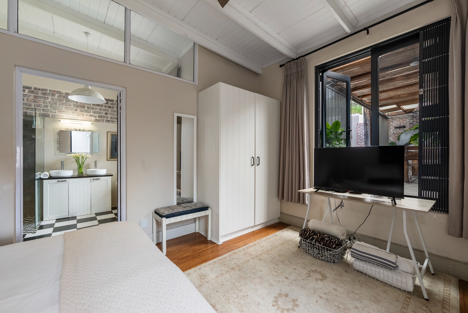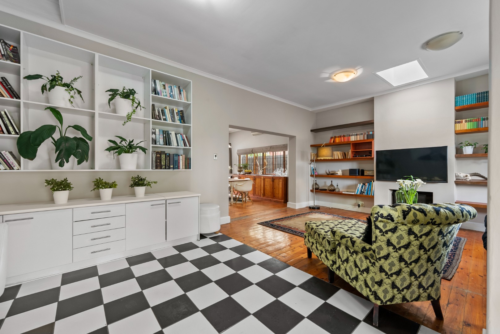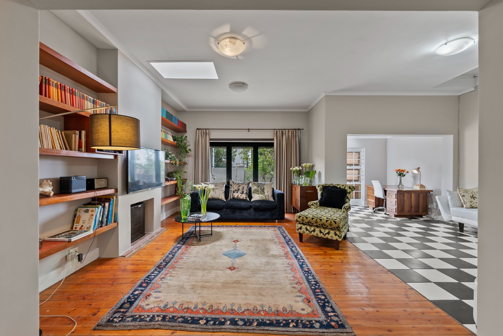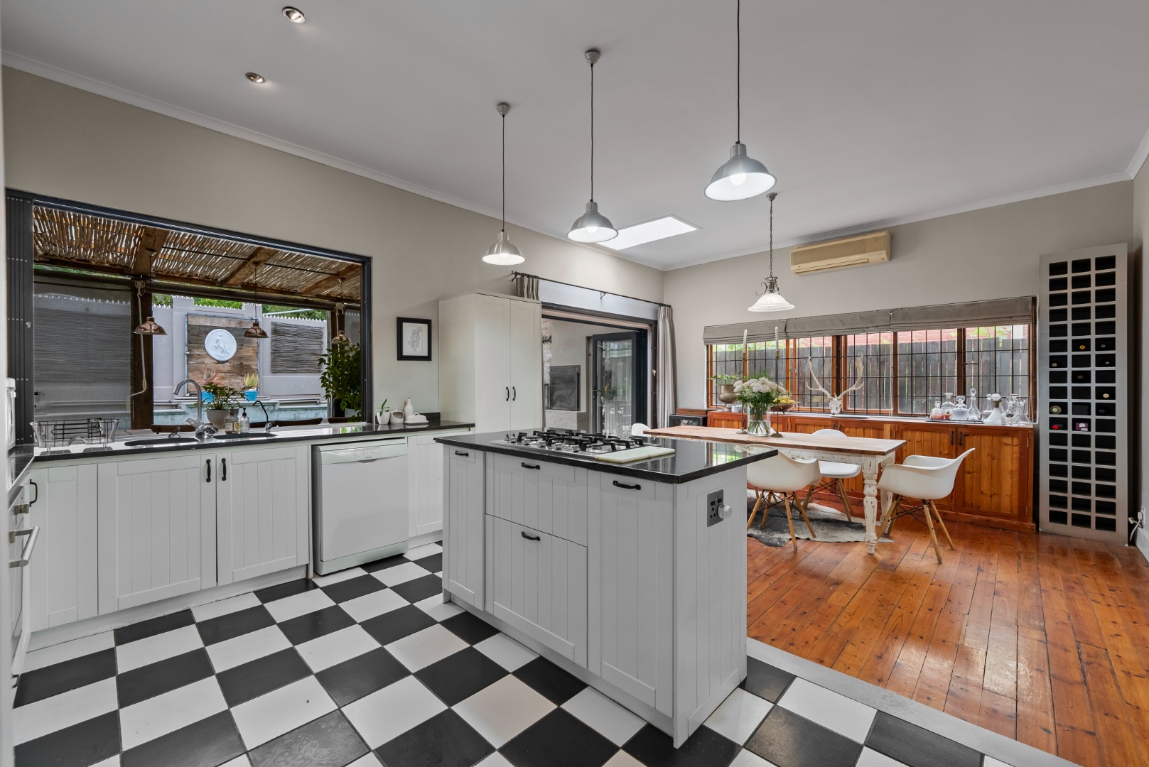 This home combines the charm of wooden floors in the living and guest areas with the practicality of tiled