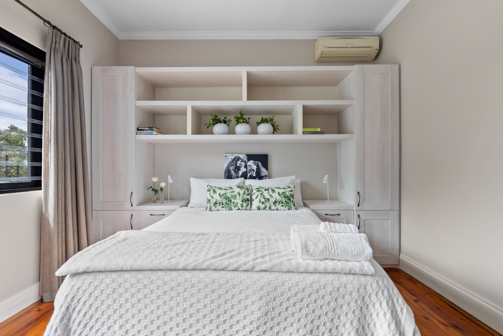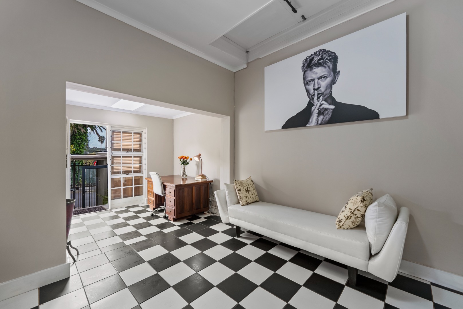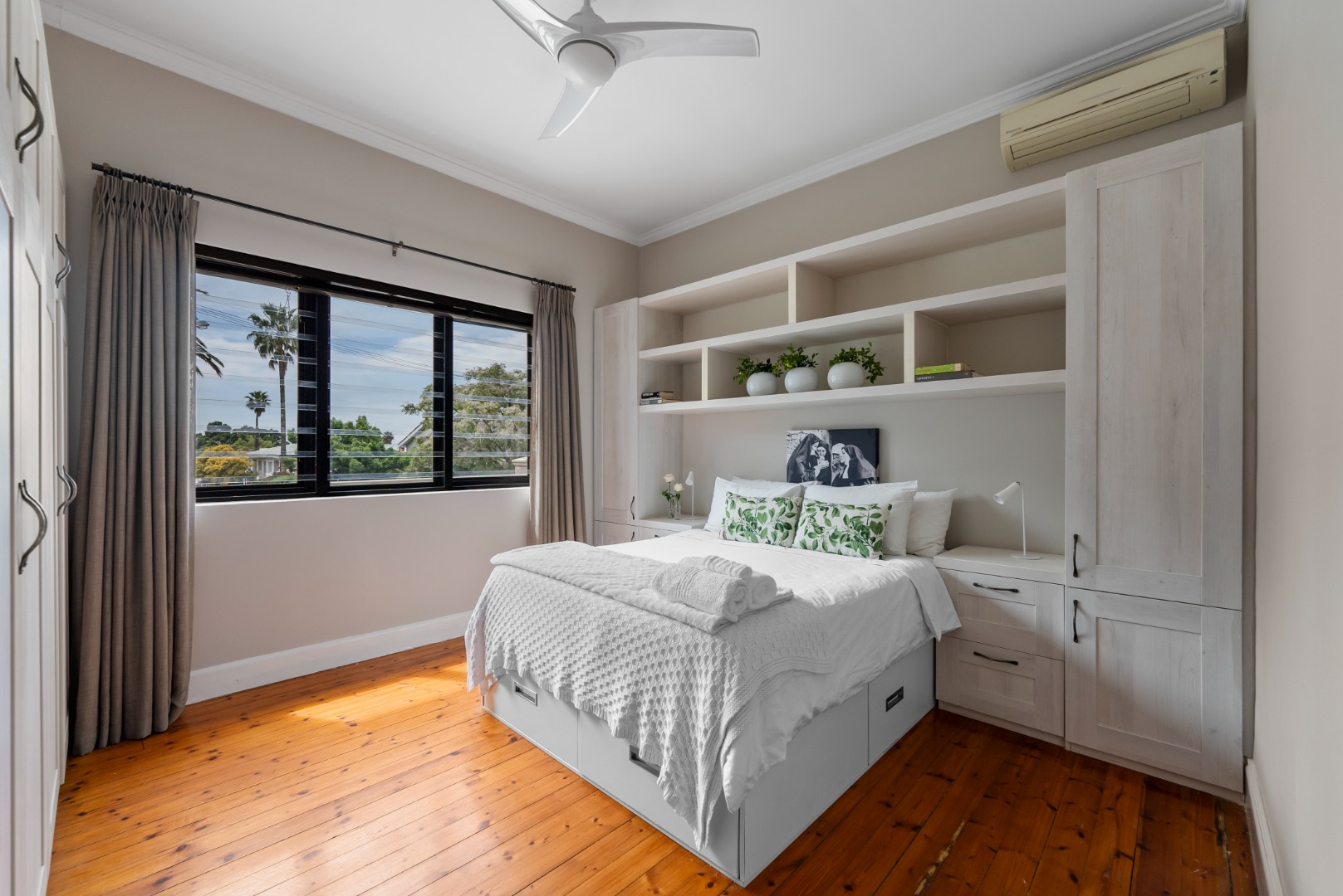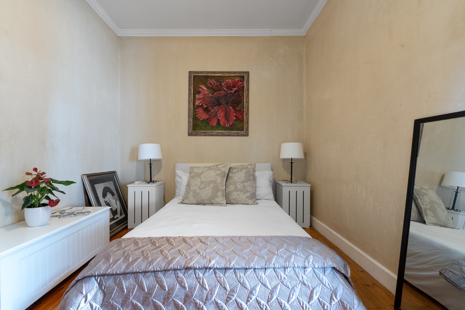 This home combines the charm of wooden floors in the living and guest areas with the practicality of tiled
