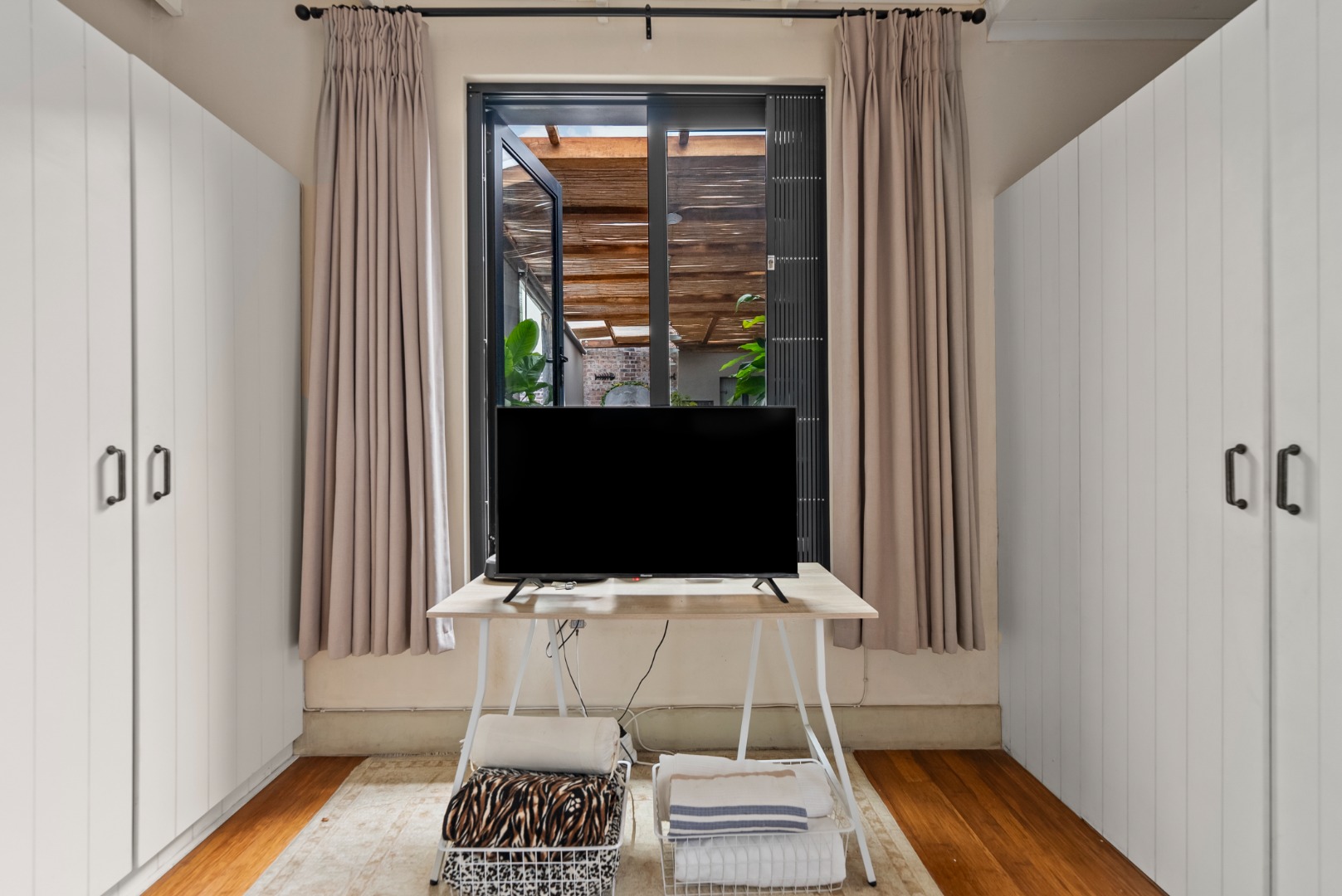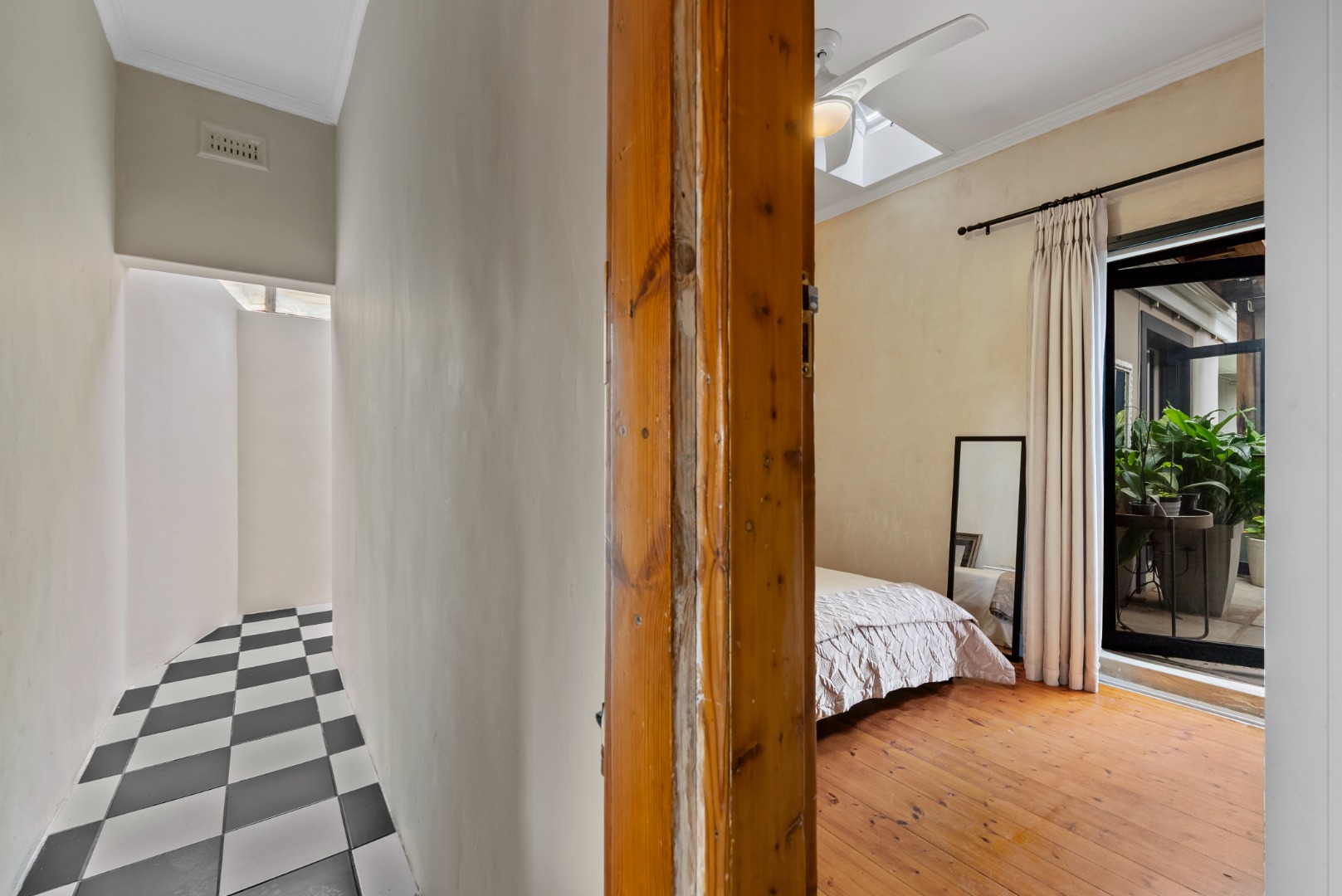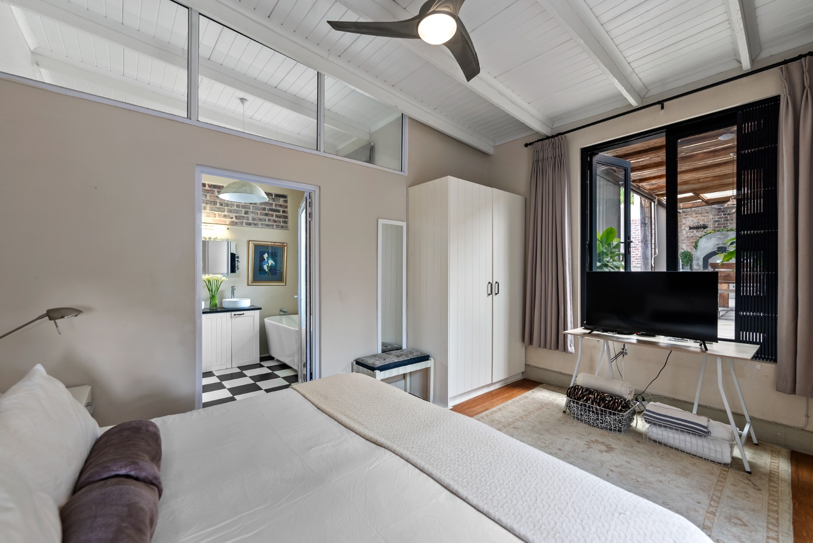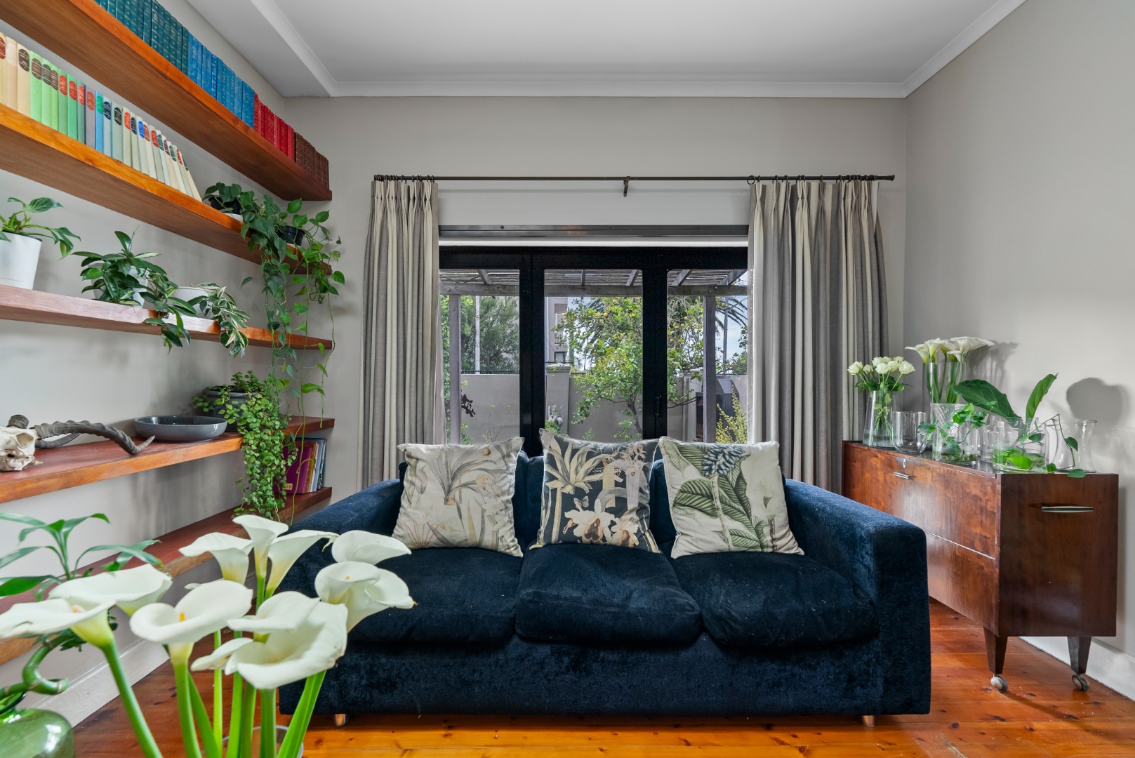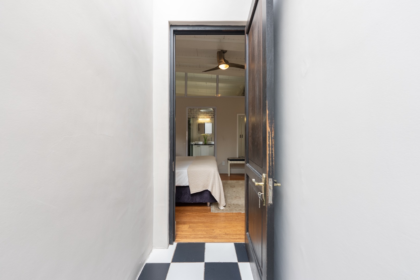This home combines the charm of wooden floors in the living and guest areas with the practicality of tiled