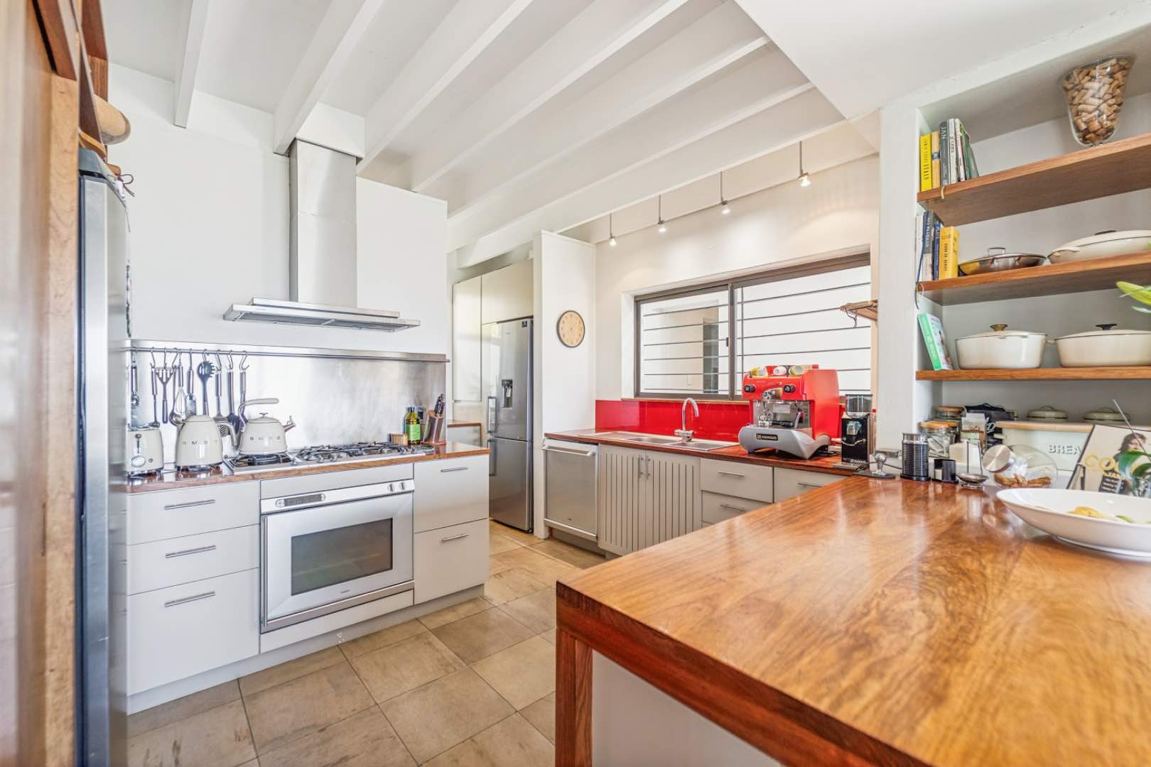 Enter a retreat where Table Mountain anchors the view, while the Mother City and eastward city skyline stretch outward beyond. Unobstructed, panoramic views reveal themselves from every level, pairing with a level garden and an inviting pool to create a composition that is uniquely Higgovale. From the street-level entrance, two flights of stairs lead up to the front door.