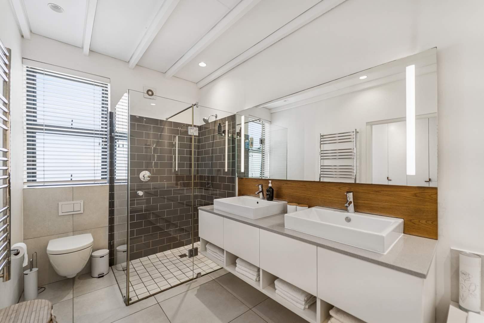 The en-suite master bedroom offers air conditioning, under-floor heating in the bathroom, heated towel rails and, a generous walk-in closet, all with picture-perfect Table Mountain views.