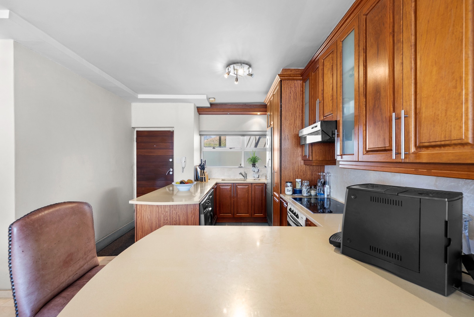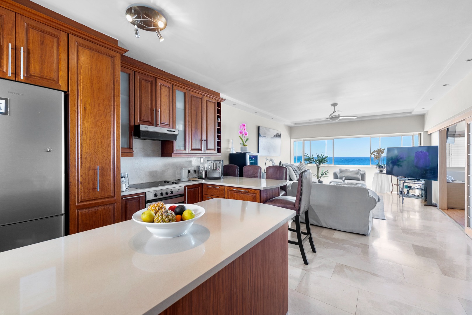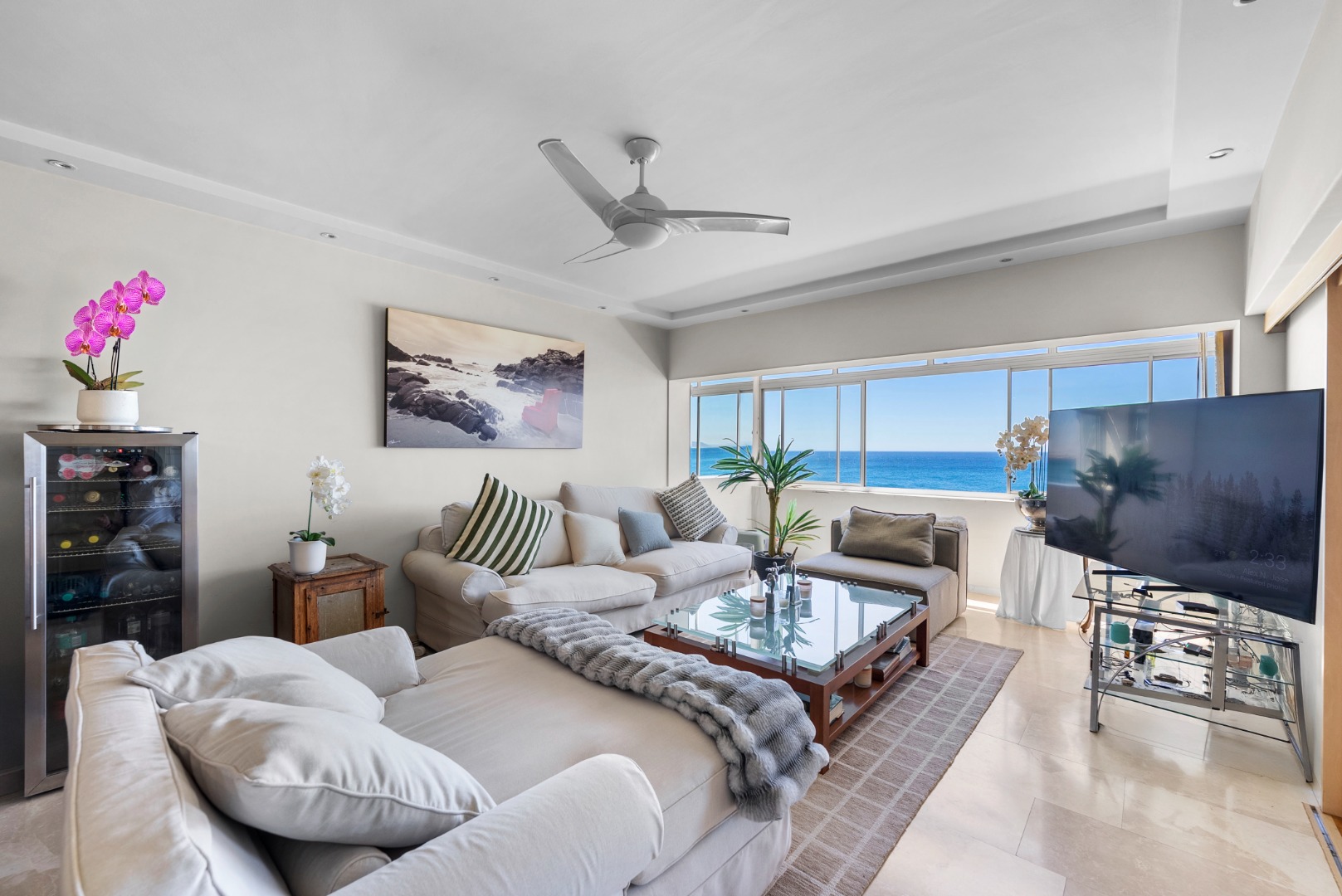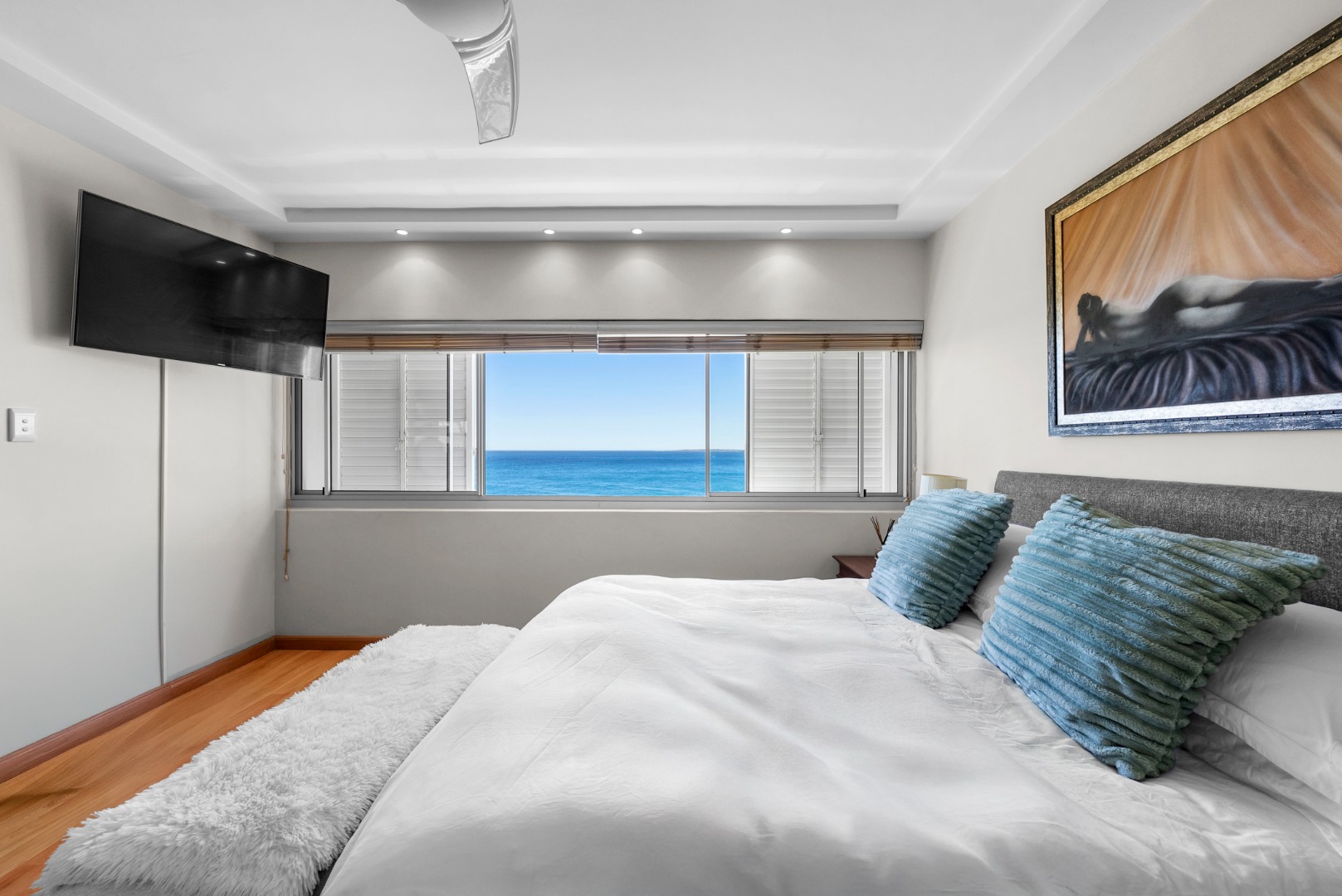 North-facing, the open-plan living area and spacious en-suite main bedroom are perfectly positioned to soak up the sea outlook — with ships gliding past by day and the soothing sound of the ocean at night.