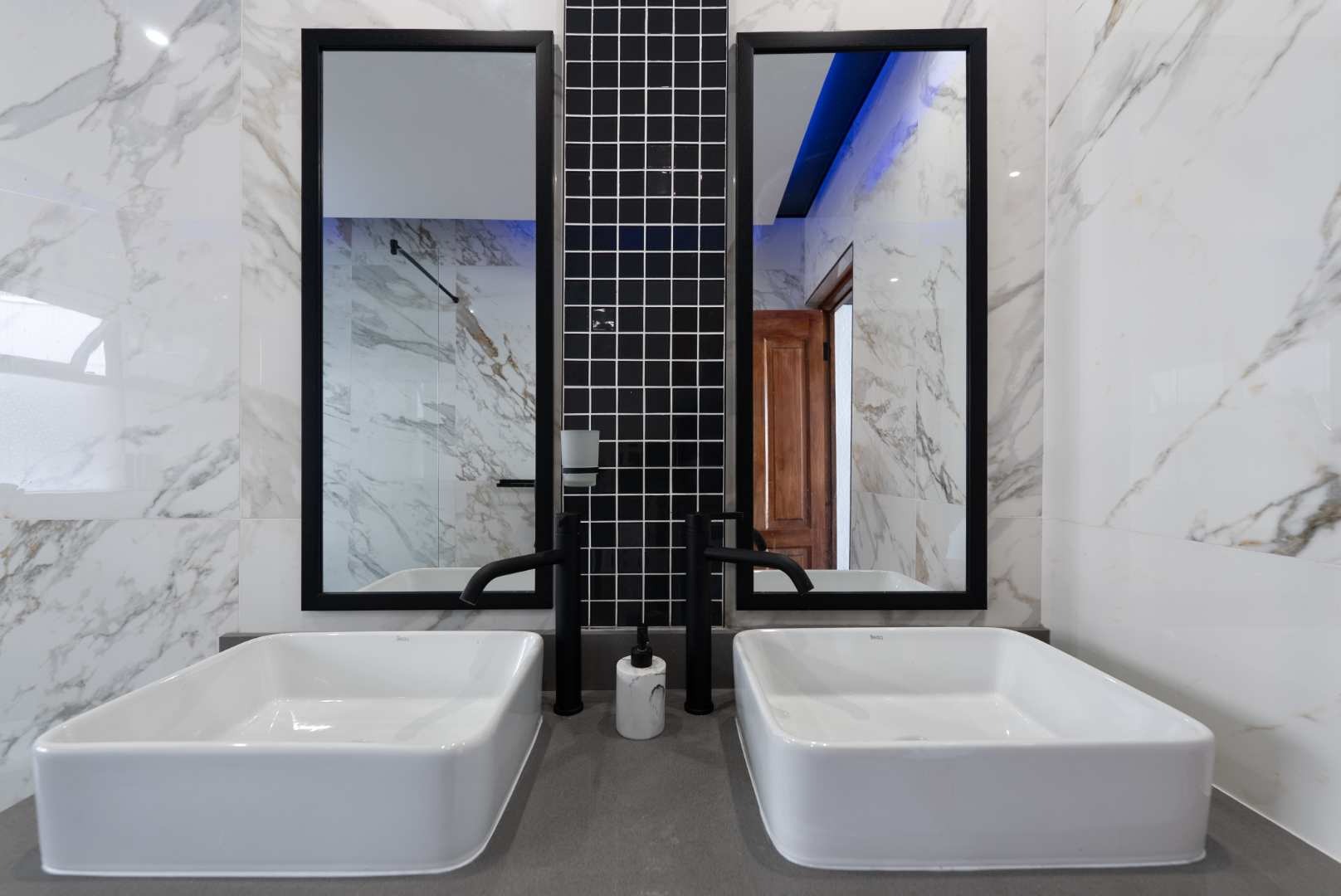 The spacious lounge and kitchen flow seamlessly, featuring a clever built-in desk ideal for work-from-home days — which transforms into a wall-bed to comfortably host guests. An additional bathroom serves this area.
