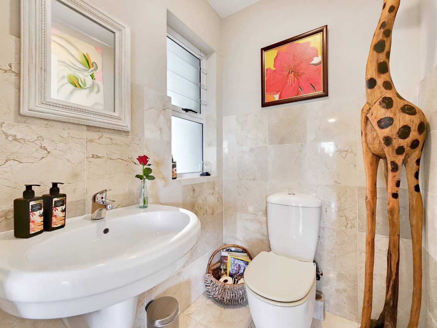 The spacious bedrooms offer comfort and privacy, with both rooms being en-suite. One of the bedrooms is furnished with a bed, making it move-in ready. Additionally, the home boasts a guest bathroom and an office room, perfect for those working from home or seeking extra space. The property is within walking distance of DSK German International School and the popular Blue Café, adding convenience to this ideal location.