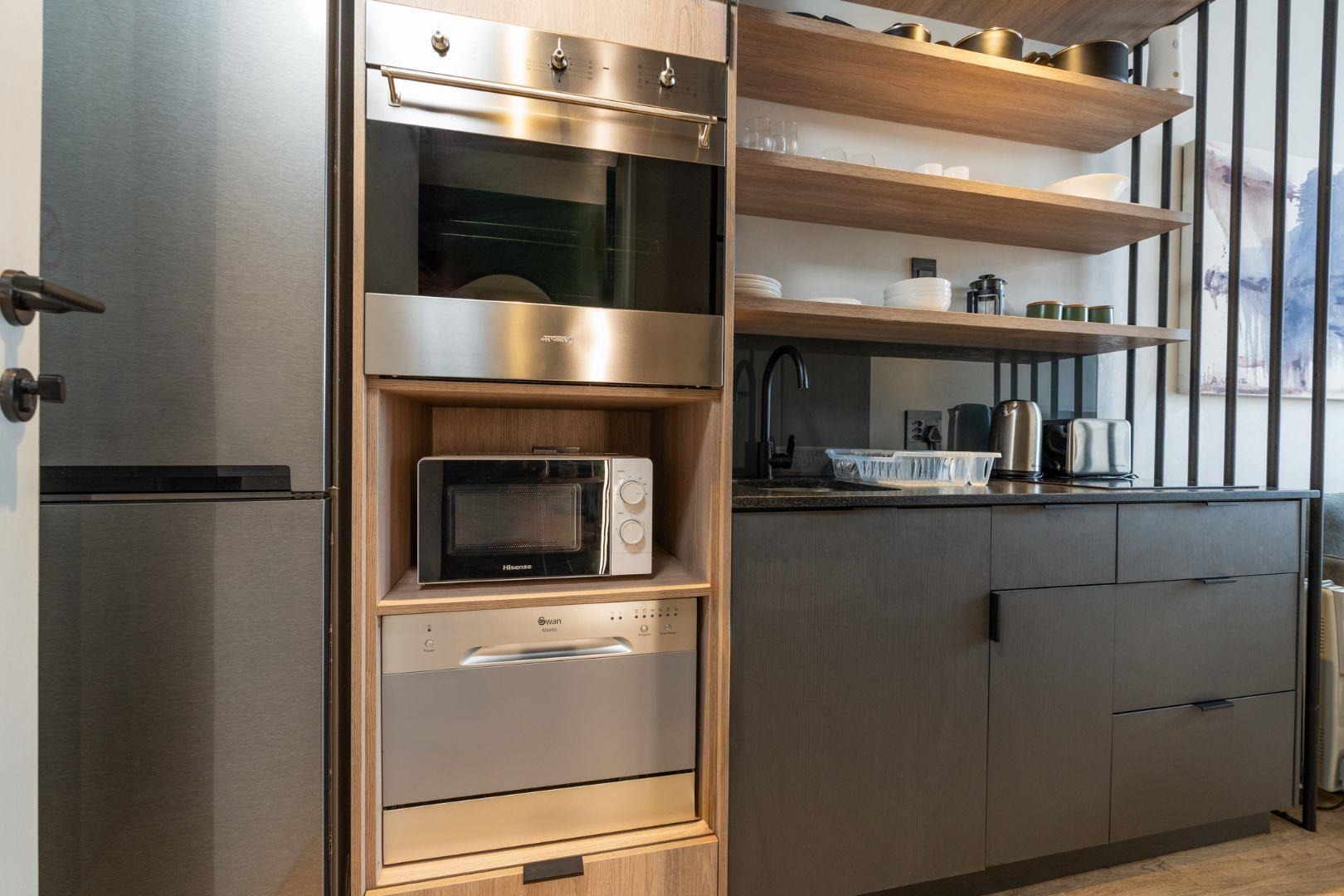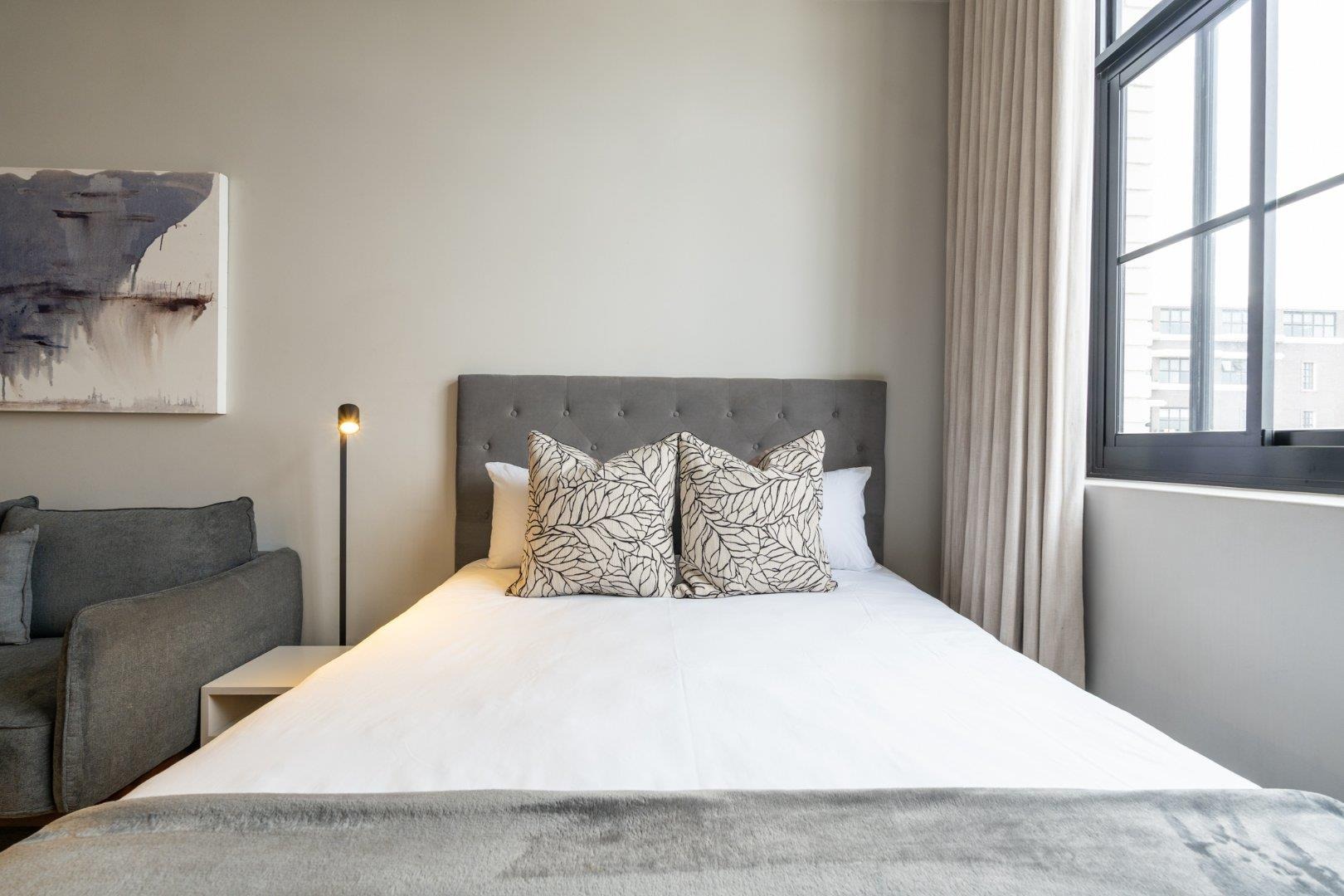 The building offers an array of amenities designed to enhance your lifestyle. Enjoy peace of mind with 24-hour security and take advantage of the convenient on-site co-working spaces and laundry facilities. Catch your favorite game in the communal TV room, conduct private meetings in the Zoom room, or relax on the open terrace while watching the hustle and bustle of the street below.