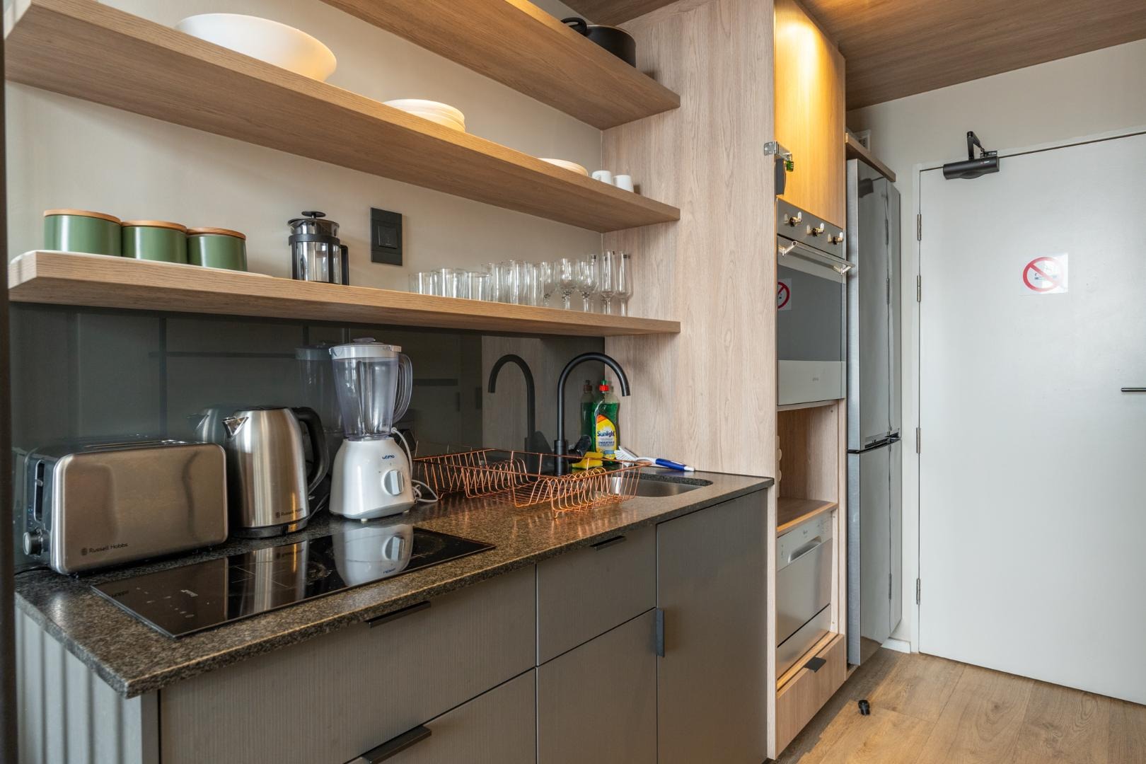 The building offers a range of impressive amenities, including 24-hour security for peace of mind, co-working spaces for productivity, and an on-site laundry for added convenience. Enjoy socializing in the communal TV room, catch up on important meetings in the Zoom room, or relax on the open terrace and soak in the dynamic street views below.