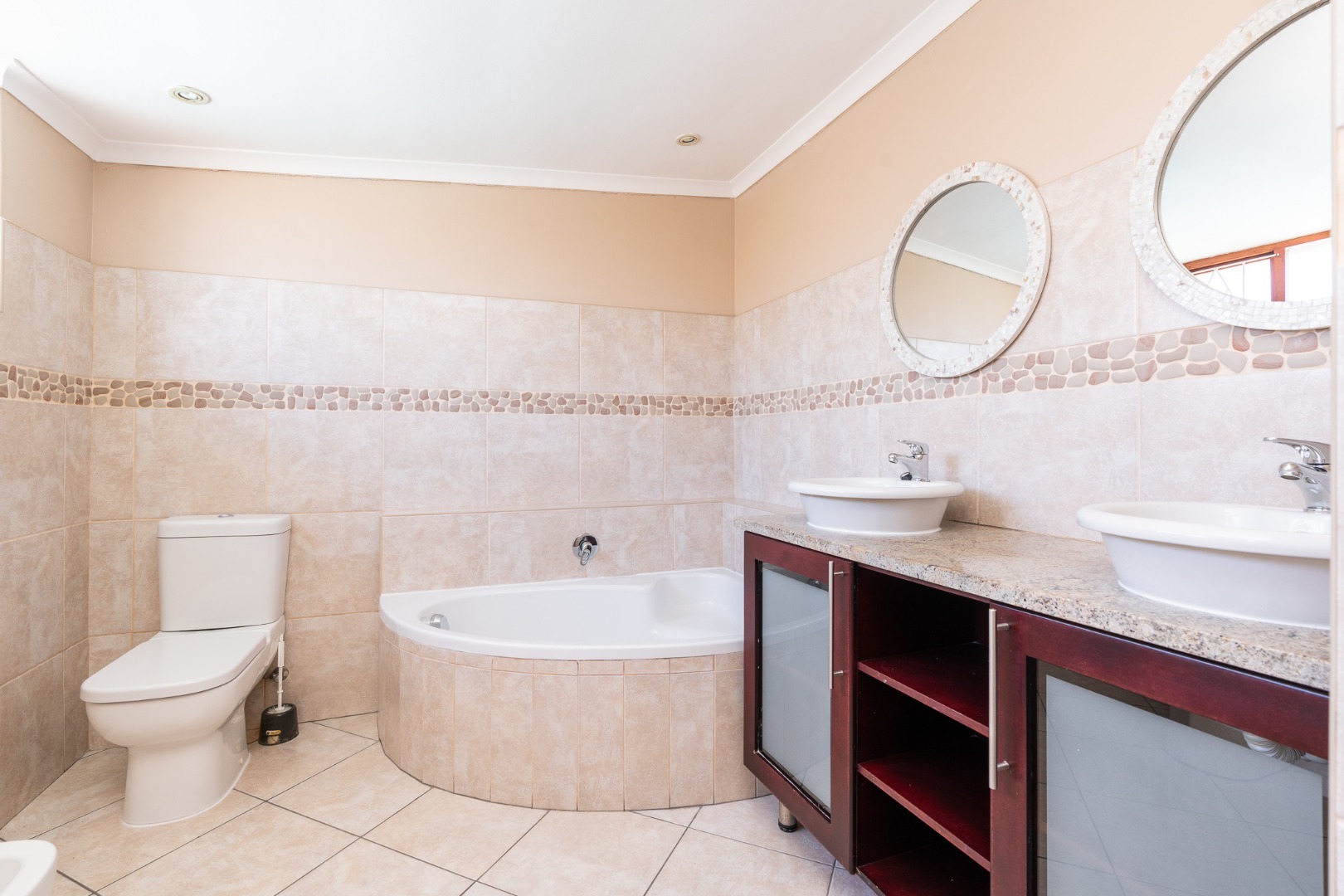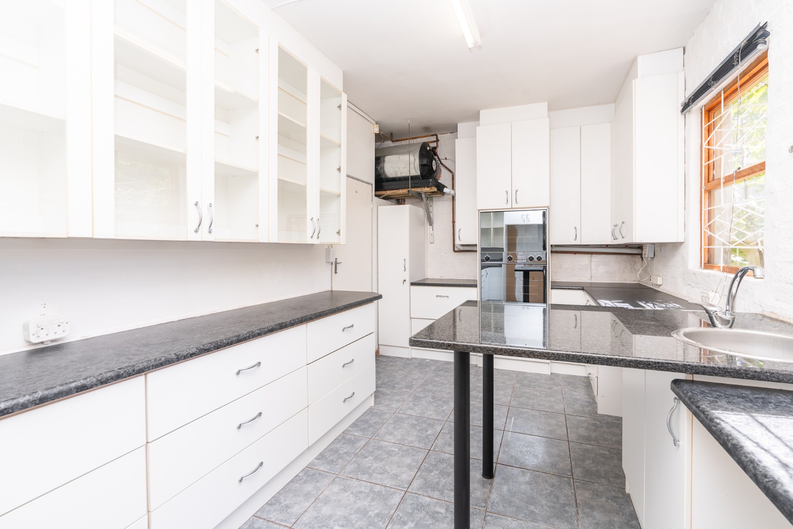 Downstairs: Lounge (carpeted), dining room, TV room/office, 2 x kitchens, guest toilet, domestic quarters and garages for 3 cars. Upstairs: Four spacious bedrooms with built-in-cupboards (carpeted). Two full bathrooms (main en-suite and family).