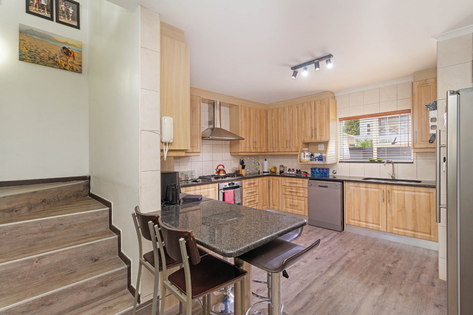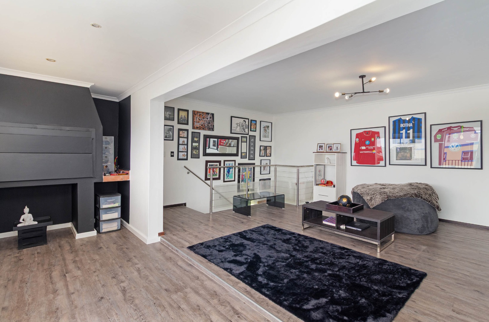 Downstairs: Kitchen with additional pantry cupboard, lounge/dining room, two bedrooms, full family bathroom, separate guest toilet, laundry with bics, entertainment room (presently used as a home gym) leading out to covered braai area, pool and large garage with workshop (direct access to property). Additional secure parking for 2 cars. Upstairs: Pajama lounge with braai leading to balcony overlooking the pool and manageable grounds. Two bedrooms (both with full ensuites). Extra’s include 8 solar panels/inverter for the house and separate solar for the pool. Entrance gate to the property can be opened via remote and app. Geyser has an automated timer. Outside beams, cameras, alarm and burglar bars for security.