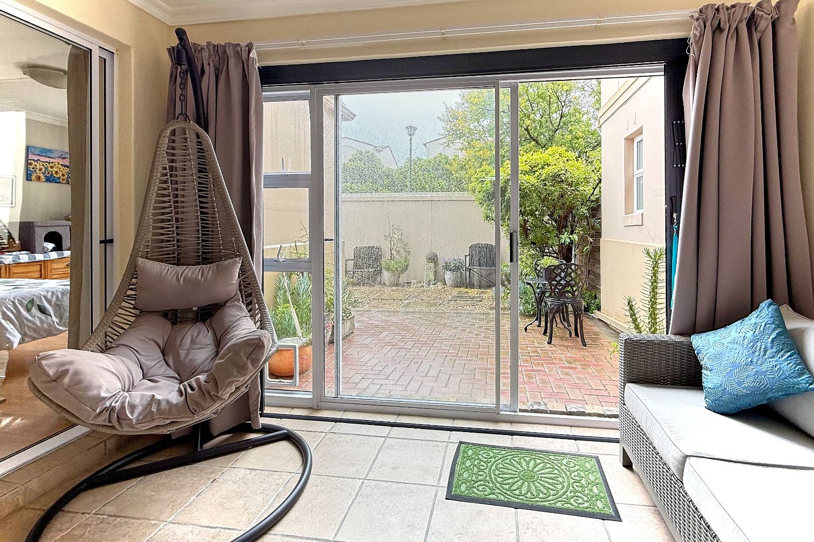 Enjoy outdoor relaxation on the patio, which overlooks a generously-sized garden—a perfect spot for entertaining or unwinding. The complex also features a play area for children, making it ideal for families.