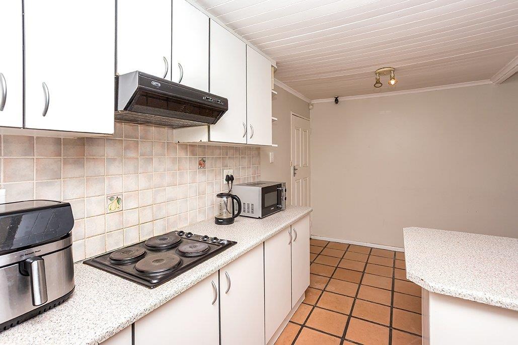 The kitchen has an eye-level oven and generous cupboard space. It conveniently leads to the scullery, ensuring a tidy and organized cooking area.