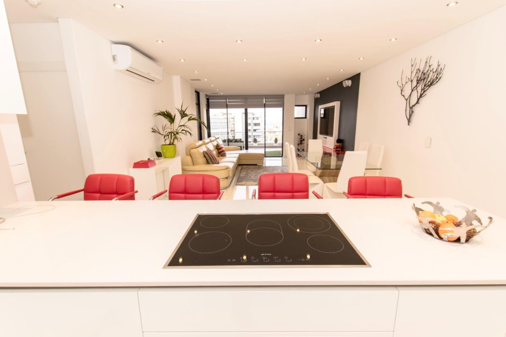 Designer imported Italian kitchen fully fitted with integrated Smeg appliances and premium cookware