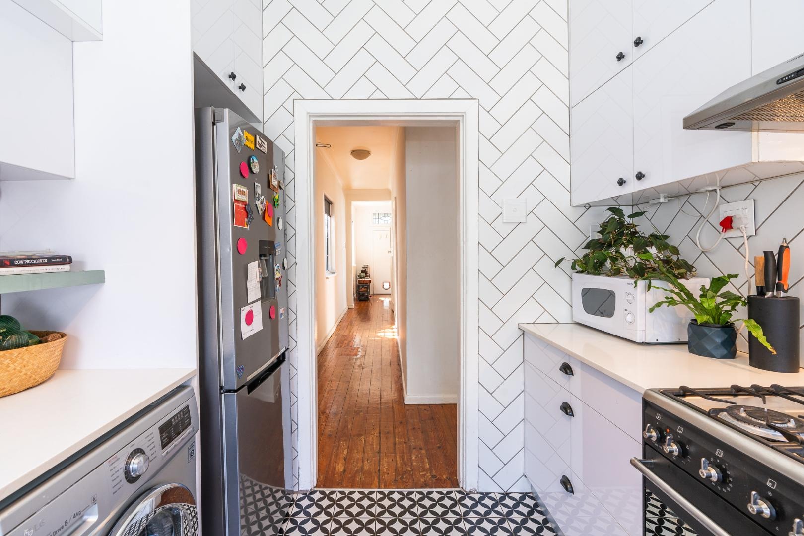 The kitchen offers a freestanding SMEG oven with gas hob, space for a washing machine, dishwasher and fridge/freezer. The tumble dryer can be accommodated in the cupboard in 2nd bedroom.