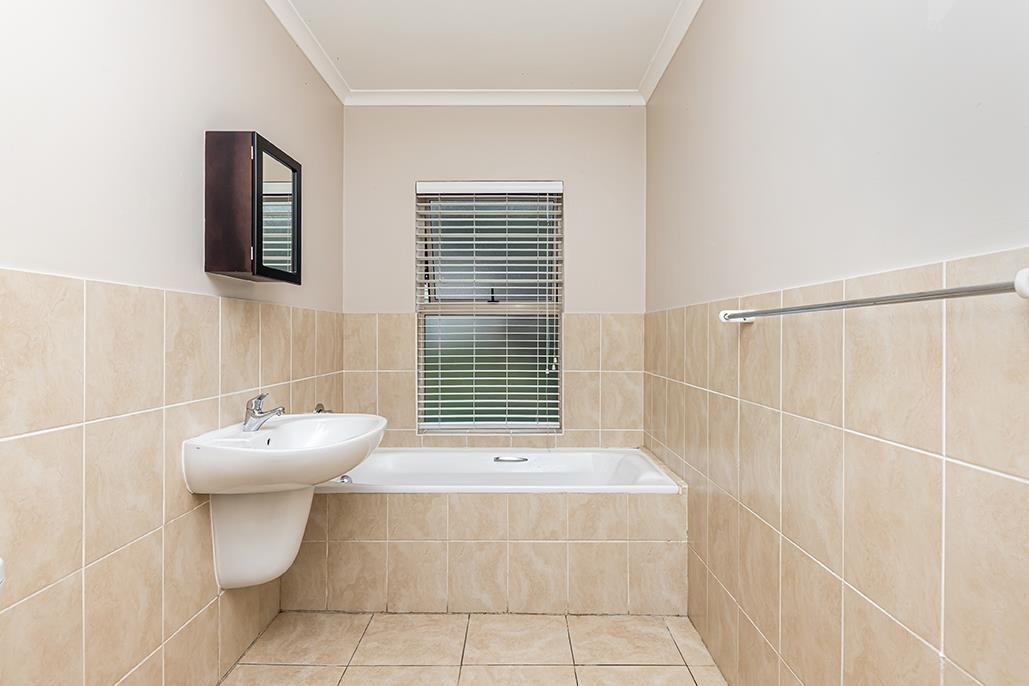 The main bedroom features built-in cupboards and an en-suite bathroom (shower), offering both comfort and convenience. The expansive family bathroom is filled with natural light and includes a bathtub for your relaxation needs. The second bedroom is generously sized to accommodate a double bed and also boasts built-in cupboards. Additional storage space is available with extra cupboards conveniently located in the passage, ideal for linen and other essentials.