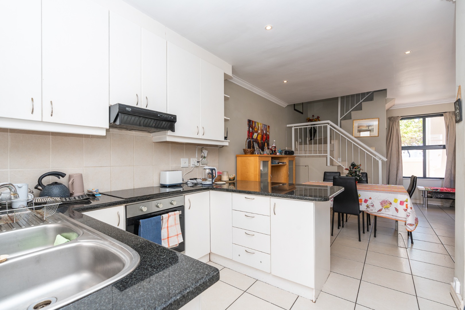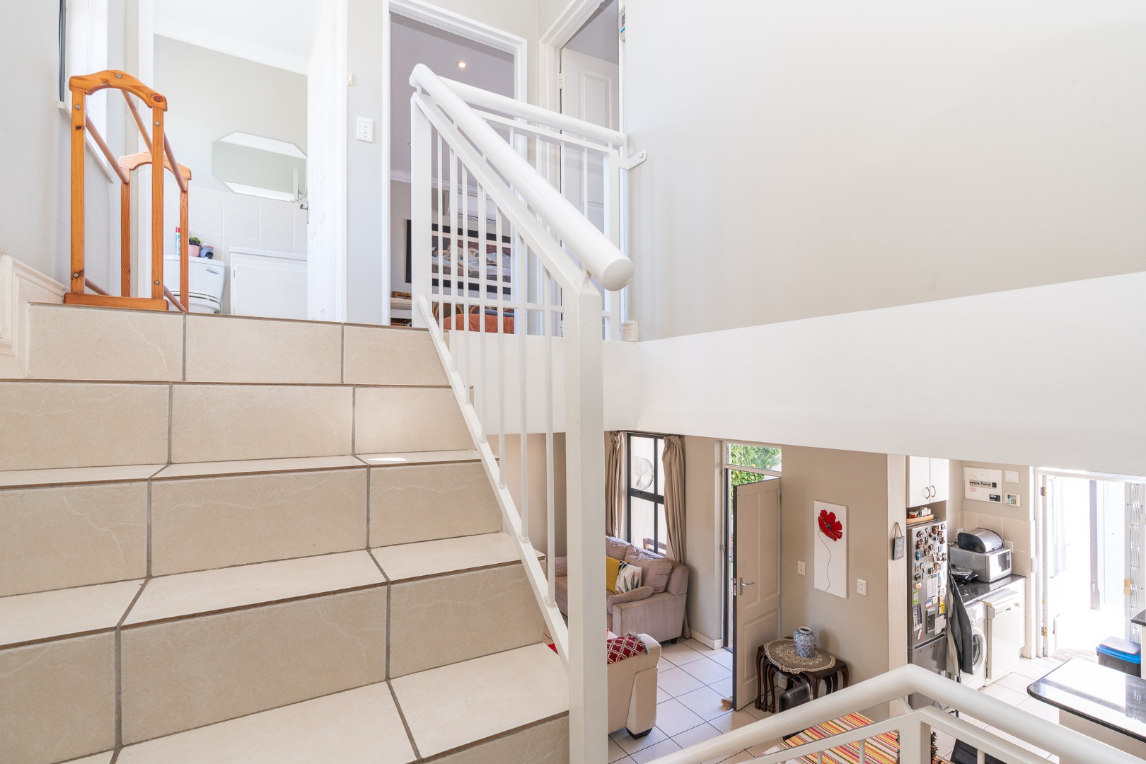 The upstairs area features two bright and airy bedrooms, both offering stunning views of Table Mountain.