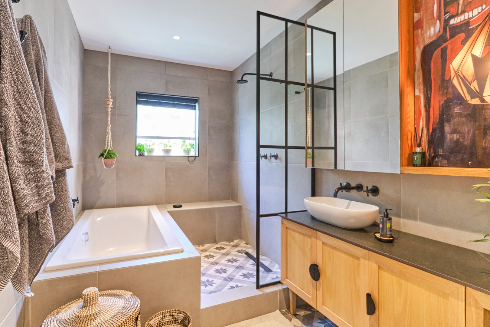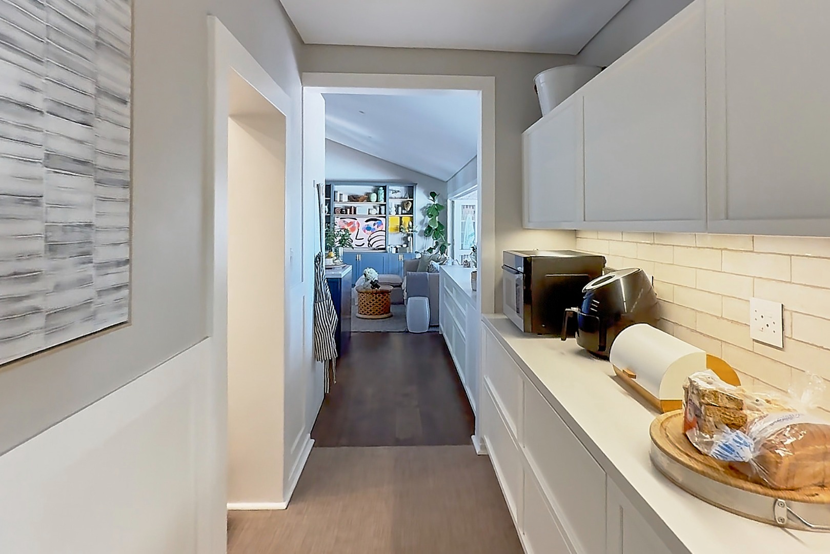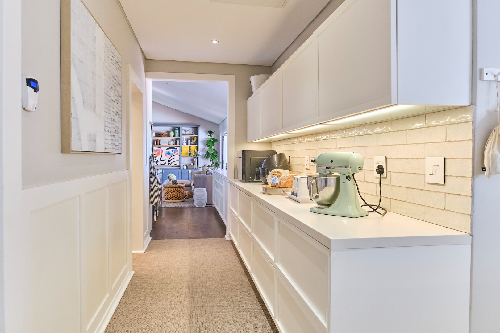An flatlet that can serve as accommodation for staff, grandparents, kids or for generating income. The flatlet includes one bedroom with built-in cupboards, a kitchenette with a stove and a bathroom with a shower, toilet, and basin with vanity.