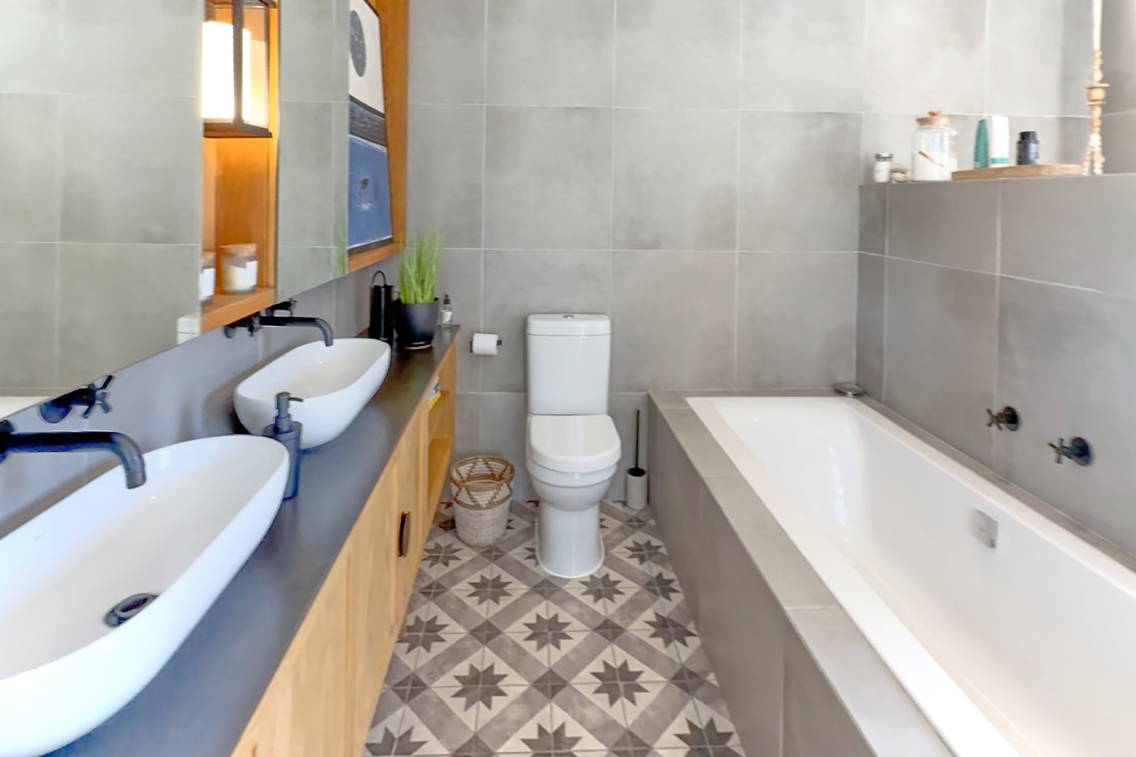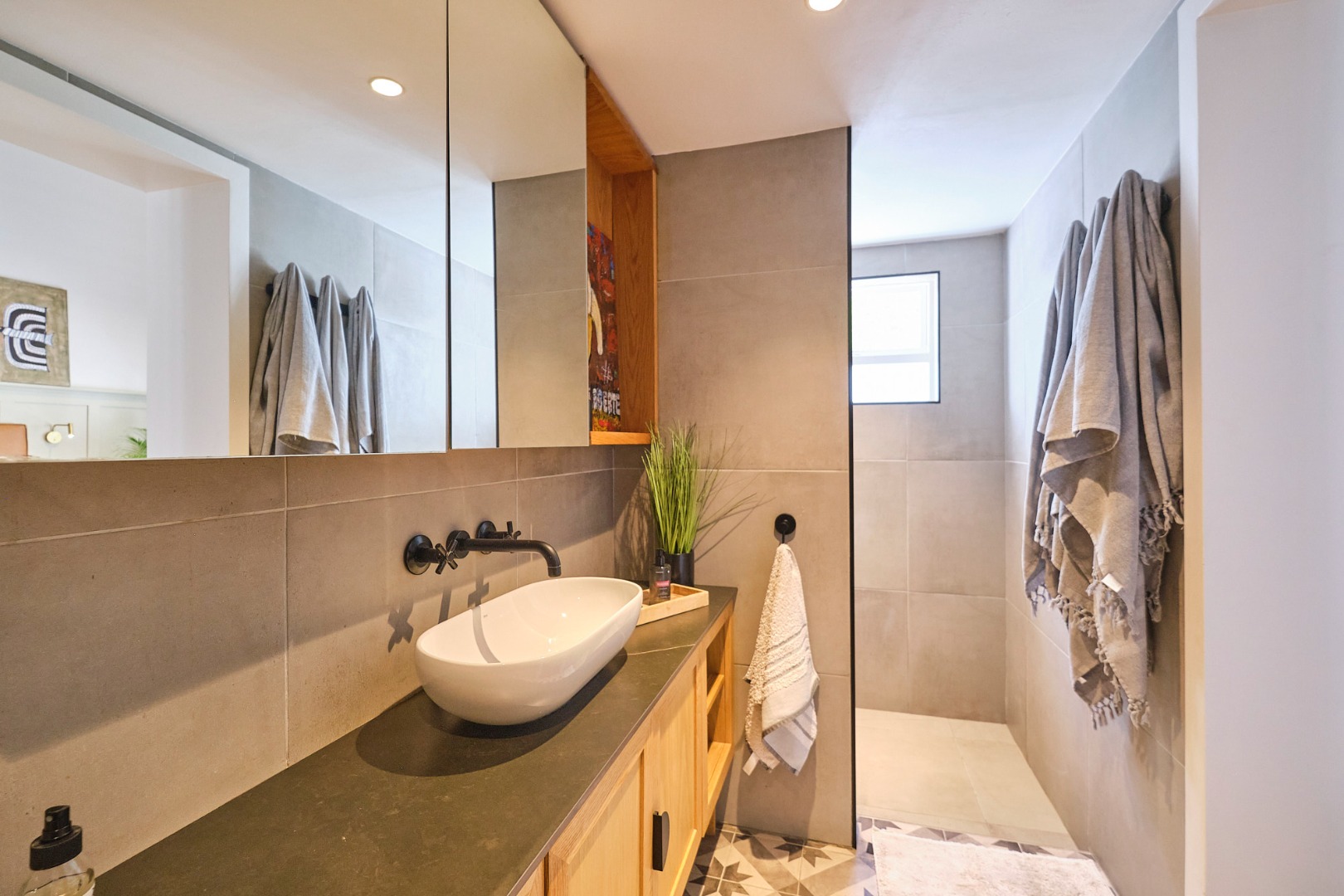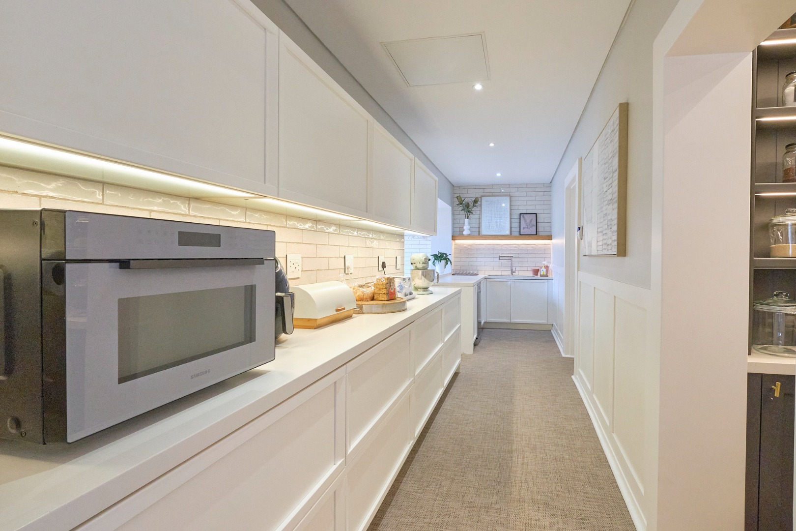 An flatlet that can serve as accommodation for staff, grandparents, kids or for generating income. The flatlet includes one bedroom with built-in cupboards, a kitchenette with a stove and a bathroom with a shower, toilet, and basin with vanity.