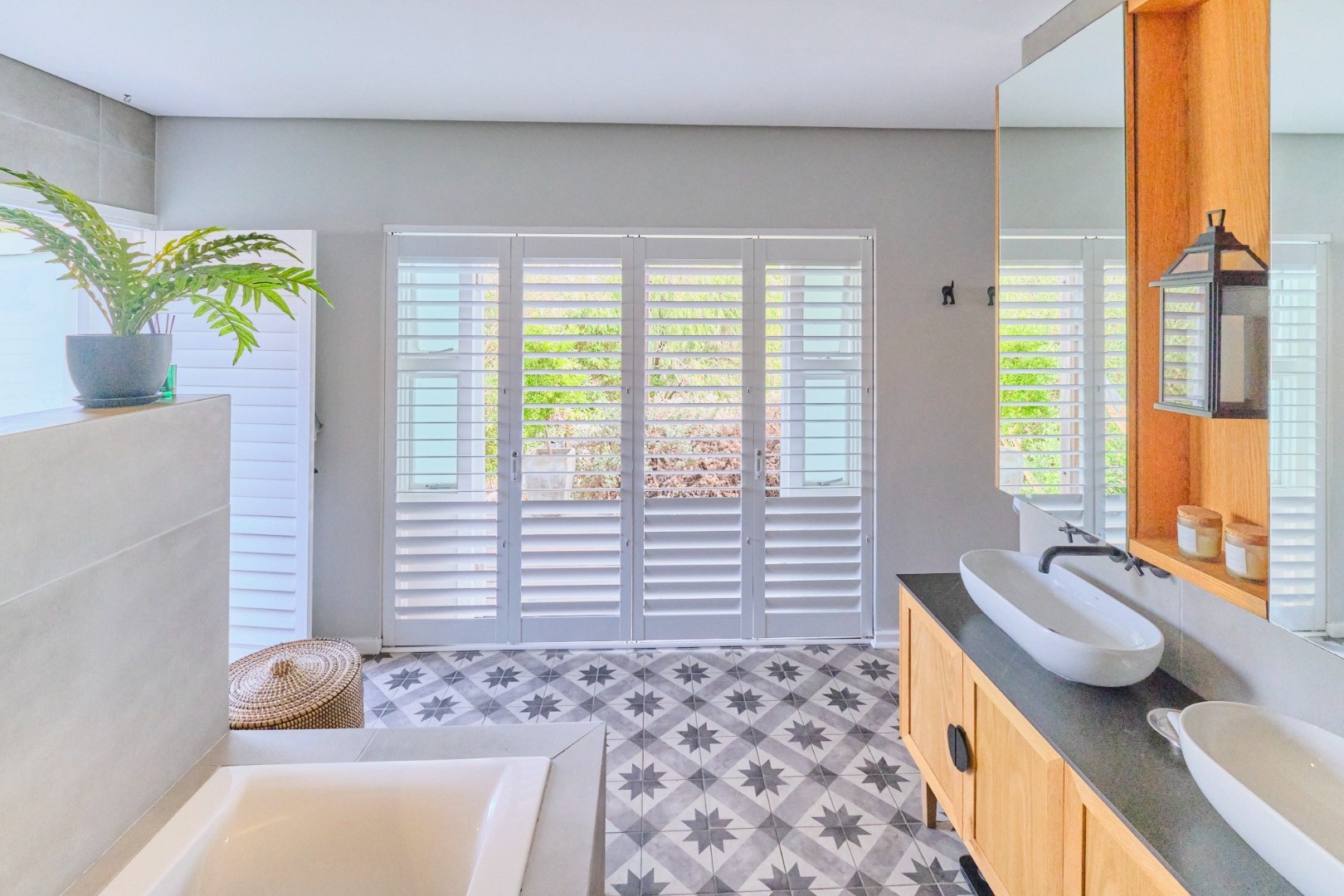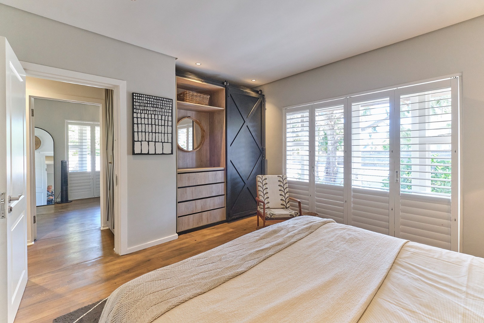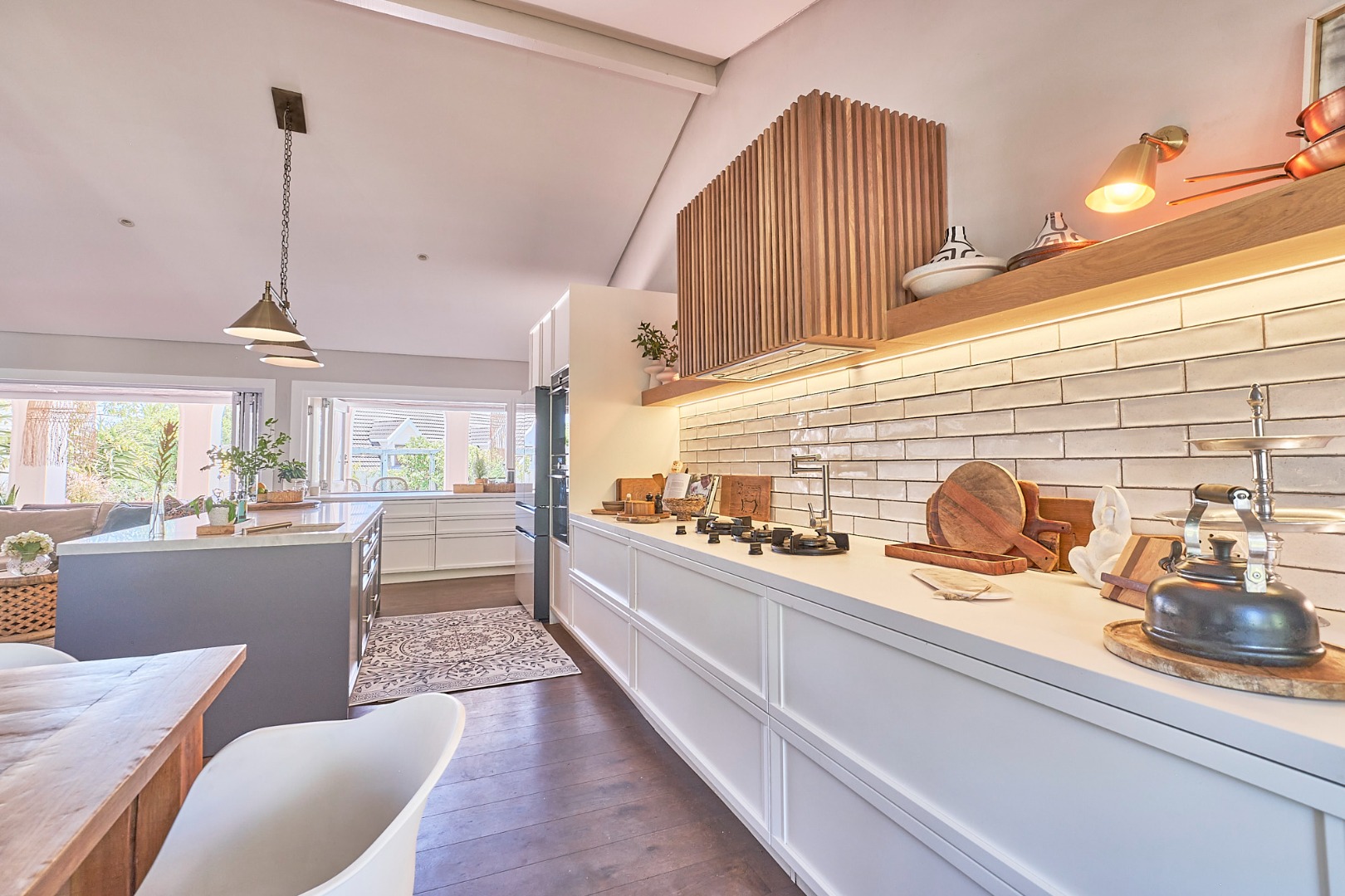 The home is decked around the majority of its exterior, with all bedrooms leading out onto the deck. Aluminium American shutter sliding doors throughout the home. Beautiful wooden oak flooring complements the stylish modern wall paneling in the bedrooms and passage, while stylish light fittings enhance the home's ambiance.