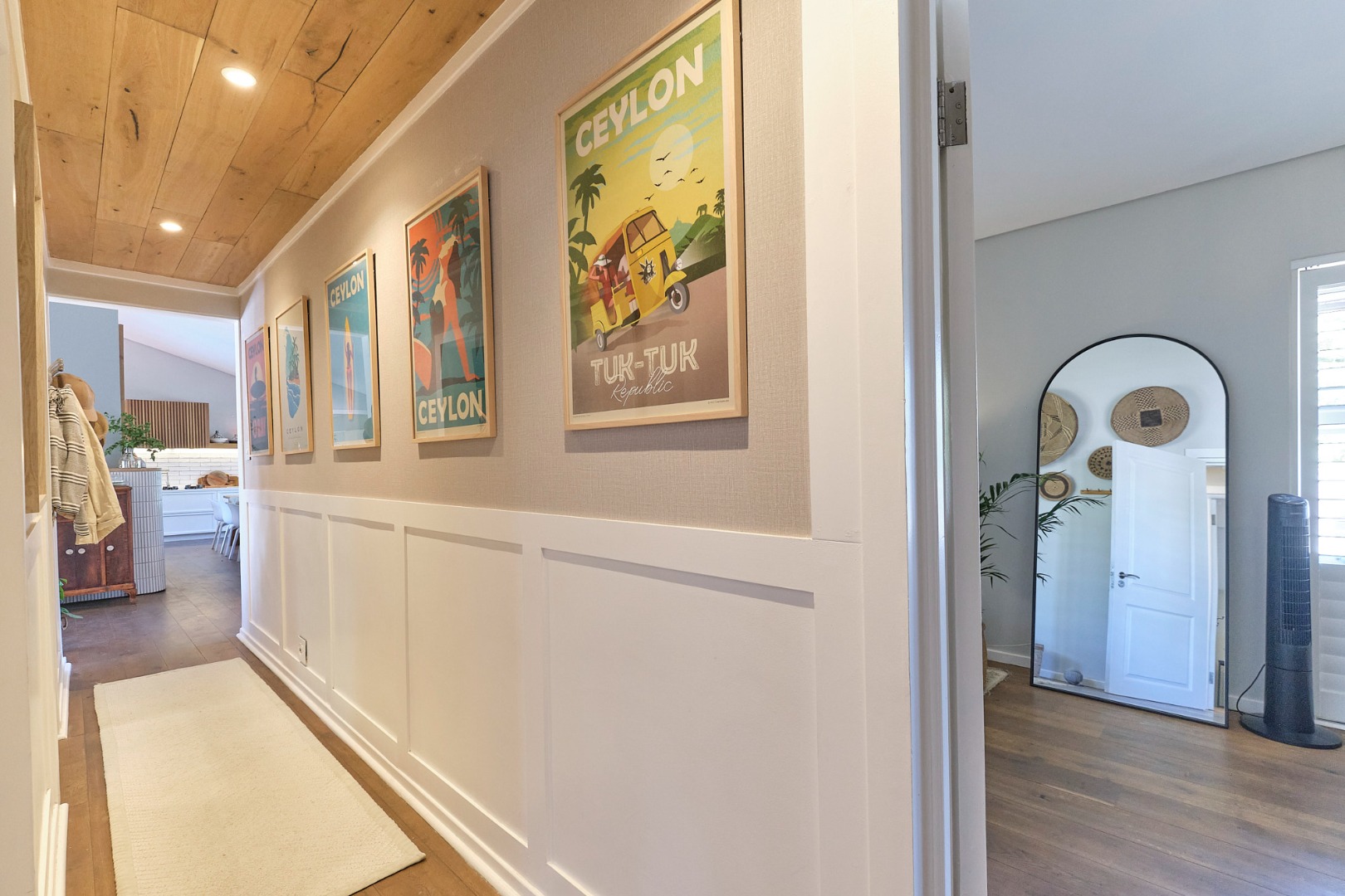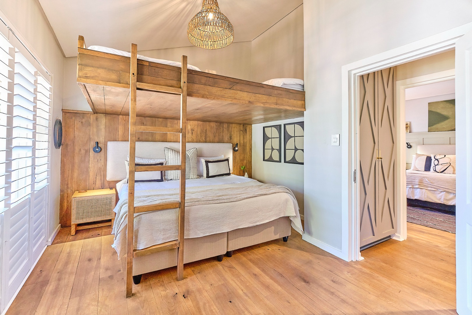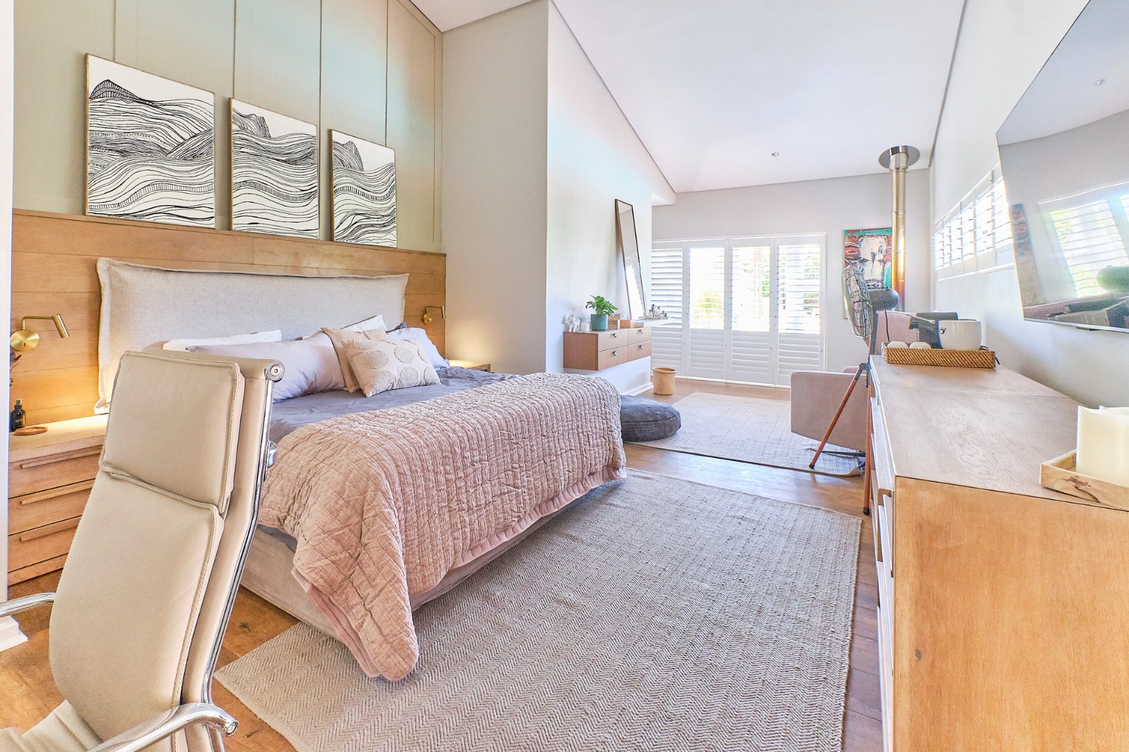 The home is decked around the majority of its exterior, with all bedrooms leading out onto the deck. Aluminium American shutter sliding doors throughout the home. Beautiful wooden oak flooring complements the stylish modern wall paneling in the bedrooms and passage, while stylish light fittings enhance the home's ambiance.