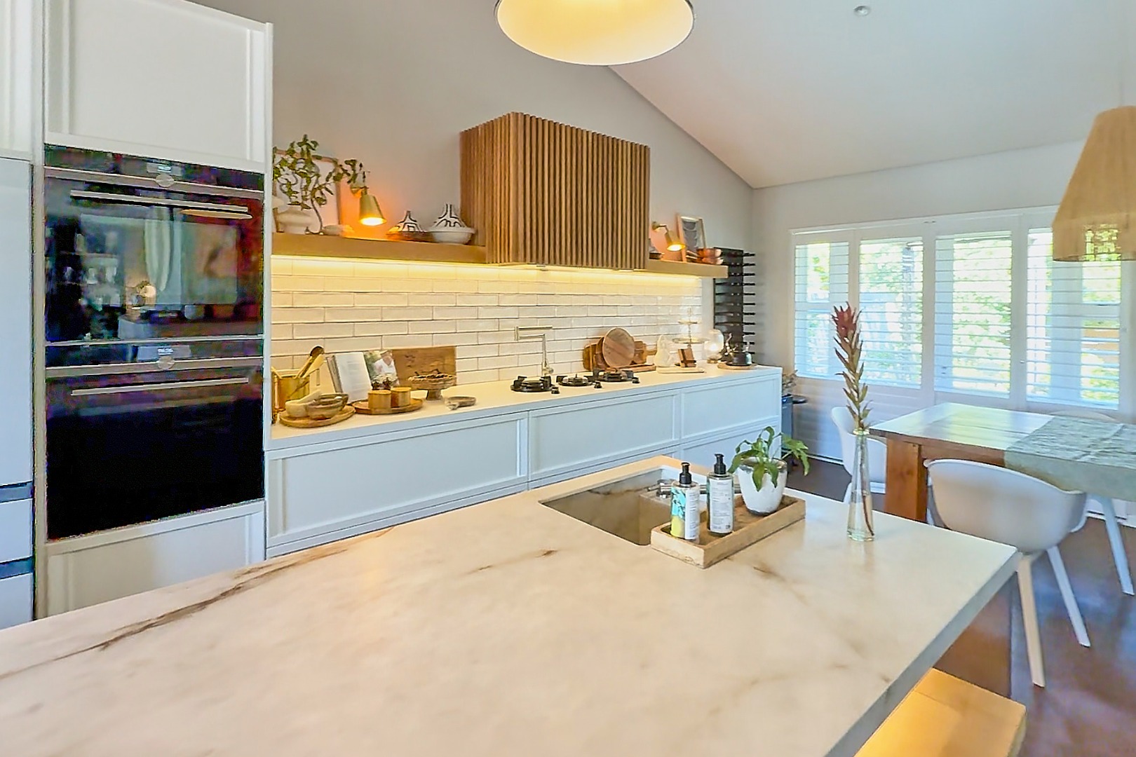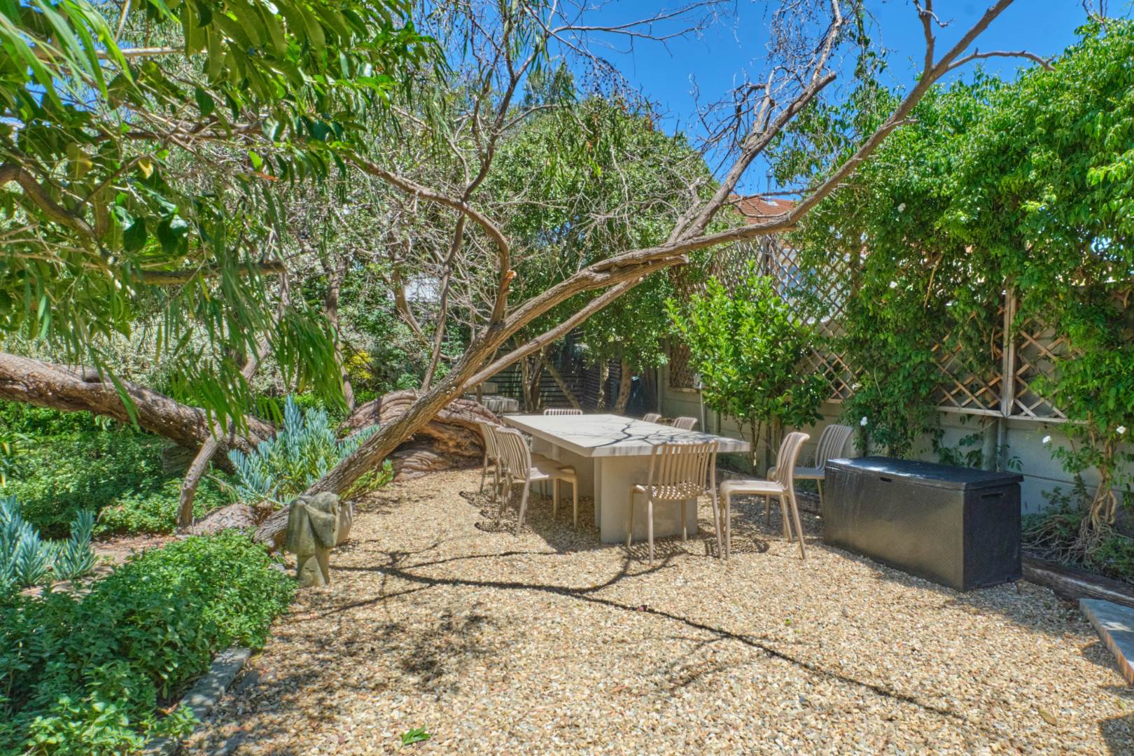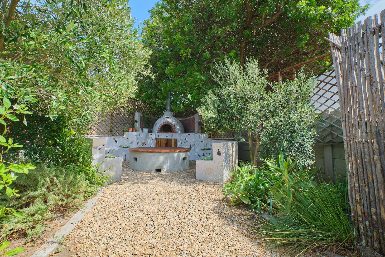 Tucked away in the garden is a built-in 10-seater table, pizza oven, and conversation pit with plenty of seating and a built-in table to entertain guests.