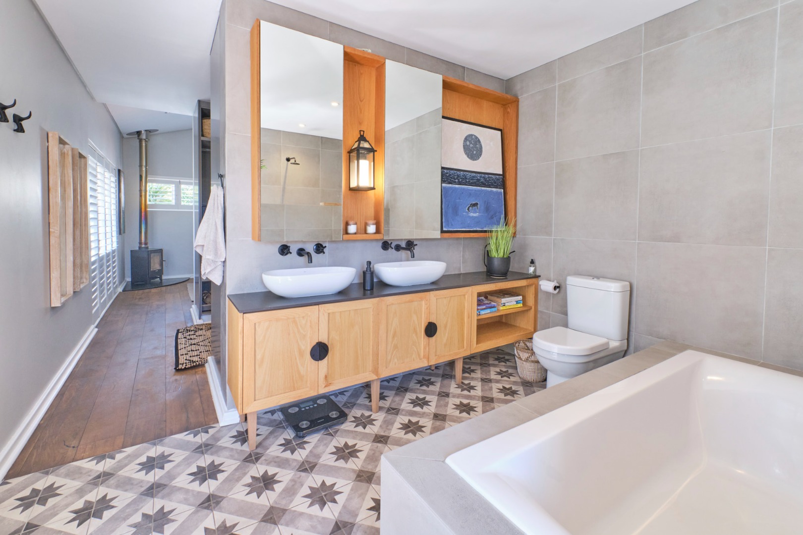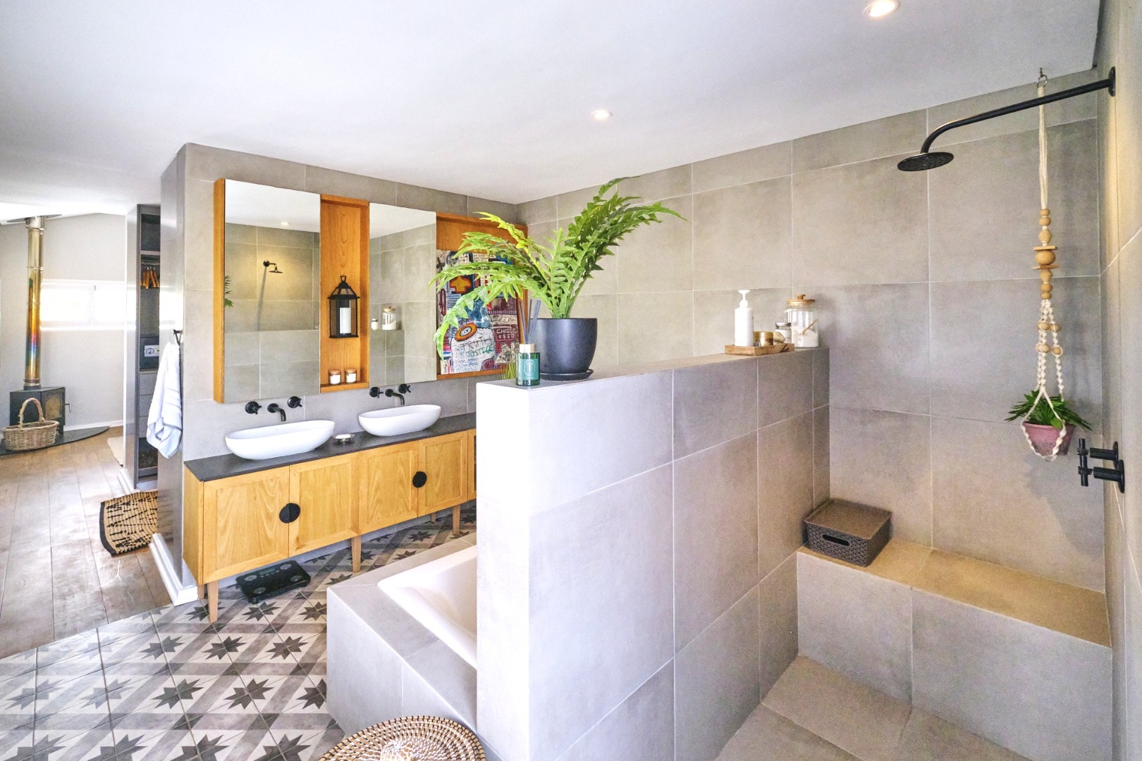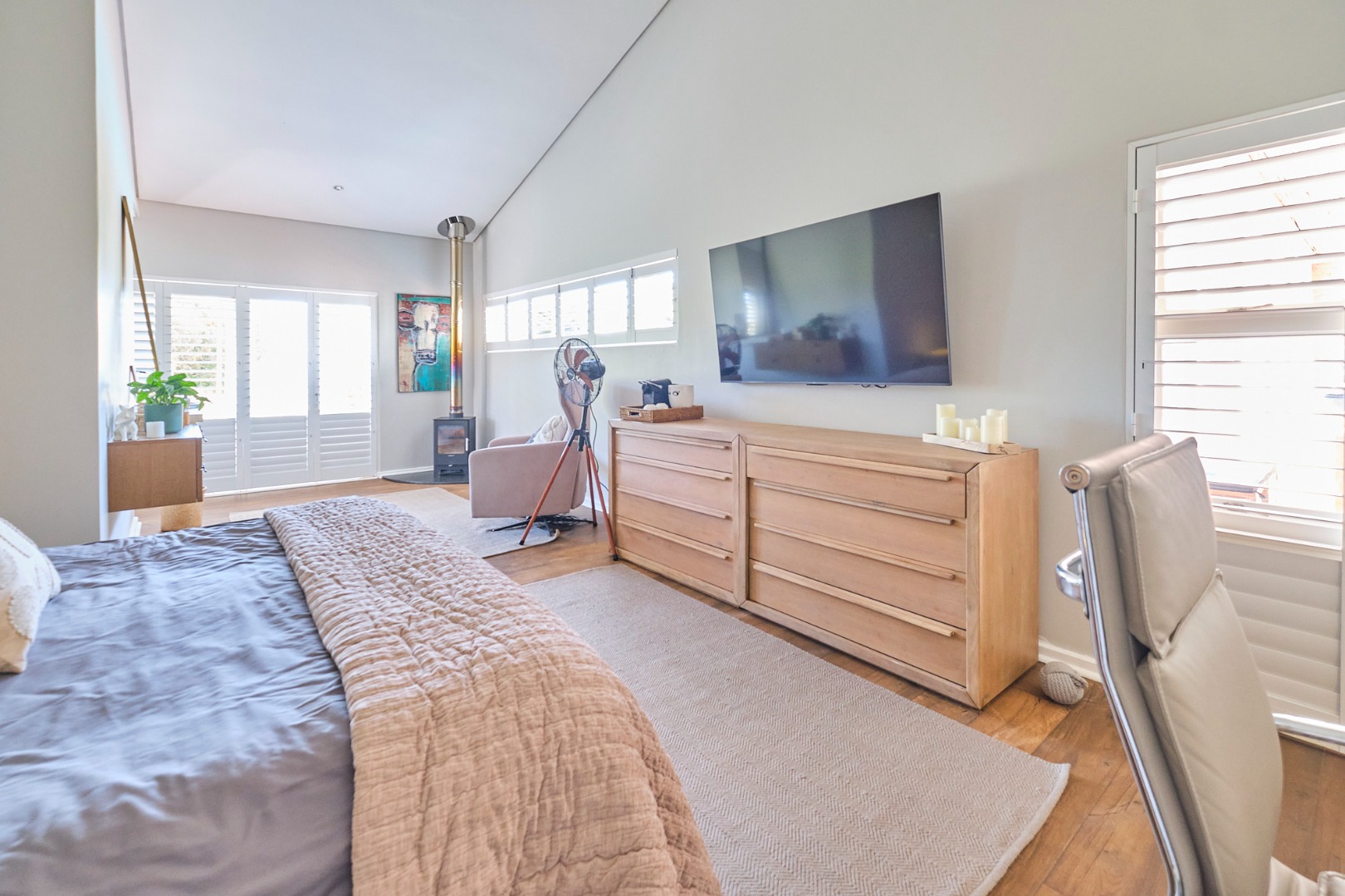 The home boasts four large, spacious bedrooms, each exuding luxury and comfort. The main bedroom includes a cozy fireplace and opens onto a wrap-around wooden deck, offering breathtaking views of the awe-inspiring landscaped garden. Two bedrooms feature en-suite bathrooms, while a third full modern bathroom and an outdoor shower add to the home's allure. A modern fitted study ensures a perfect workspace for productivity.
