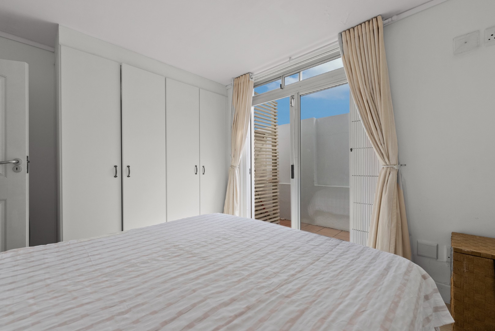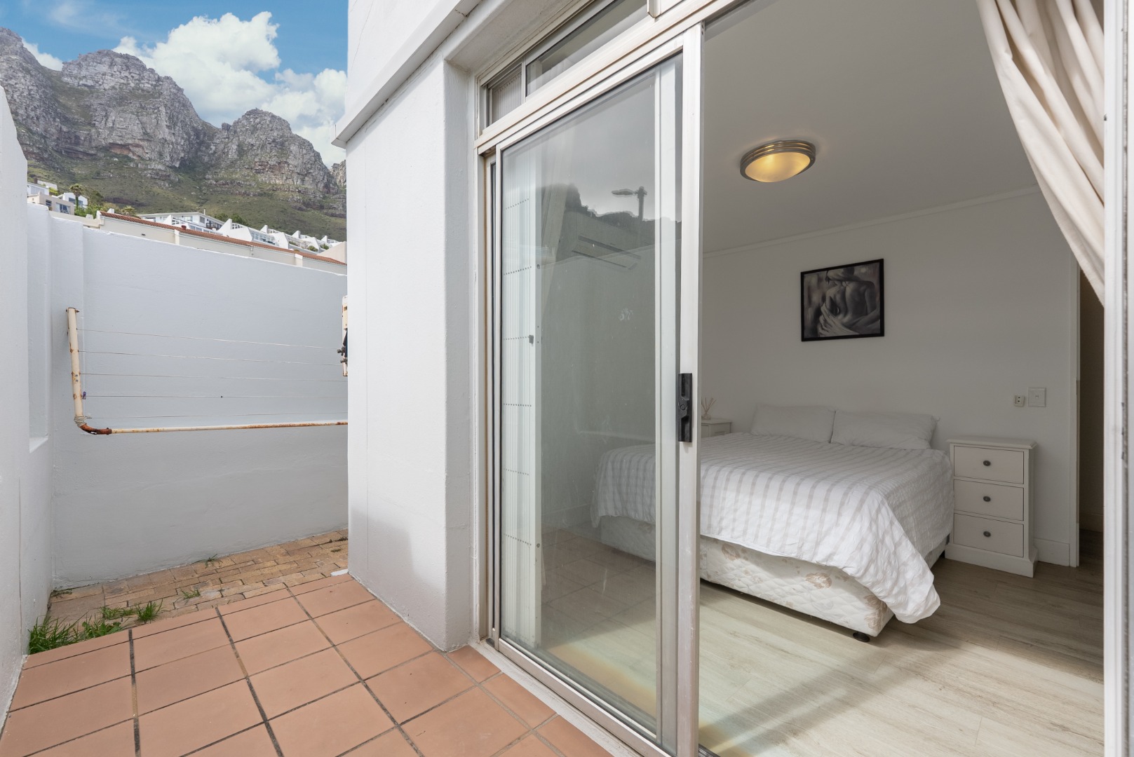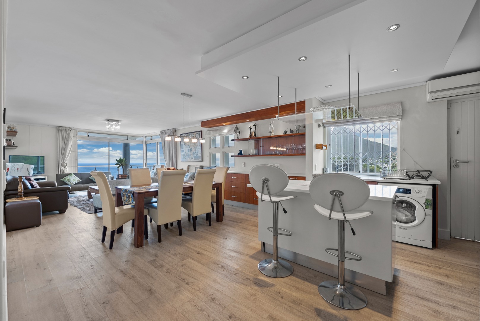 A spacious open-plan kitchen, living, and dining area flows seamlessly onto a front-facing balcony, the perfect spot to unwind and enjoy Camps Bay’s golden sunsets.