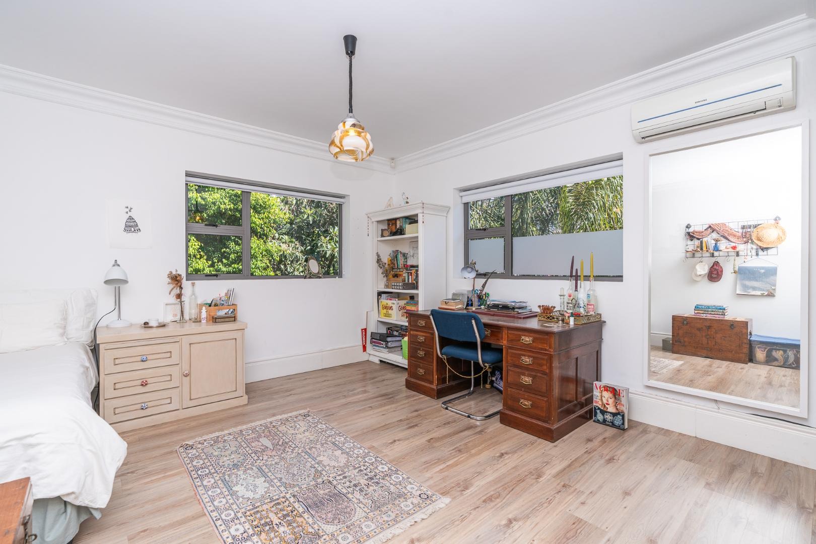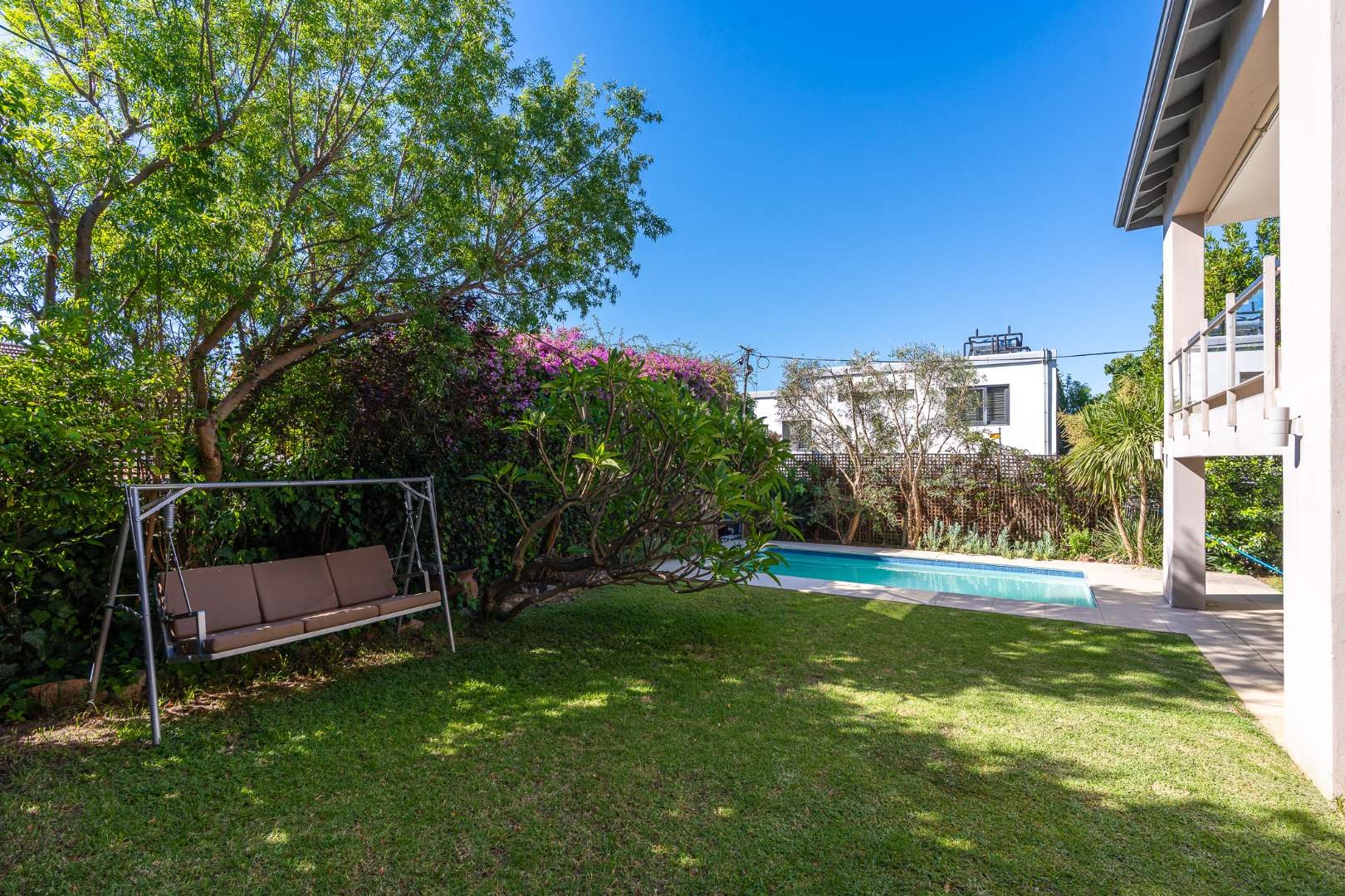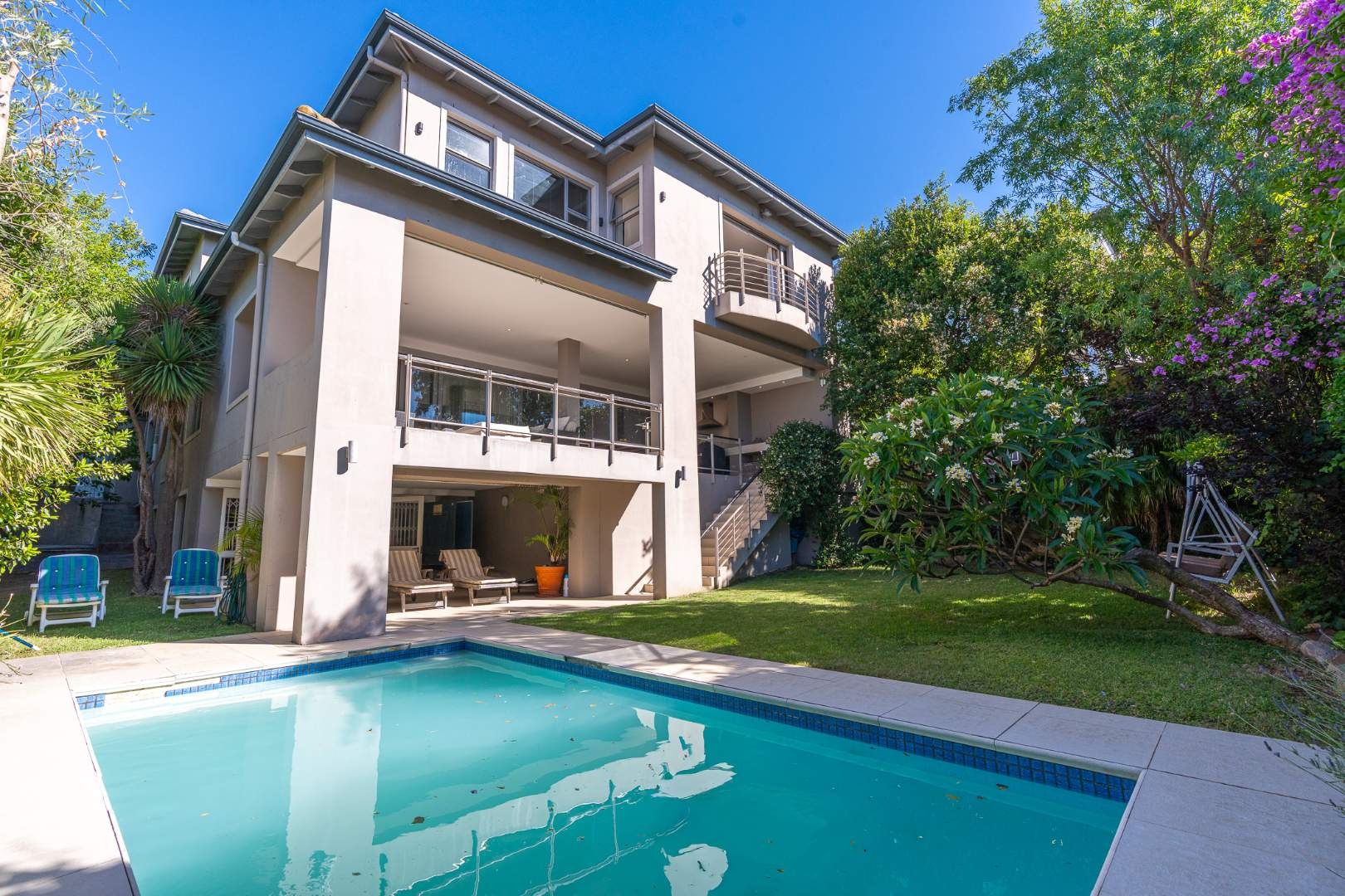 On the lower level, the pool and garden provide a peaceful escape, alongside a versatile separate studio. With its own entrance and direct access to the main house if needed, it’s ideal as a bachelor pad, art studio, home office or creative workspace.