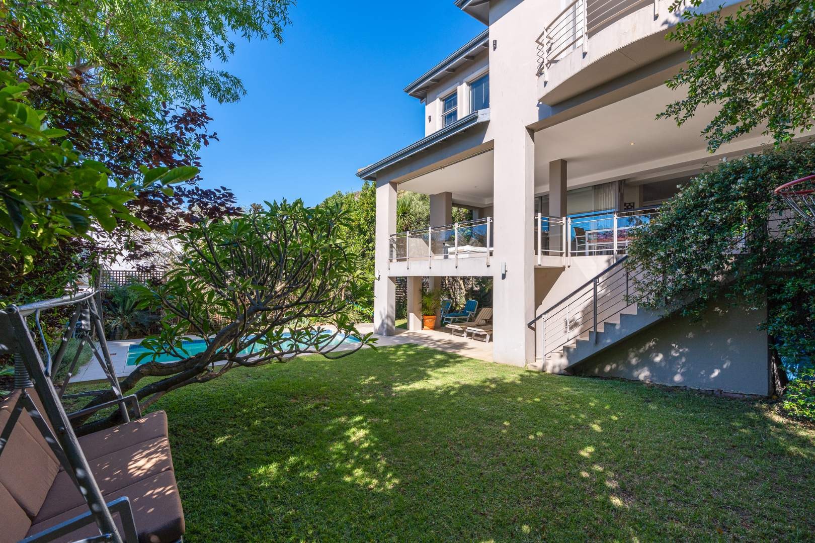 On the lower level, the pool and garden provide a peaceful escape, alongside a versatile separate studio. With its own entrance and direct access to the main house if needed, it’s ideal as a bachelor pad, art studio, home office or creative workspace.