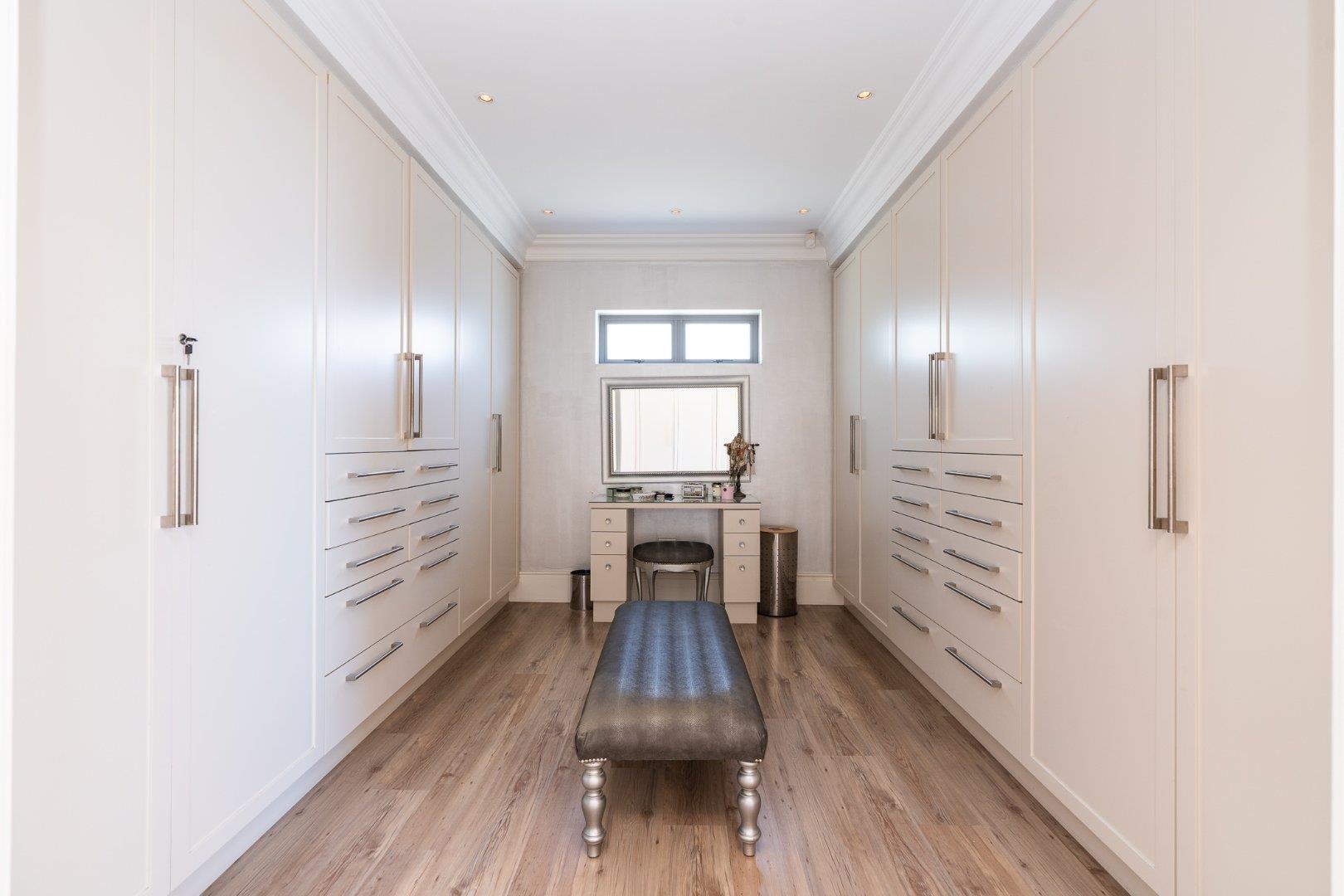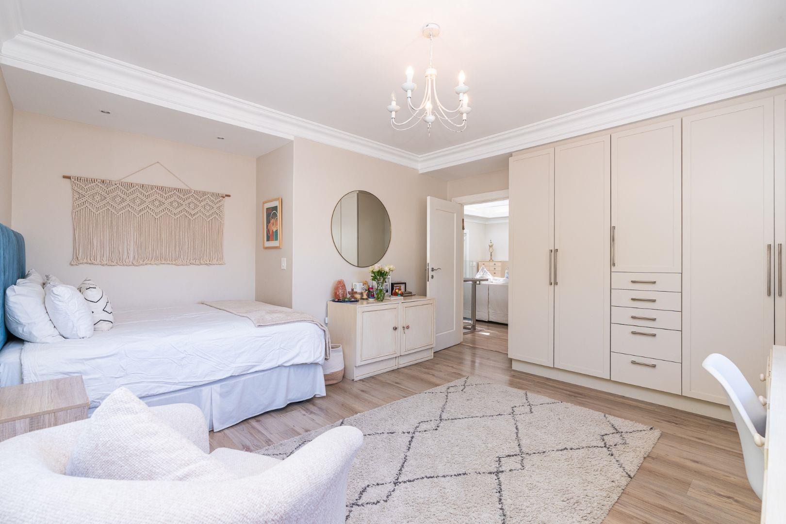 Step through the front door and into the vibrant heart of the home: an elegant formal lounge and dining area designed for seamless entertaining. A guest loo is conveniently tucked nearby. The kitchen is a dream — thoughtfully planned with generous counter space, a separate scullery and a walk-in pantry, making day-to-day living beautifully easy.
