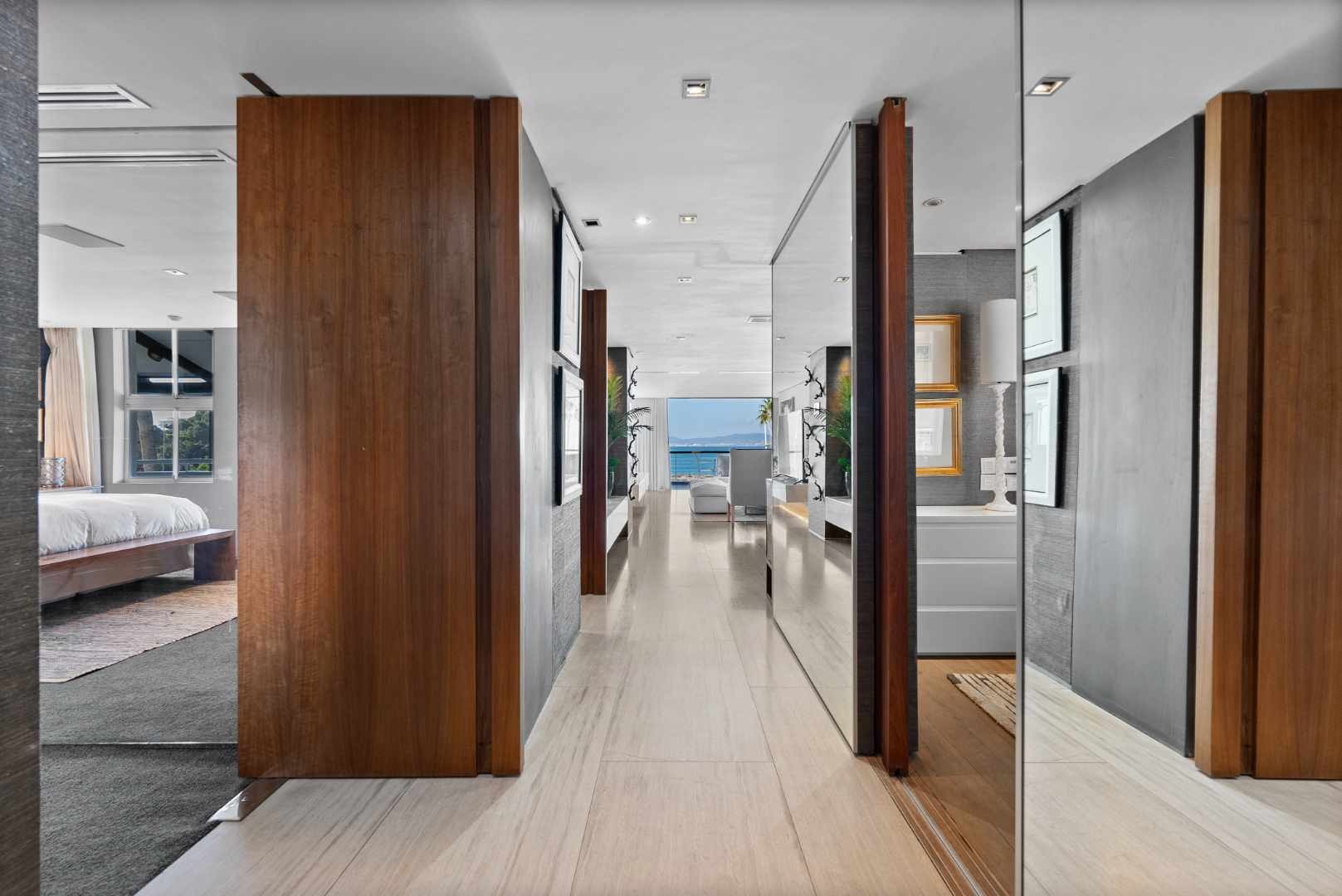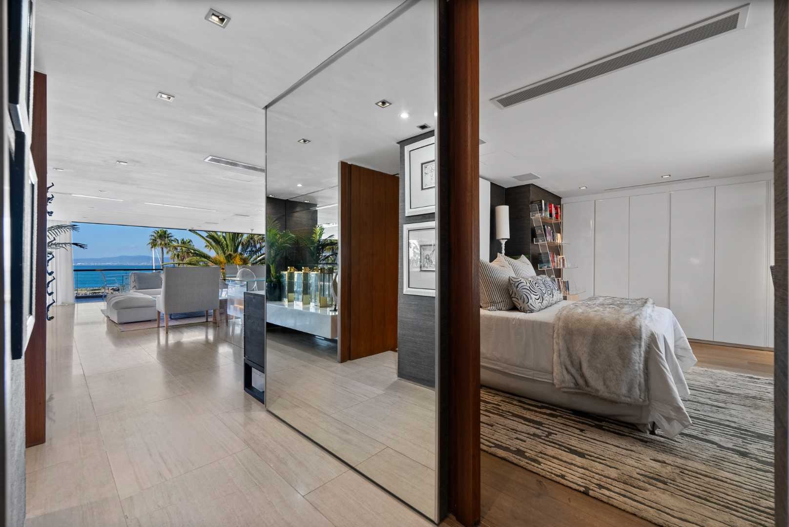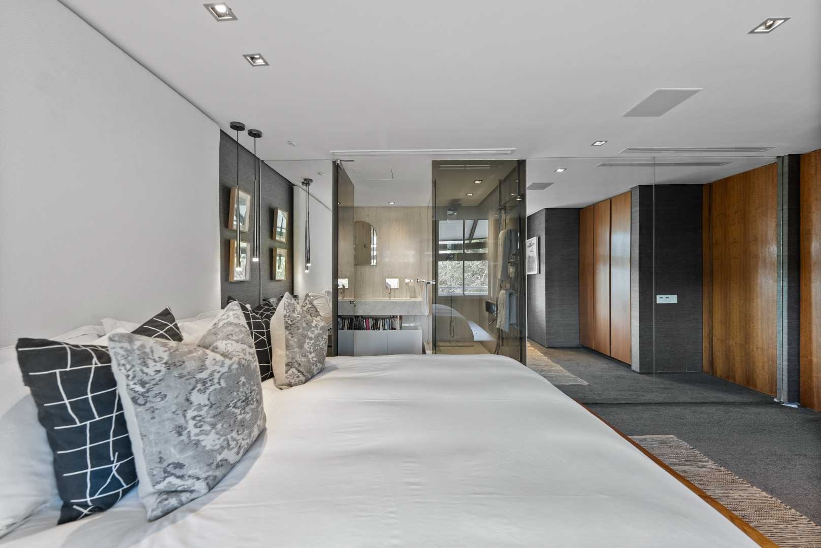 The apartment includes smart home controls, integrated air conditioning and heating, and underfloor heating. Residents have access to 24-hour security, controlled entry, a communal swimming pool, secure parking, and a storeroom. The development is located within walking distance of the V&A Waterfront.