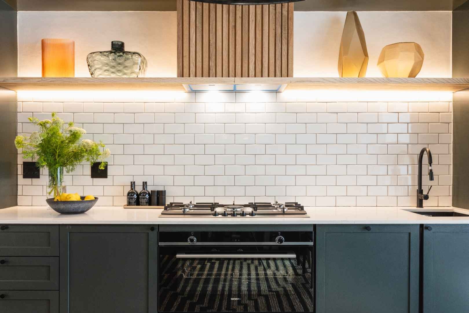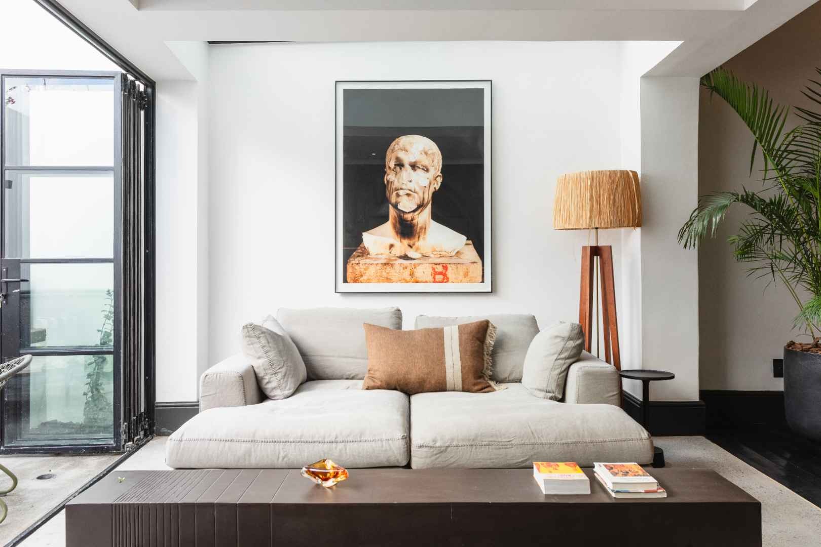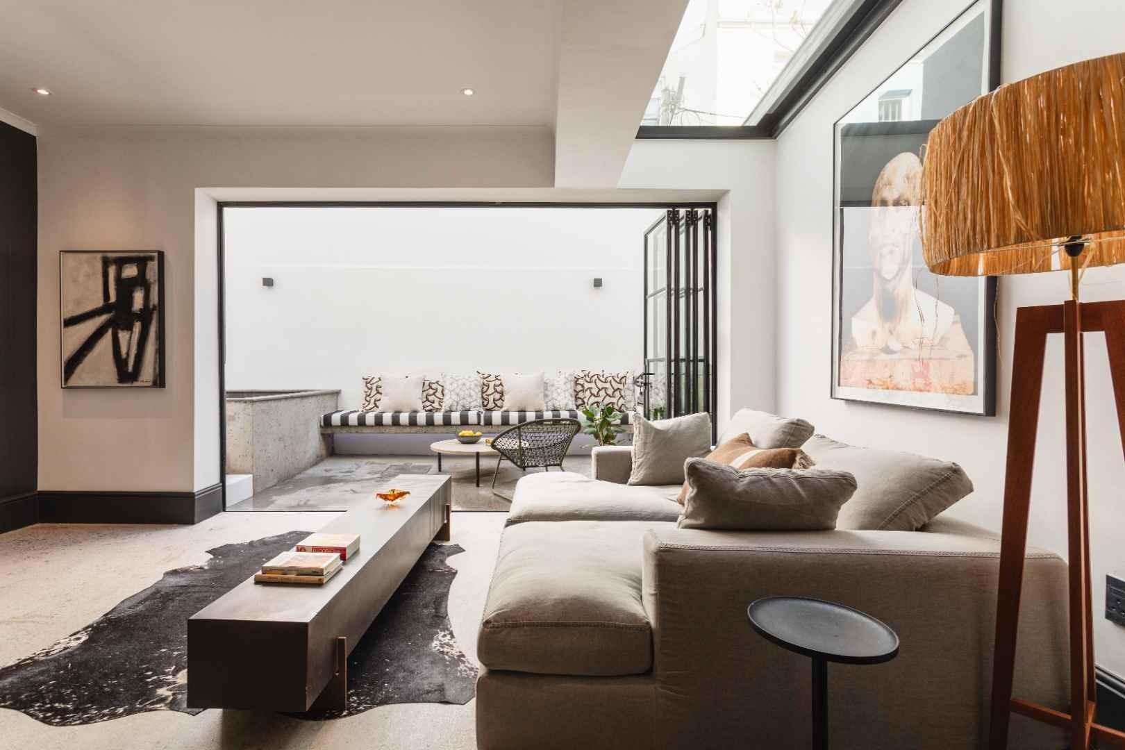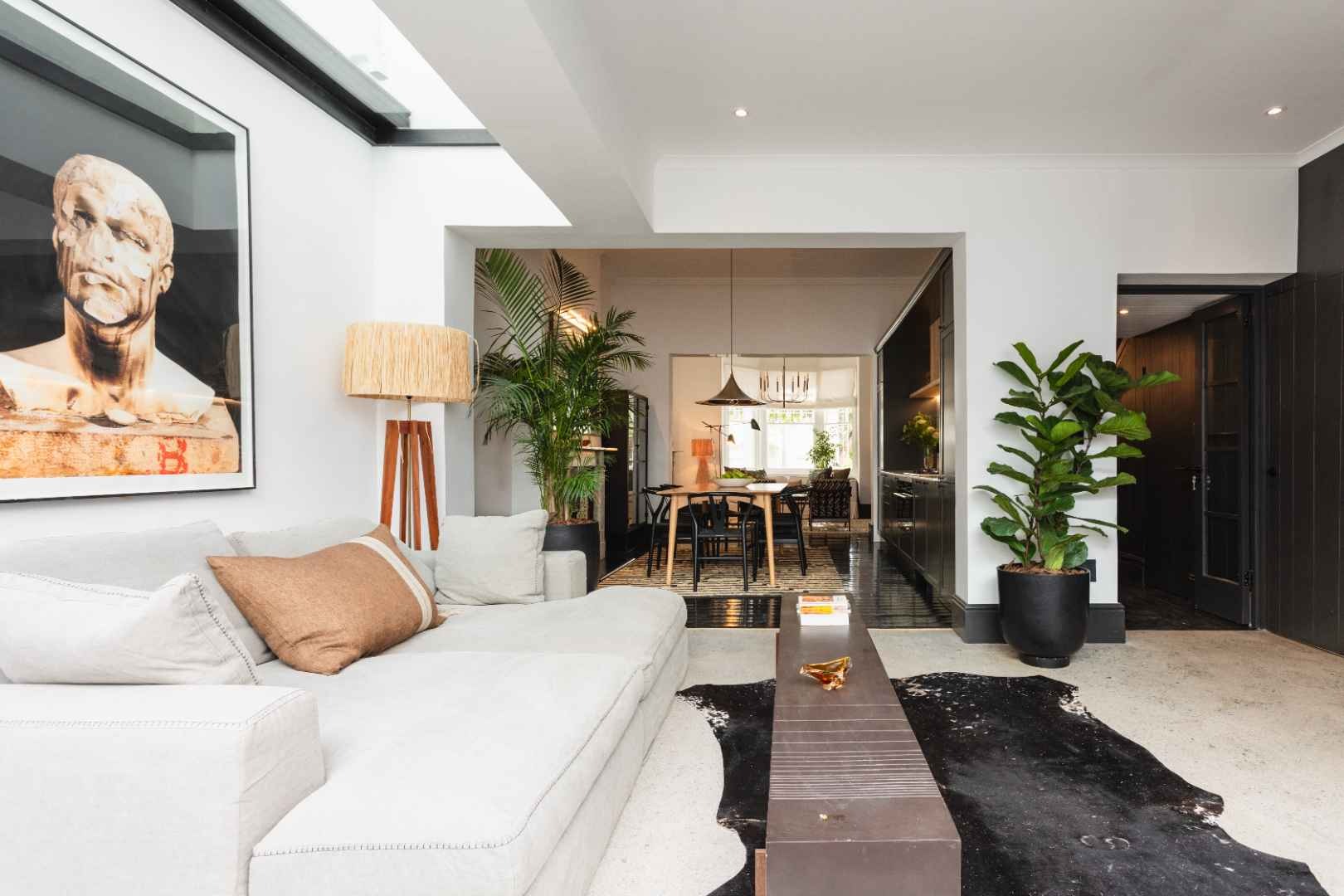 The interiors flow effortlessly between two beautifully appointed living areas and a grand dining space with a bespoke integrated kitchen, perfect for both intimate dinners and effortless entertaining.