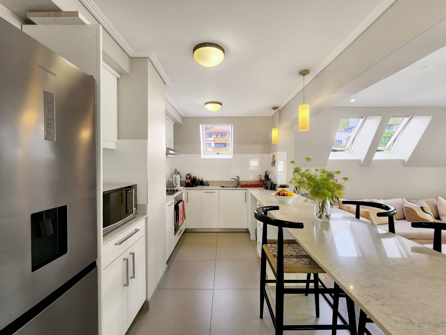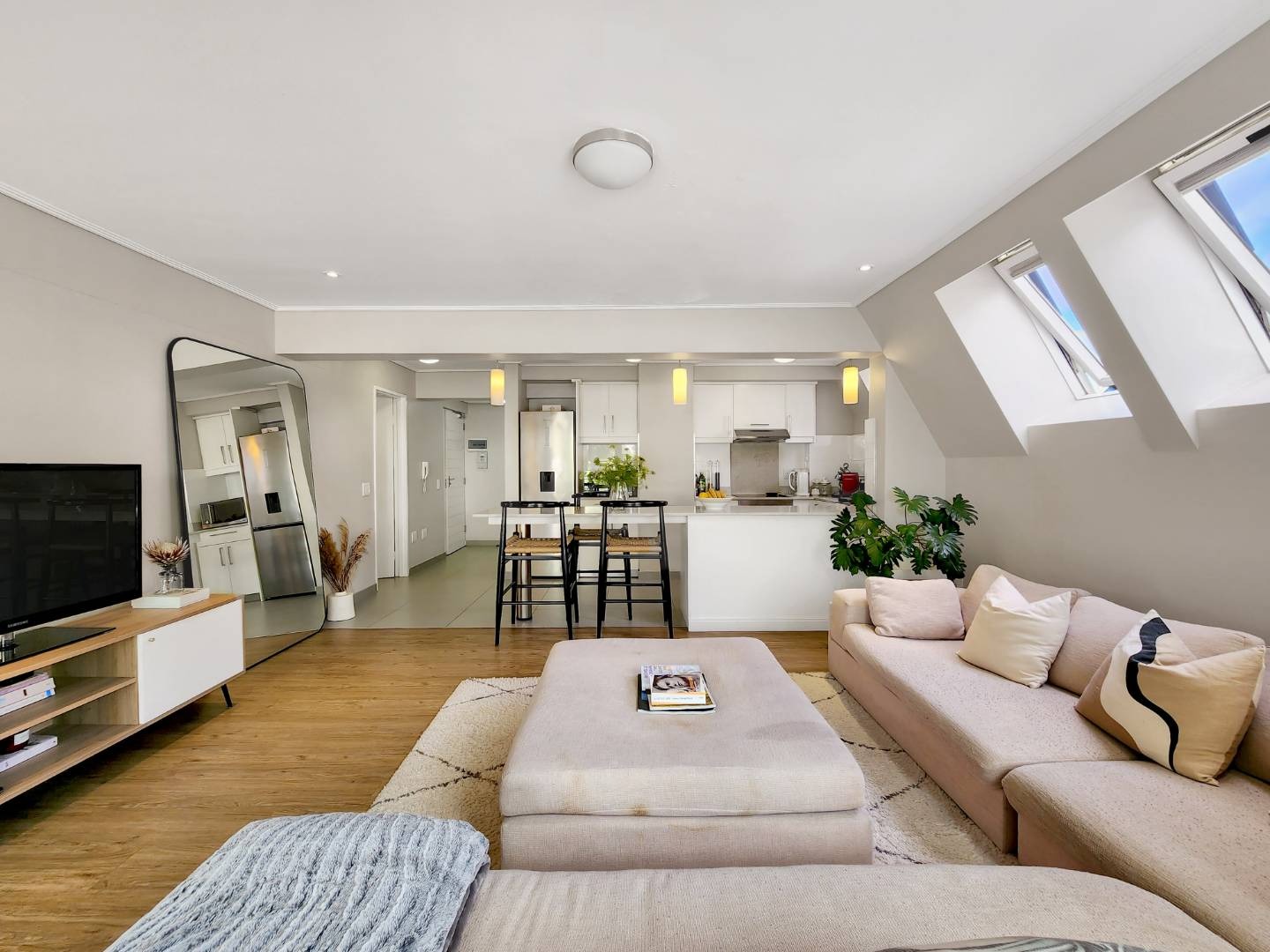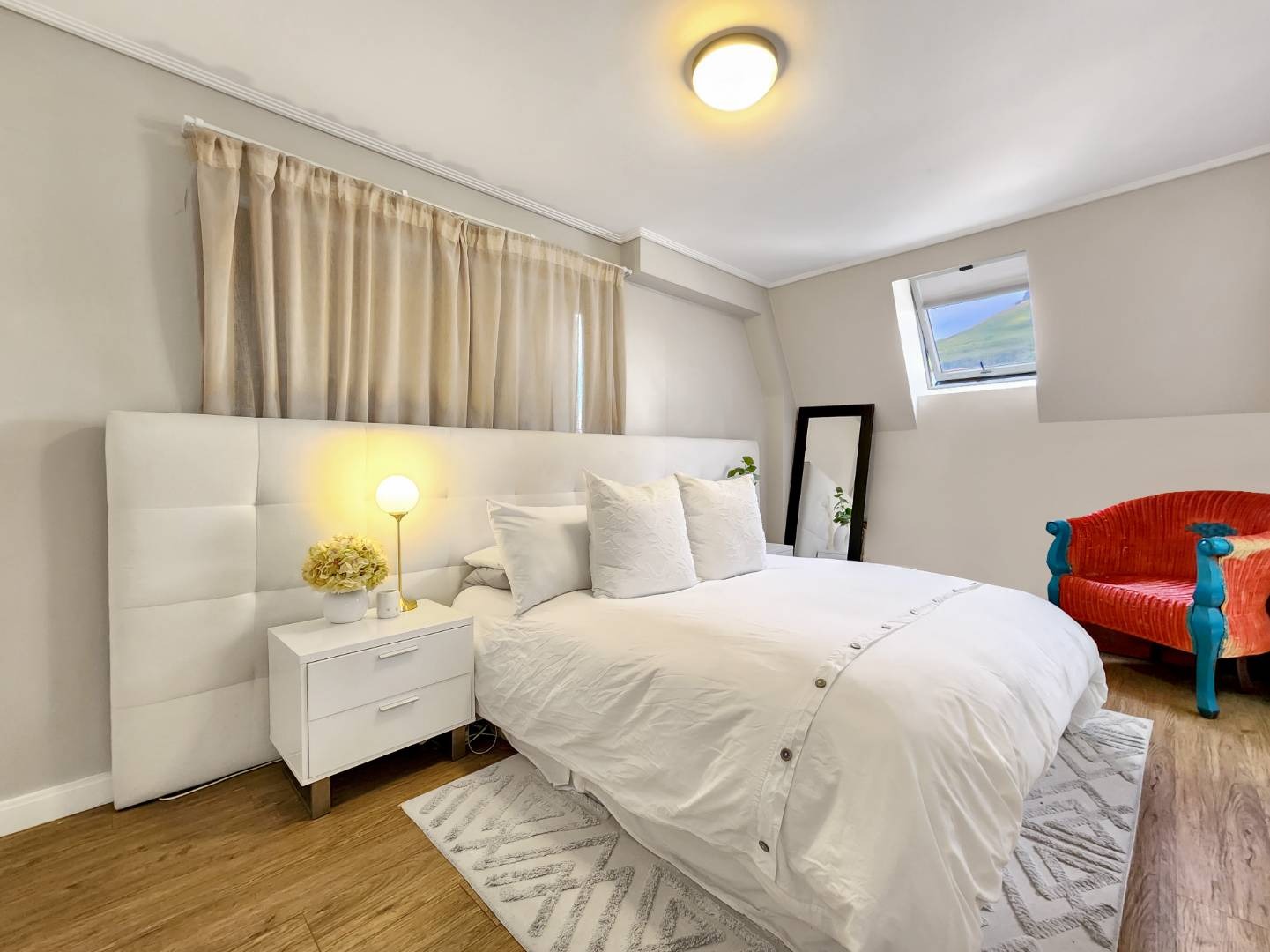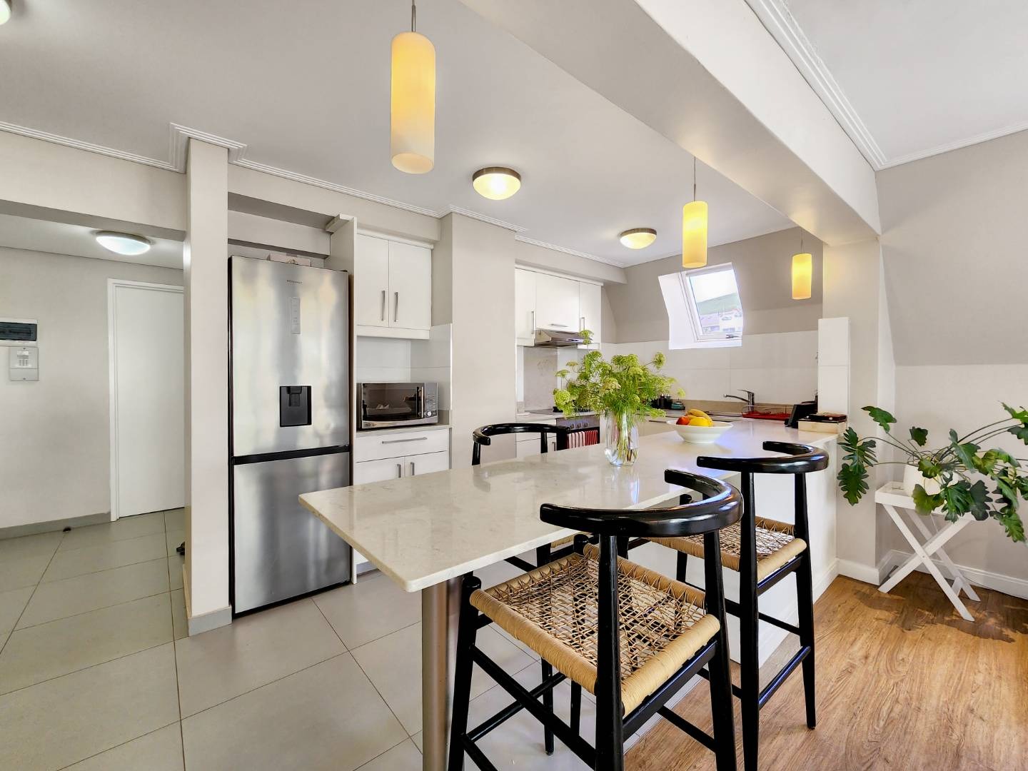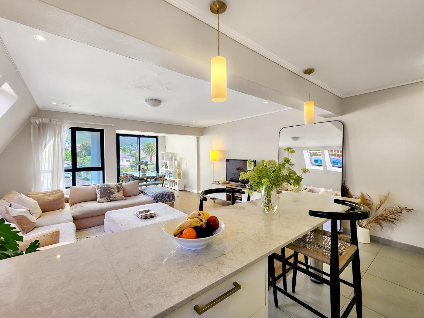 This large 74 sq/m 1 bedroom apartment has views of Table Mountain from every single window. Located in a secure block, this property offers both comfort and tranquility.