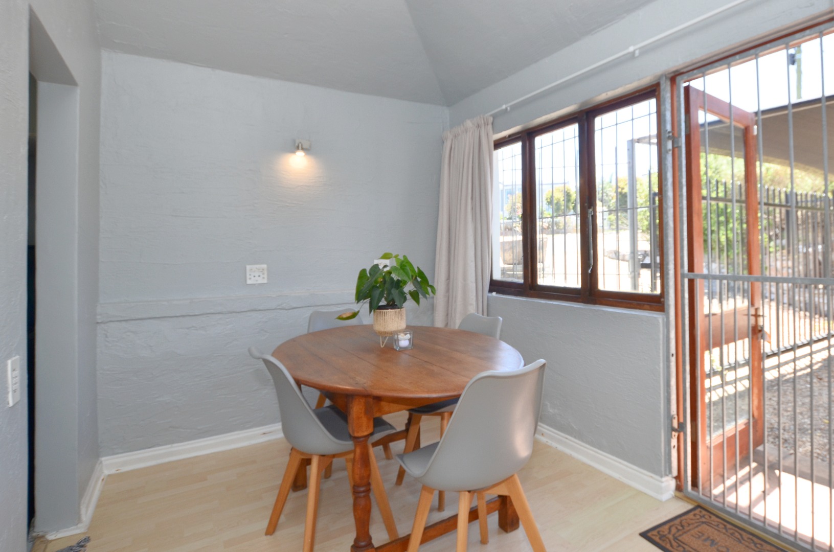 Dine indoors or step out onto the sunny patio off the kitchen, where you can enjoy meals overlooking the picturesque garden. The outdoor space is enhanced by a lapa and a generously sized pool, perfect for cooling off on lazy summer days. Mature trees provide privacy and tranquility, making this section of the property an ideal sanctuary for relaxation.