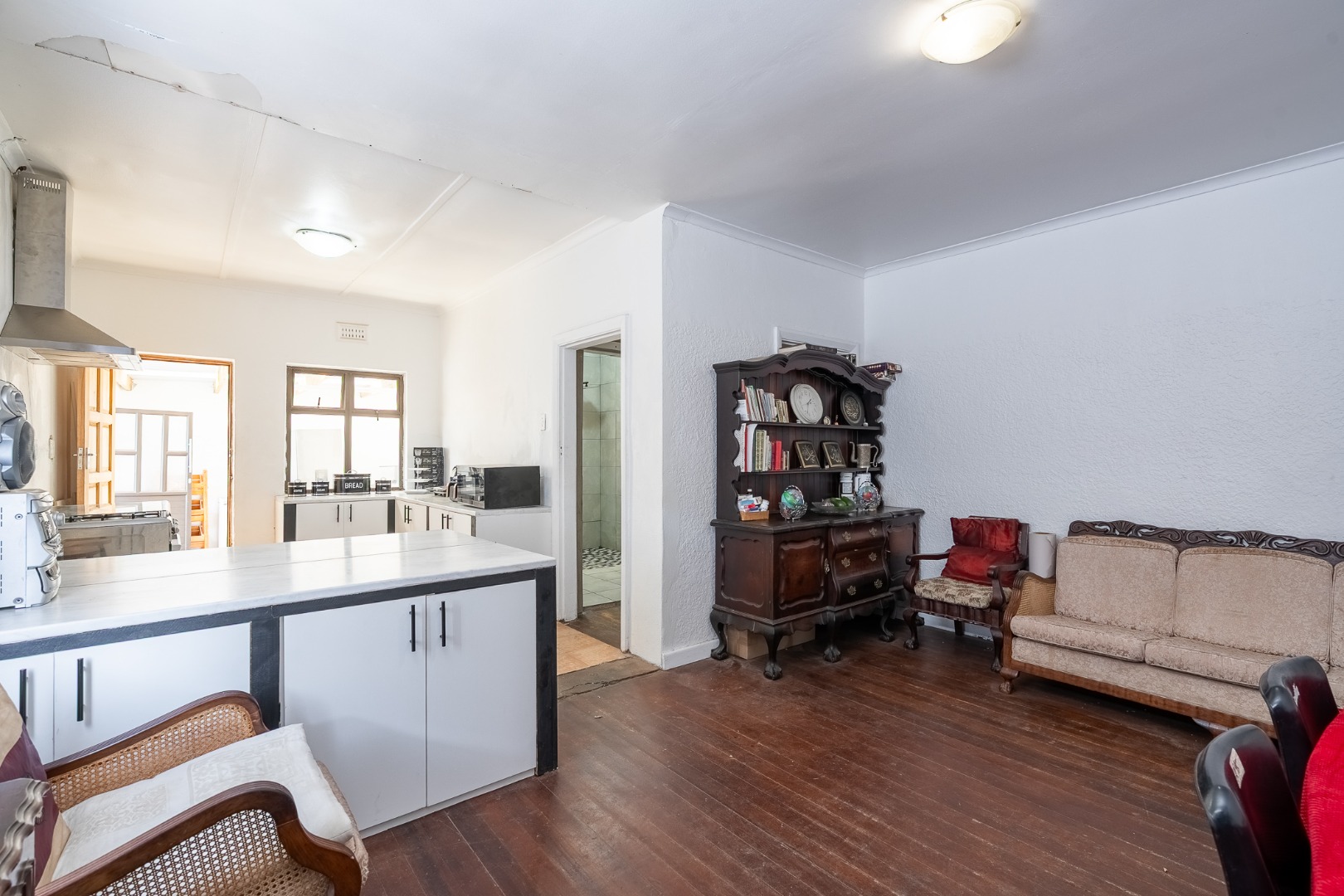 • Newly built HUGE Kitchen – Fully fitted with built-in cupboards and a 4 -burner gas stove – with an electric oven ( ideal for energy savings and loadshedding.)
