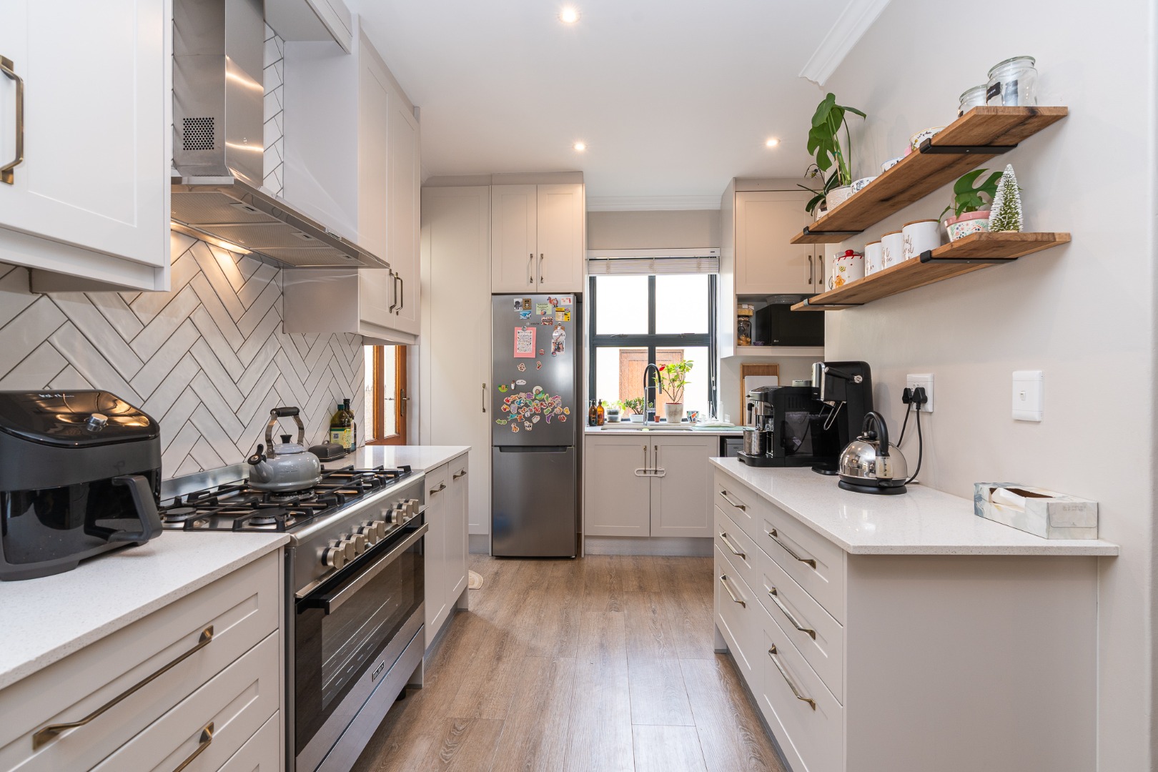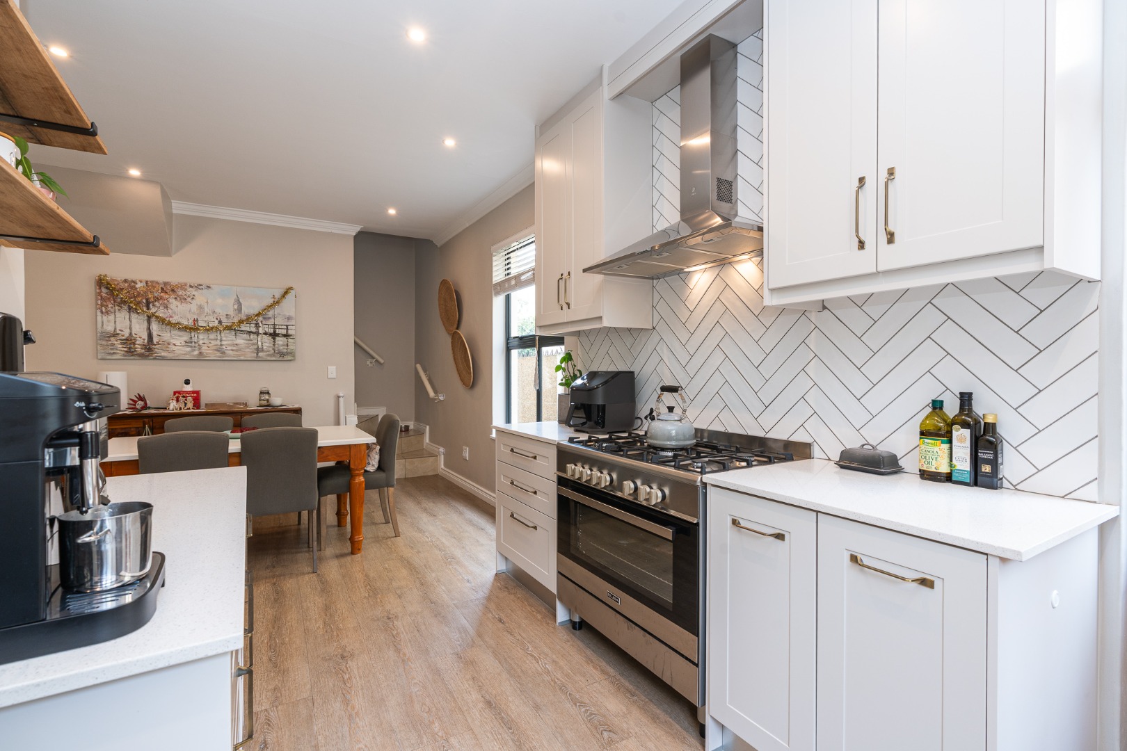 This charming home offers three bedrooms and two bathrooms, with main bedroom featuring an en-suite. The living area is designed for open-plan living, encompassing a combined lounge and dining room, which connects to a fully fitted kitchen equipped with a gas oven and hob.