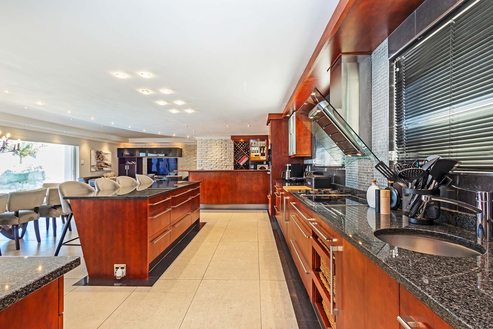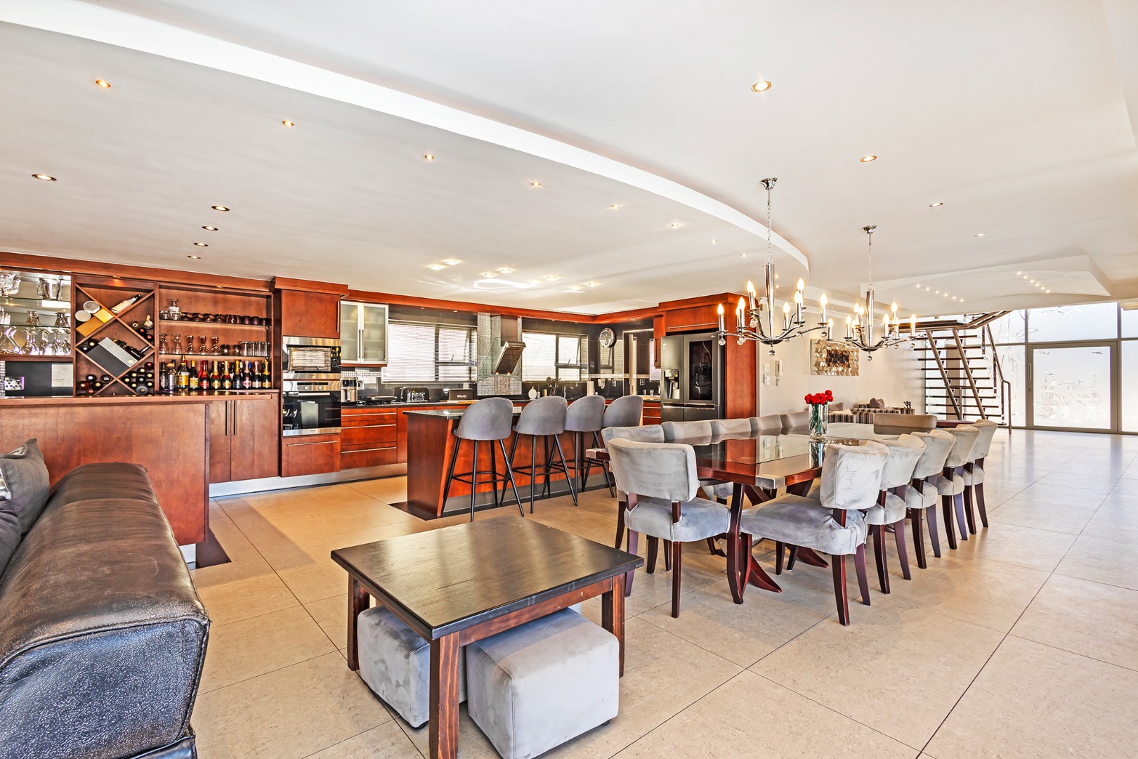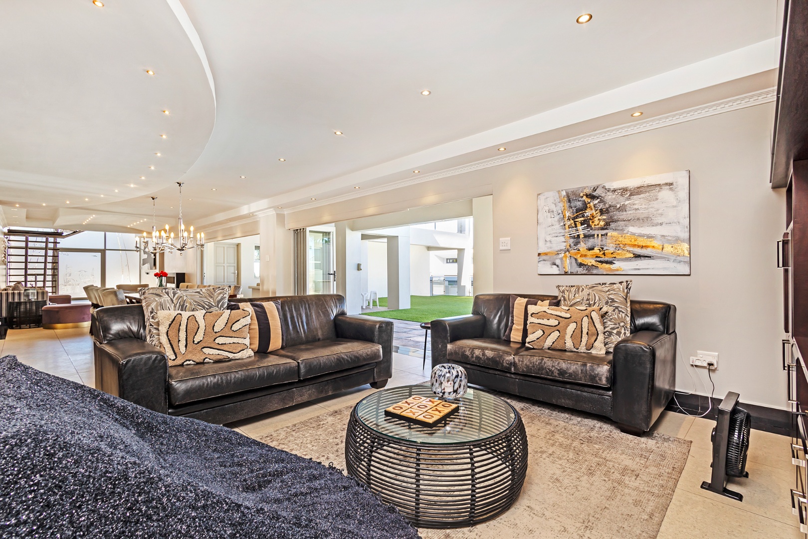 A striking glazed entrance welcomes you into light-filled, open-flow living spaces where the designer kitchen, dining area, and fireside lounge blend seamlessly, all oriented toward a magnificent outdoor terrace. Here, a sculpted rock pool, framed by manicured greenery and an outdoor shower, sets the tone for relaxed yet sophisticated entertaining, complemented by a covered braai pavilion designed for year-round enjoyment as the sun sets over the city skyline.