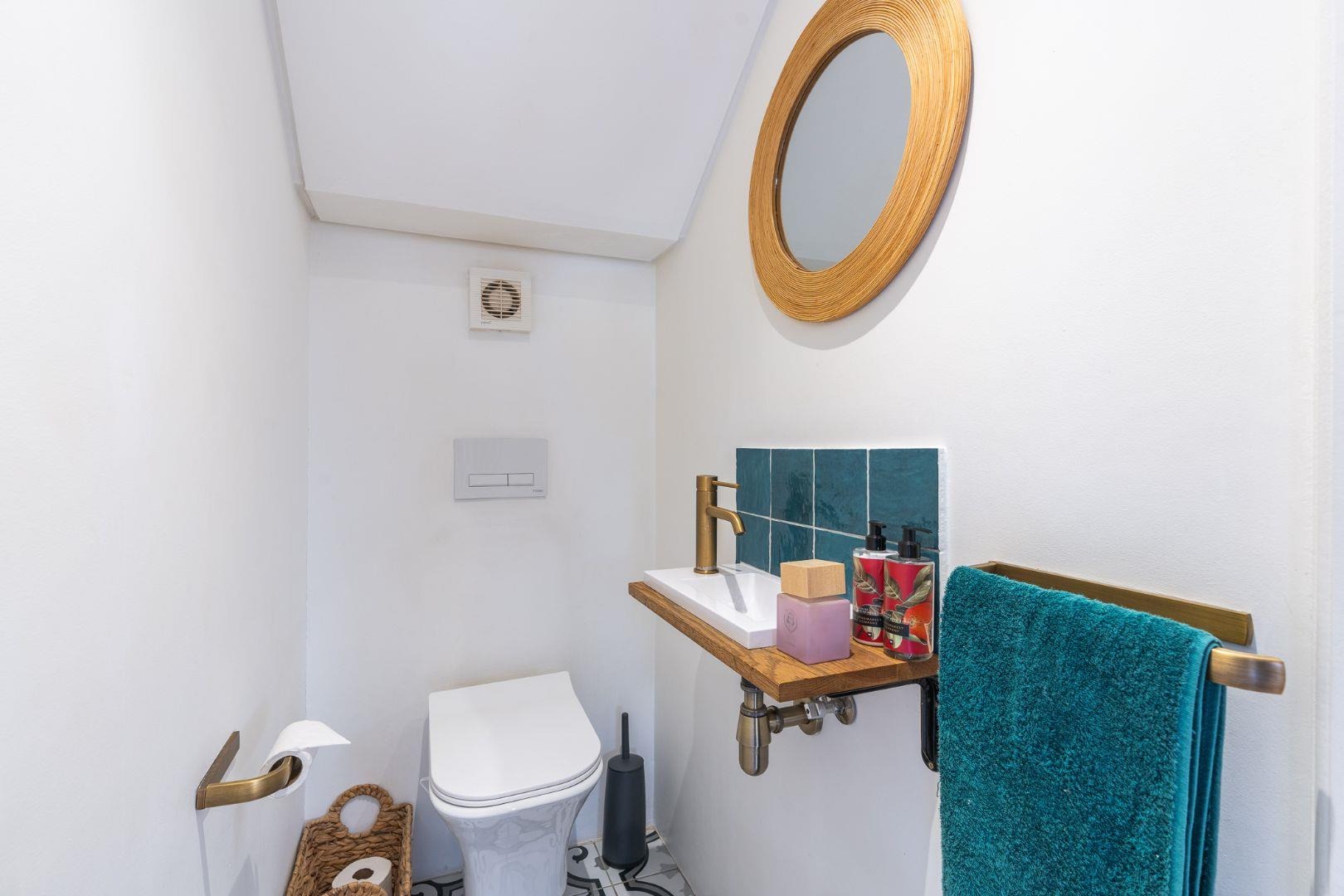 The upper level includes a spacious main bedroom with an en-suite bathroom, air conditioning, and a private balcony. Two additional bedrooms come with built-in wardrobes, and they share a large, full bathroom.