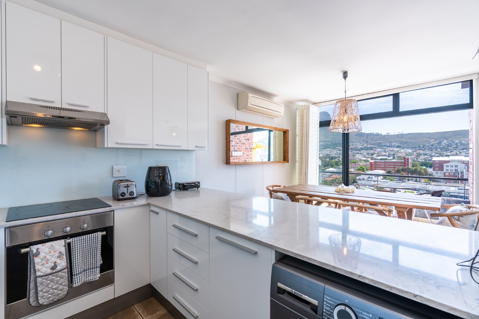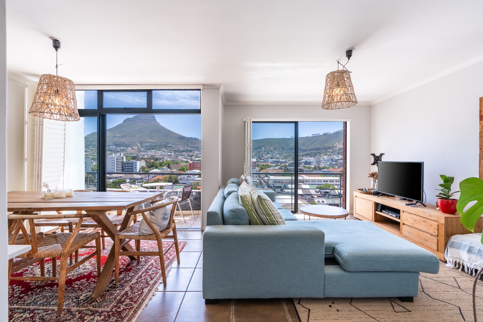A hugely versatile, furnished apartment offering ninety-three sqms over two levels plus balconies and spectacular views over the City Bowl towards Lion’s Head.