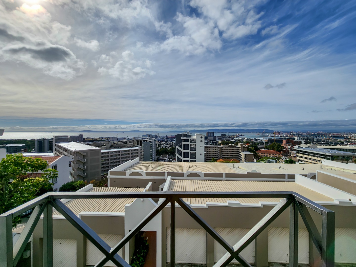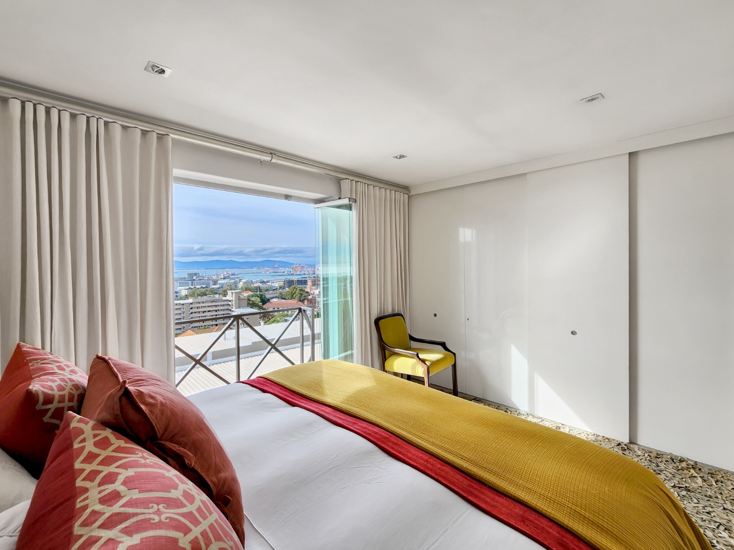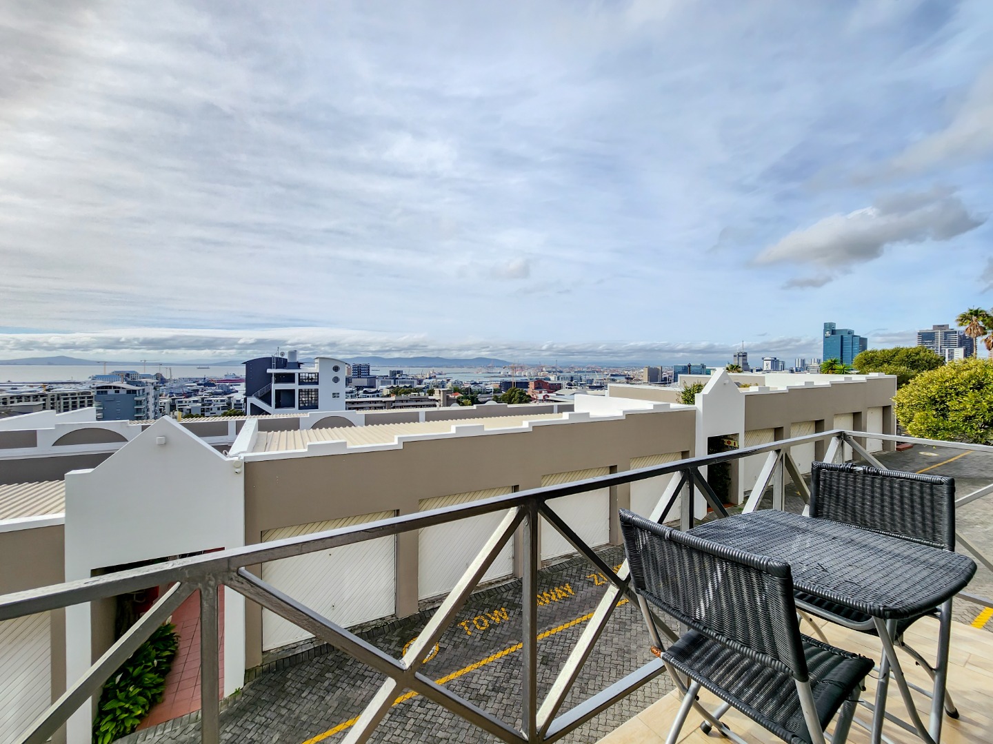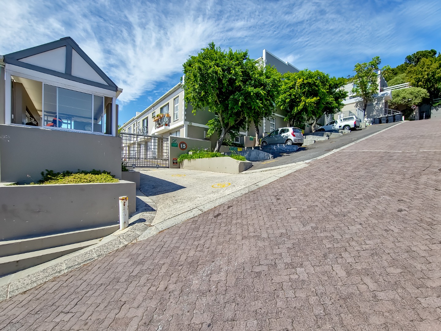 A beautifully designed staircase leads you down to the middle level, where a large balcony awaits, offering mesmerizing views of the ocean, mountains, and cityscape. This level is home to an open-plan lounge, dining area, and kitchen—perfect for entertaining and relaxation. At the rear, a cozy space awaits your barbequing (braai) adventures. The kitchen is thoughtfully equipped with a dishwasher and washing machine for your convenience.