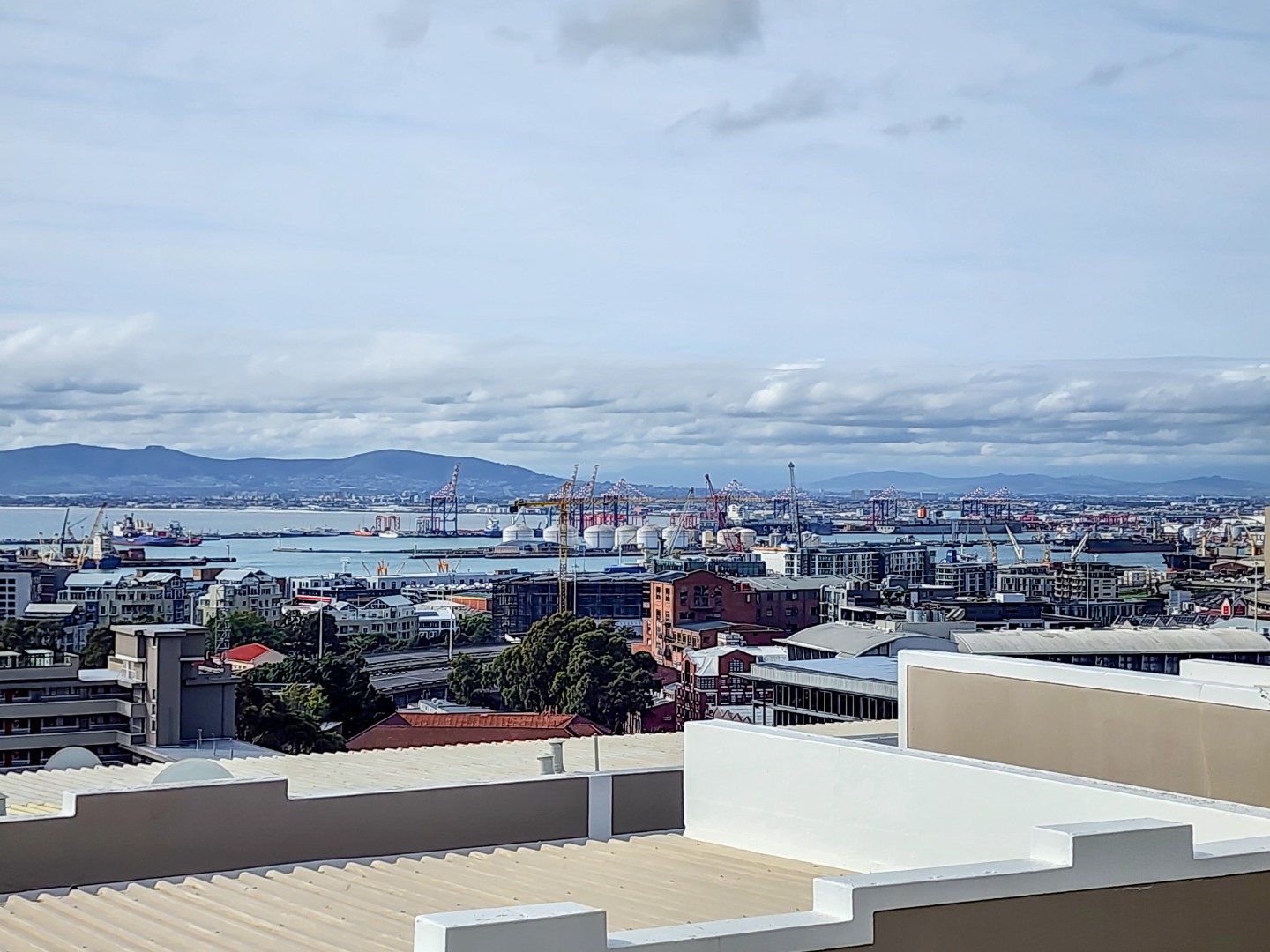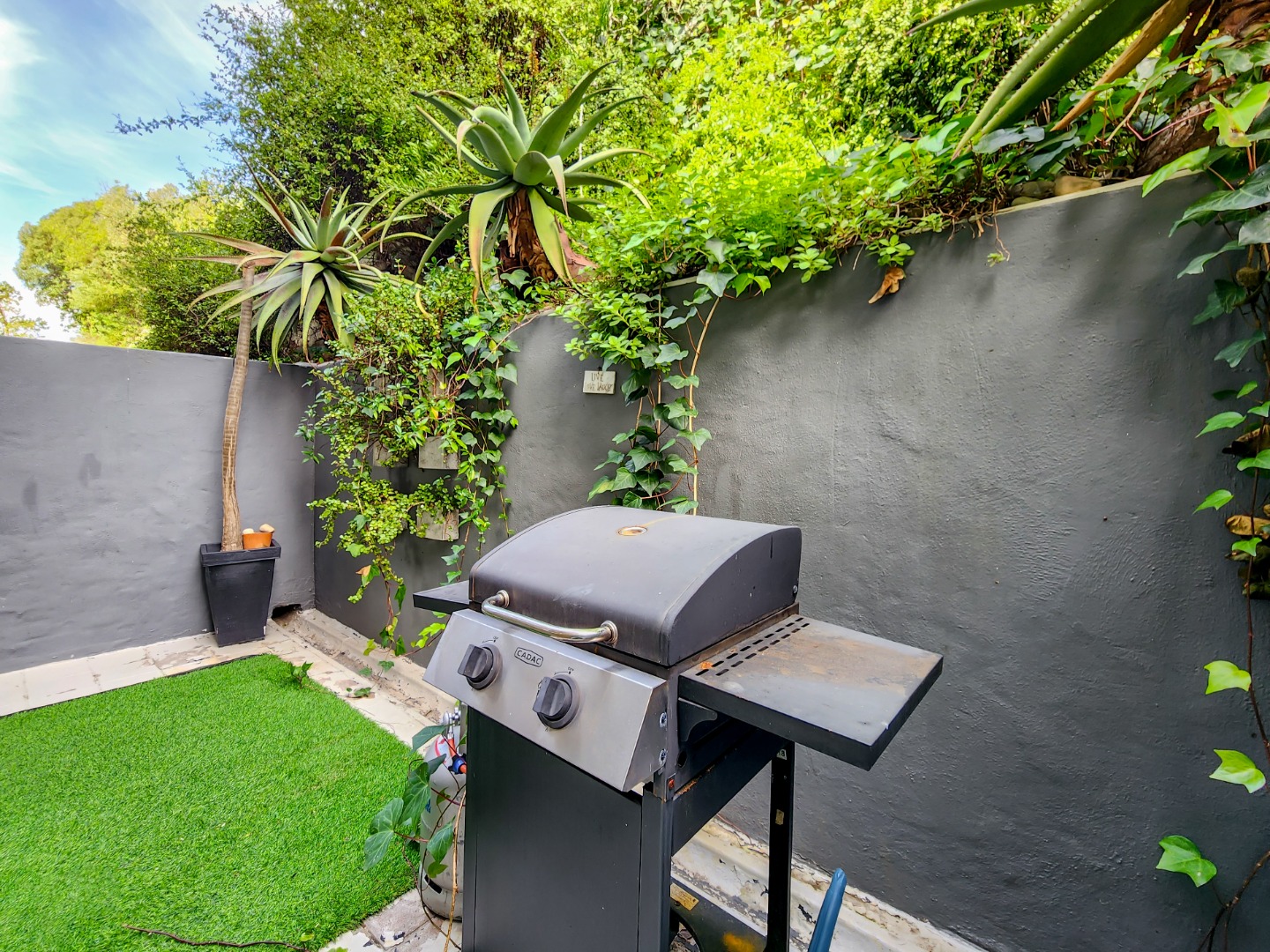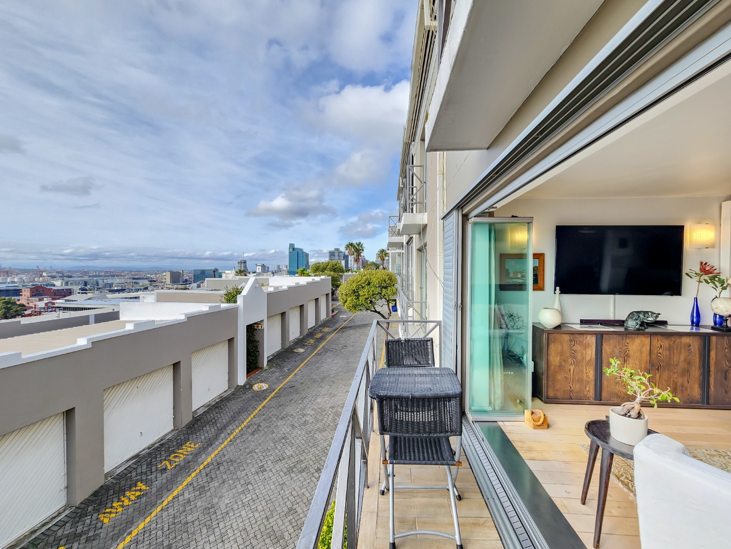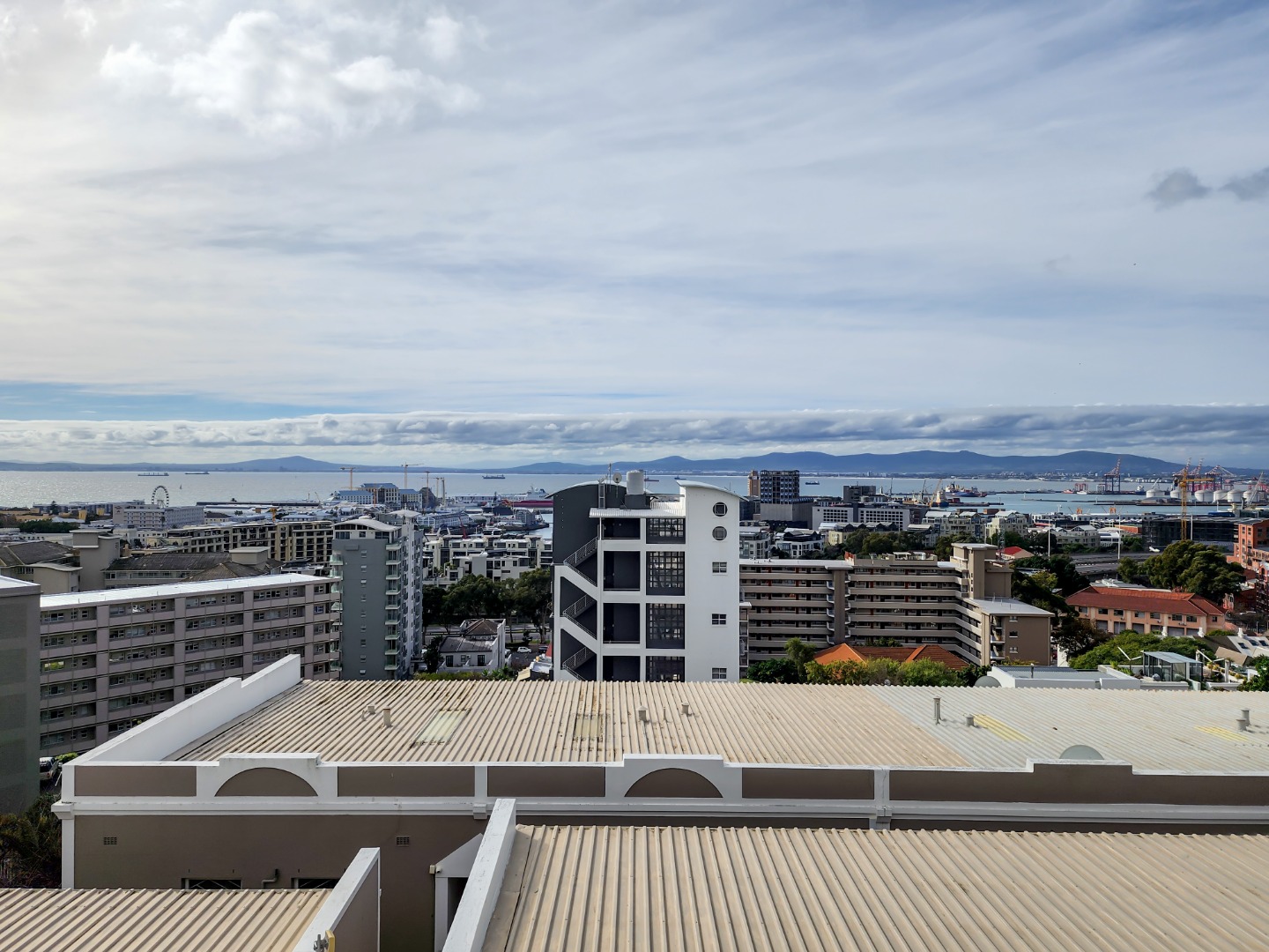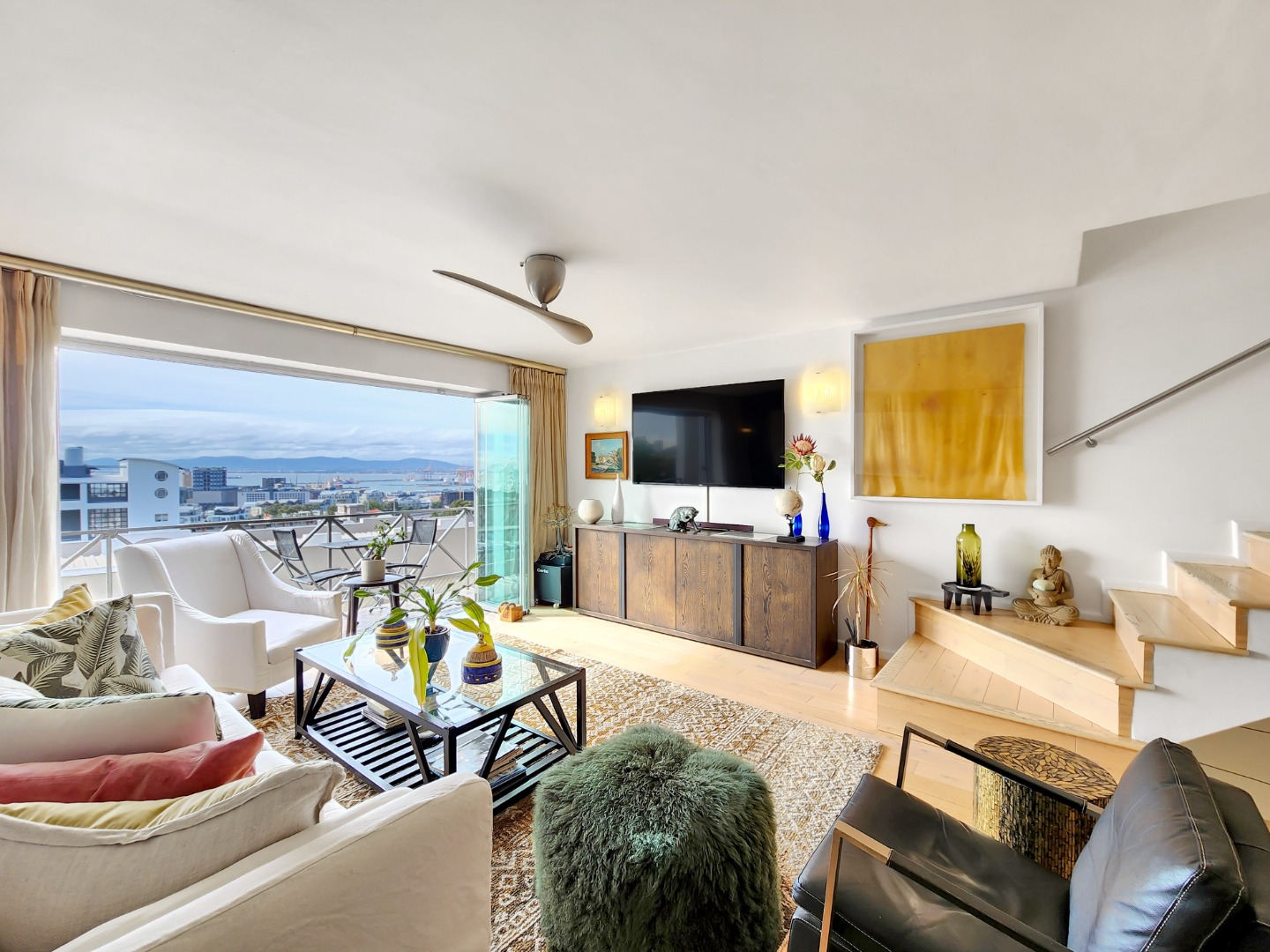 A beautifully designed staircase leads you down to the middle level, where a large balcony awaits, offering mesmerizing views of the ocean, mountains, and cityscape. This level is home to an open-plan lounge, dining area, and kitchen—perfect for entertaining and relaxation. At the rear, a cozy space awaits your barbequing (braai) adventures. The kitchen is thoughtfully equipped with a dishwasher and washing machine for your convenience.