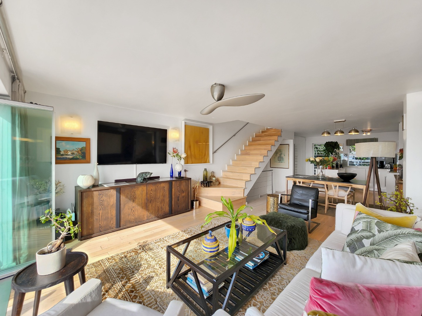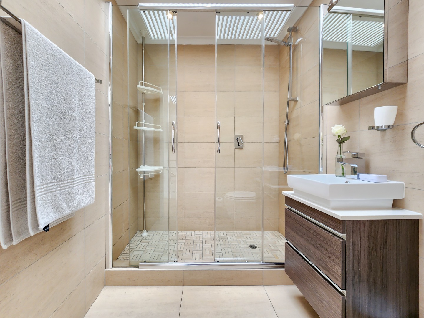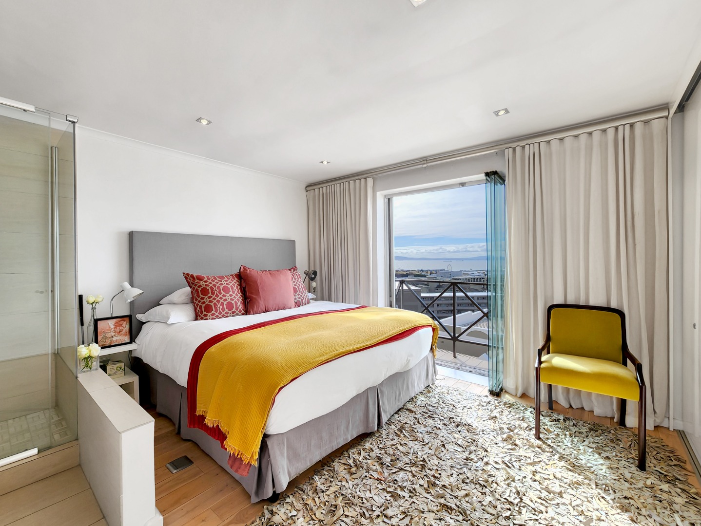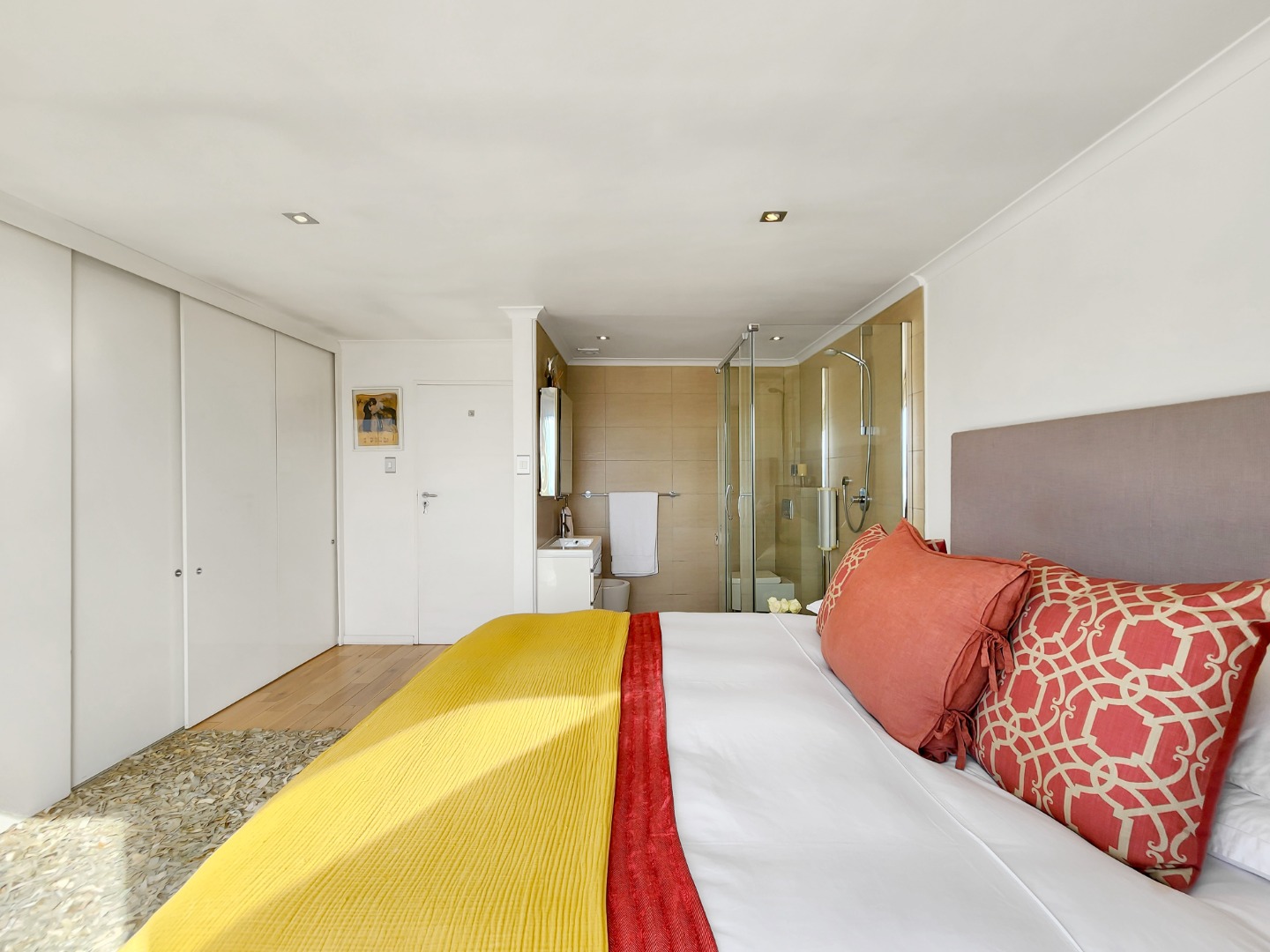 This remarkable property features two spacious bedrooms and two modern bathrooms, each designed with meticulous attention to detail. The main bedroom, located on the top level, is en suite and includes a private balcony that offers breathtaking views. With ample cupboard space and a large shower, it ensures your utmost comfort. The second bedroom, equally spacious and situated on the upper level, conveniently accesses the second bathroom, which also features a shower.