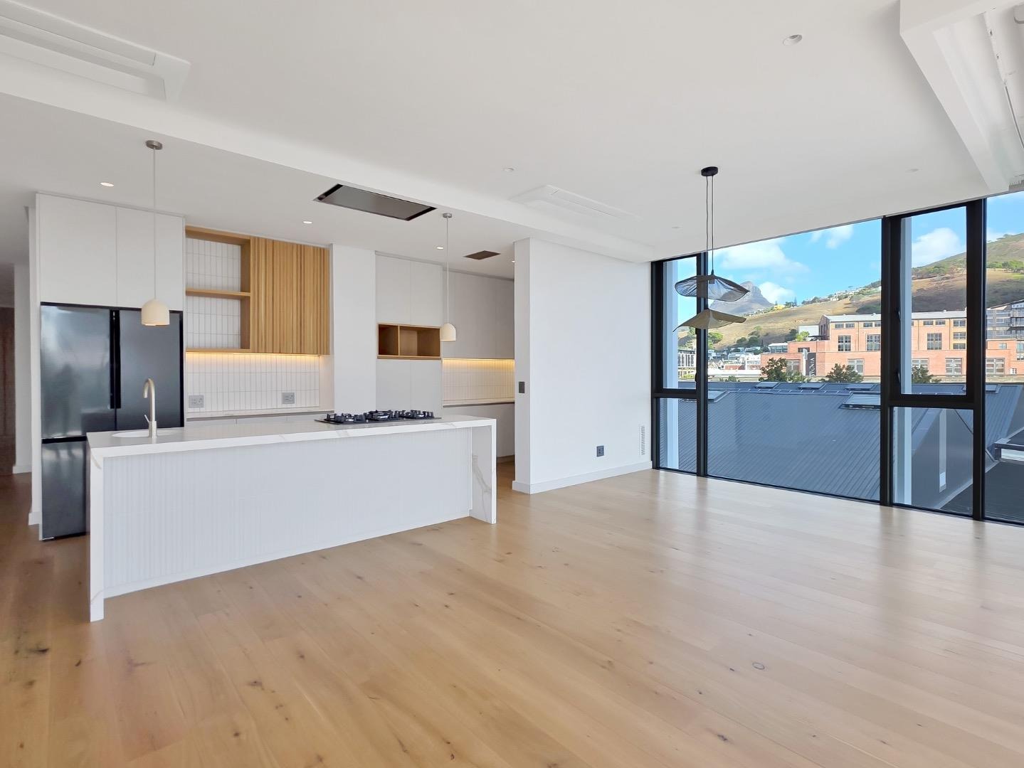 Floor to ceiling windows frame breathtaking vistas of Lion’s Head, Signal Hill, the iconic Table Mountain, and the vibrant harbour, creating a constantly evolving backdrop of natural beauty and city energy.